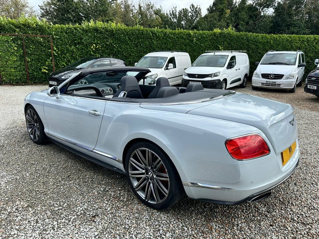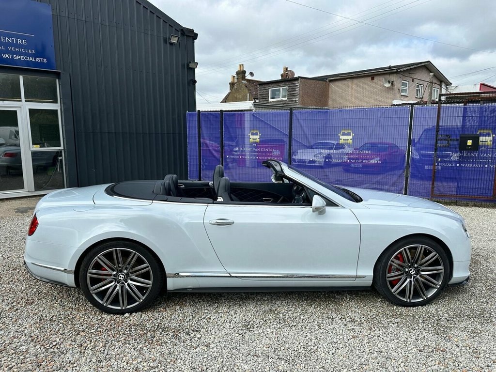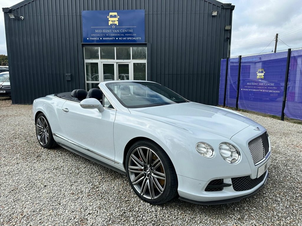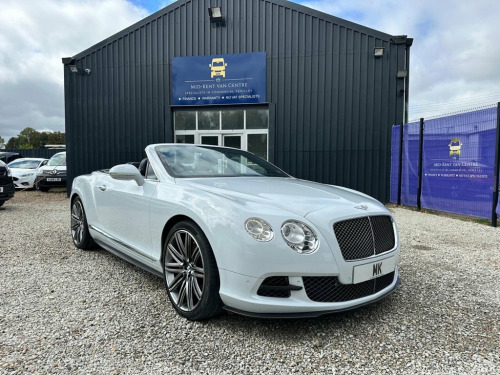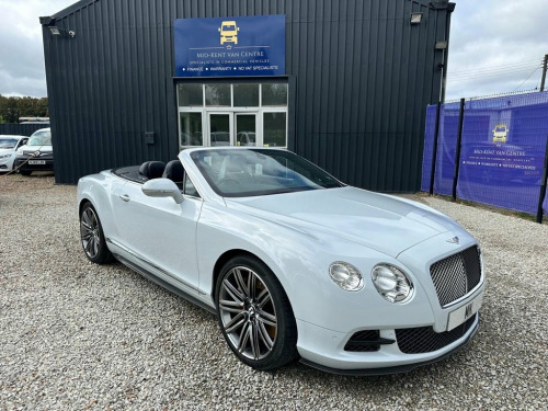 HERE AT MID-KENT VAN CENTRE WE ARE DELIGHTED TO OFFER THIS BENTLEY CONTINENTAL 6.0 W12 GTC Speed Convertible 2dr Petrol Auto 4WD Euro 5 (625 ps) WITH ONLY 34,000 MILES FROM NEW. ****** THIS BENTLEY PRESENTS WELL IN ICE WHITE PAINT WITH CONTRASTING IMPERIAL BLUE QUILTED HIDE SEATING AND THE OPTIONAL BLUE EXTERIOR ROOF. BOASTING OVER £24,965 OF FACTORY OPTIONS. ****** LAST SERVICED ON 31/03/2025 AT 32,756 MILES. 2 KEYS. ORIGINAL LEATHER BOOKLET WITH QUICK REFERENCE & SERVICE HANDBOOK. ****** ALL VEHICLES ARE SUPPLIED BY US. WE TAKE HUGE PRIDE IN OUR VEHICLES AND FOCUS ON ENSURING OUR CUSTOMERS RECEIVE THE VERY BEST SERVICE. ****** PLEASE CALL A MEMBER OF OUR SALES TEAM NOW FOR MORE INFORMATION ON 01795 500987. Exterior Hood Colour - Dark Brown, Space Saving Spare Wheel, 21in Alloy Wheels - 10 Twin-Spoke - Dark, TV Tuner, Remote-Controlled Garage Door Opener - E, Rear View Camera, Naim for Bentley Premium Audio System, Steering Wheel - 3 Spoke Wood and Hide, Battery Charger, Bentley GPS Tracking System - Full Fitme, Wind Deflector, Storage Case to Centre Console, Neck Warmer, Seat Ventilation and Massage Function to, Deep Pile Carpet Overmats - Front and Re, Carbon Fibre Fascia Panels, Carbon Fibre Fascia Panels-Centre Consol, Contrast Stitching to Steering Wheel, Boot Carpet Matched to Interior Carpet C, Contrast Stitching, Quilted Perforated Hide to Seats - Imper, Ice, 21in Alloy Wheels - 10 Twin