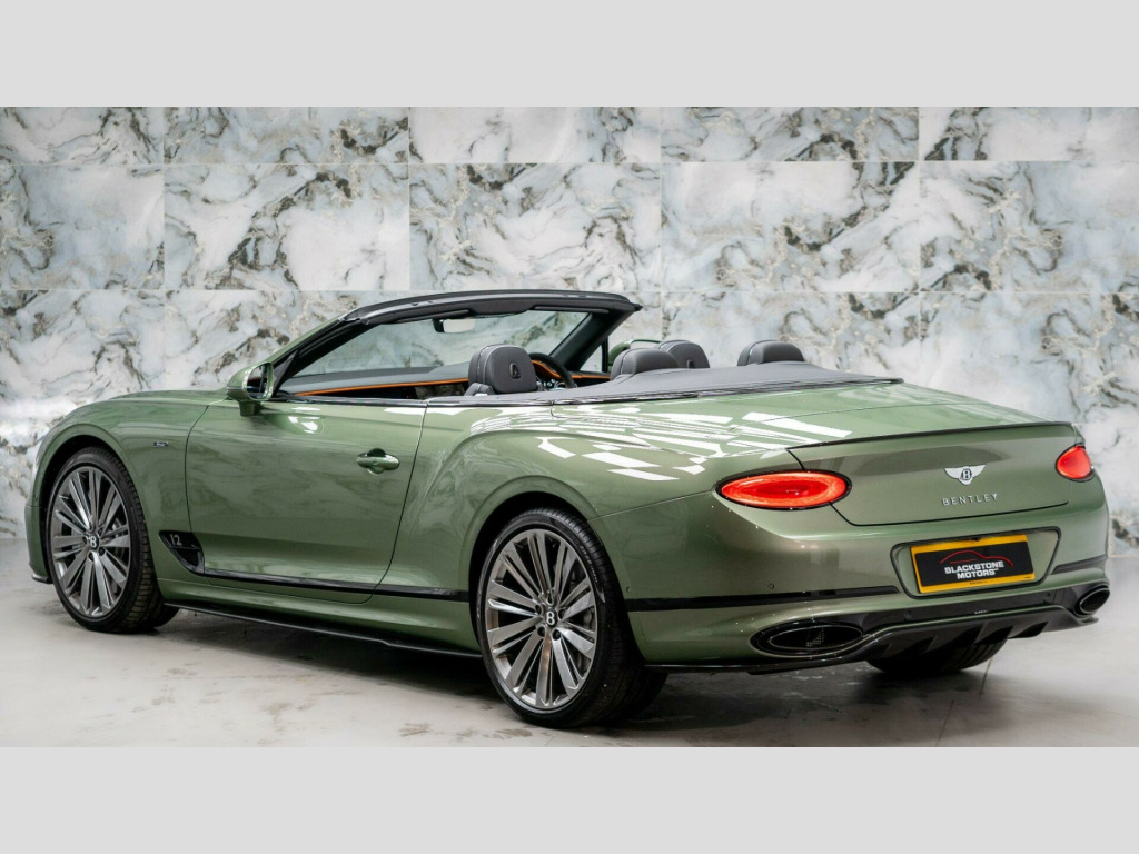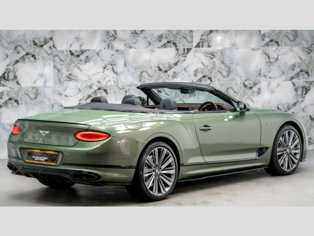 Experience unmatched performance, luxury, and craftsmanship with this rare Bentley Continental GTC Speed Edition W12a masterpiece designed for drivers who want exclusivity without compromise. This is not just a convertible; it's a statement of power and prestige. With a new price exceeding £320,000, including over £50,000 of meticulously selected optional extras, this example stands among the most exclusive and lavishly specified GTCs ever commissioned.This particular example is finished in Alpine Green metallic paintwork with Orange & Beluga interior. It benefits from a FULL Bentley main dealer service history and is still under manufacturers warranty until April 2027. Additionally, the vehicle is fully protected by XPEL PPF (Paint Protection Film).The high specification of this Bentley includes:- Bang and Olufsen for Bentley- Leather Specification- Touring Specification- Front Seat Comfort Specification- Mood Lighting Specification- Styling Specification- Bentley Rotating Display- Contrast Stitching - Accent- 22in Alloy Wheels - Speed - Dark Tint- Deep Pile Overmats - Front8.9% Low rate finance packages available, HP available, LP available, ****Apply for finance on our website for an instant decision****, 5 days driveway insurance available.Take advantage of our full bespoke in house detailing package to suit your needs, inclusive of Paint Protection Film (XPEL), Paint Correction, Nano Ceramic Coating, Trackers, Immobilisers and Bodykits. All of our work can be found on our social media Instagram blackstonemotorsuk & limitlessdetailinguk ng and olufsen for bentley, leather specification, touring specification, front seat comfort specification, mood lighting specification, styling specification, bentley rotating display, contrast stitching - accent, 22in alloy wheels - speed - dark tint, deep pile overmats - front, 12v power socket in boot, 22in alloy wheels - speed - black painted, 4g lte telephone module, 60 gb solid-state drive - 10gb available user space, acoustic heat-insulating front screen, acoustic side glass, adaptive brake lights, air ionizer, airbag - driver, airbag - passenger, airbags - front side, alarm and immobiliser, apple carplay, automatic folding four layer insulated fabric roof, bentley lettering on boot, battery charger, bentley analogue clock with plain bezel, bentley dynamic ride system, bentley gps tracking system - full fitment, bentley signature audio, black - chrome bonnet and boot bentley wing badges, black seat belt buckles, blind spot warning, bluetooth and wi-fi audio streaming, boot carpet in beluga, boot lid down lighters, brake pad wear indicator, bright boot finisher, bright wing vent with 12 in the black ribbed matrix, city specification, collision prevention assist, colour specification, continental blackline specification with matrix grille, cruise control, dark tint granite painted radiator matrix, dart tint lower bumper grille, deep pile carpets - matched to main or secondary hide, drive dynamics mode, dynamic ride-height control -auto adjust at speed and ground clearance function, esp - electronic stability programme, electric tilt and reach adjustment steering column with memory and easy entry functions, electric windows - front, electrically adjustable door mirrors with heating - power fold - memory and dip on reverse functions, electronic all wheel steering, exit warning, exterior mirror housings - body coloured, exterior roof colour - black, footwell illumination and ambient lighting, front screen infotainment system with 12.3in high resolution capacitive touchscreen display, front seats - electric 12-way adjustment with heating and two memory functions, front and rear park distance control, full led matrix headlamps with high beam assist, full led supplementary lamps and tail lamps, heated rear screen, hidden antenna, illuminated bentley sill and speed treadplate, inductive phone charger, interior roof colour - beluga, jewel fuel and oil filler caps, key box - matched to colour split, keyless entry and engine start button, led welcome lamps, leather-trimmed gear lever, lockable cooled glove box, metal bulls-eye vents with chrome organ stops, multi-collision brake, multi-zone automatic climate control system, online real time traffic information, poi - search, park assist, polished brightware to side windows, power latches to the doors and boot, pre-crash - rear, pre-sense braking system - bentley safeguard, precision diamond quilt specification, rain sensing windscreen wipers, reversing camera with graphic screen representation, satellite navigation, self levelling wheel badge - by mulliner, single front armrest - fore-aft slide - with stowage inc 12v sockets and two usb charging points, speed embroidered headrests, speed fascia badge, speed fender badge, speed sensitive power steering, speed sport sills, sport pedals, standard brakes with silver calipers, standard carpet overmats to front, steering wheel - 3 spoke single tone - dinamica-hide trimmed - heated, steering wheel mounted gearshift paddles, stowage to front doors - centre console and under centre armrest, sun visors with illuminated vanity mirrors, tpms - electronic tyre pressure monitoring system, three chamber air suspension with continuous damping control - cdc, torque vectoring by electronic differential - elsd, treadplate - illuminated, two cup holders to rear console, two oval exhaust finishers, two rear seats with centre stowage inc 12v socket and one usb charging points, tyre repair and inflation kit, unique speed colourway, veneer - grand black, welcome lighting