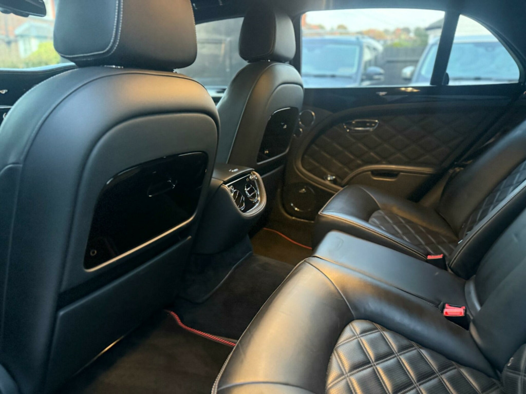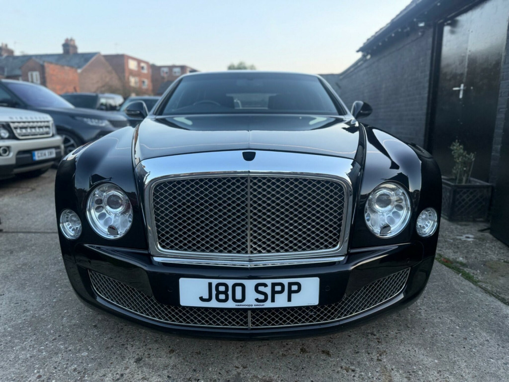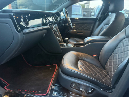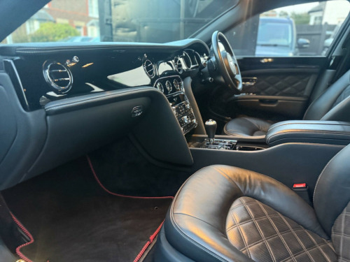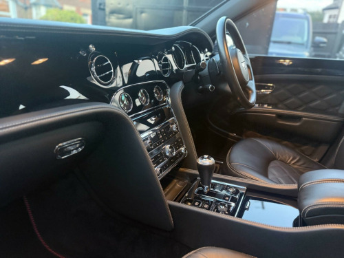 With only 24183 miles on the clock, this 2013 Bentley Mulsanne V8 offers an exceptional opportunity to own a luxury vehicle with low mileage for its age. This Mulsanne, powered by a 6.75L petrol engine, comes with a clear vehicle history check for added peace of mind. The vehicle is equipped with a keyless entry system, featuring chromed metal door handles and an engine start button for added convenience. Parking is made easier with park distance control, which provides a graphic display on the infotainment screen alongside an audible warning, complemented by front parking sensors. The twin bi-xenon projector headlights, enhanced with an LED halo for supplementary main beam, ensure excellent visibility. Passengers can enjoy a comfortable environment with the four-zone air conditioning system.The Bentley Mulsanne V8 distinguishes itself with its impressive acceleration, reaching 0-60mph in just 5.1 seconds. This rapid acceleration demonstrates the vehicle's superior performance compared to other similar vehicles. The Mulsanne combines luxury with performance, making it a desirable choice for discerning drivers., v power sockets in glovebox, 12v power sockets in rear centre armrest and boot, 20 gb of personal storage space/single slot dvd drive and 2 x sd card readers, 20in alloy wheels - mulsanne light, 3-point seat belts to front seats with electric height adjustment and memory function, 3-point seat belts to outer and centre rear seats with pyrotechnic pre-tensioners, 6 x cd changer fitted in glovebox, 60 gb hard disc drive unit fitted in glovebox, 8in high-resolution colour screen to display infotainment and vehicle systems information, abs - anti lock braking system, acoustic glazing with infra red reflectivity interlayer, additional rear cabin a-c unit with front and rear controls for fan speed and temperature, airbag - curtain, airbag - front passenger deactivation, airbag - front and rear thorax, airbag - intelligent driver, airbag - intelligent front passenger, aluminium bonnet, aluminium closures, aluminium doors with superformed structure and extruded aluminuim side impact beams, automatic hill hold control, automatic ride height control sensitive to speed and load, battery conditioner with magnetic trickle charging point concealed in rear registration plate recess, bentley branded front brake calipers, bentley gps tracking system provision, black matrix grille to lower bumper apertures, boot trimmed in leather-carpeted to match interior cabin with polished stainless steel sill plate, bright finish interior fittings in polished stainless steel, central multi media interface - mmi rotary controller with convenience keys for system menus, cigar lighter sockets in front and rear cabin, concealed passenger map light, cordless telephone and cradle mounted in front armrest with sim card reader in hard drive unit, cruise control, dab radio, daytime running light signature, direct tyre pressure monitoring system with provision for speed related warning, document stowage compartments to front seatbacks, door mirrors - colour coded, door mirrors - electronically adjustable with heating - power folding and two memory functions, double wishbone front suspension, drive dynamics control - four driver selectable settings for cdc and power steering, driver-configurable choice of navigation prompts compass infotainment vehicle or trip information, drivers instrument panel inverted - aviation-style dials for vehicle and engine speed, ebd - electronic brake force distribution, esc - electronic stability control, electrical height adjustment for front seatbelts with two memory positions, electrically operated privacy blinds for rear windows and rear screen - controlled from front or rear, electrochromatic auto dimming rear view mirror with on-off button, electronic parking brake with drive away assist, electronically-controlled air springs with continuous damping control - cdc, floating-ellipse style/led rear lights and discreet high-level stop light in rear screen, folding rear centre armrest console controls for seating and air conditioning, four carpet overmats to match cabin carpet leather bound and with polished stainless steel fixings, four-zone air conditioning, front parking sensors, front passenger seat - full adjustment from rear cabin - controls housed in rear centre armrest, front seat belts with pyrotechnic pre-tensioners and force limiters, front seats two memory positions and easy entry-exit function, front seats with 12-way electrical adjustment, front wing vents with black matrix grille, full ipod and mp3 player compatibility including full-colour album art display and video playback, hba - hydraulic brake assistance, hand selected leather to all trimmed interior surfaces inc fascia headlining door panels, headlight washer jets, hide-lined glovebox with illumination, interior volumetric alarm system, keyless entry system with chromed metal door handles and engine start button, leather-bound owners handbook housed in dedicated stowage shelf within glovebox, light sensing auto operation headlights, micro usb for other smartphones including blackberry, minor gauges panel in centre fascia with fuel gauge-analogue clock with bentley motors inscribed, mulsanne audio system, multi-function steering wheel, multilink rear suspension with toe and brake reaction control, painted radiator shell with bright stainless steel matrix grille and 2d bentley winged b badge, park distance control - graphic on infotaintment screen works in conjuntion with audible warning, polished stainless steel brightware to glass surrounds, polished stainless steel embellishers to doors and bumpers, polished stainless steel mulsanne treadplates and commissioning plates, power boot lid operation with emergency releases inside boot and under rear seat, power windows with one-touch operation and anti-trap protection, rain sensing windscreen wipers, rear centre armrest with leather-lined stowage compartment, rear parking