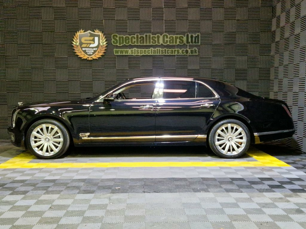 2014 / 63 Bentley Mulsanne 6.75 (Mulliner Driving Spec) Finished in Onyx Black Pearl Metallic, with Ivory Diamond Quilted Leather. 44000 Full Service History. Huge Specification Inc : Mulliner Driving Pack, 21" Two Piece Alloys, Electric Curtains to Rear and Side Windows, Flying "B" Bonnet Mascot, Glass Sunroof, Picnic Tables, Rear Entertainment, Bentley Naim Sound, Bentley Emblems to All Seats, Piano Black Wood Facings, Chrome Kick Plates, Rear Heating Controls, Privacy Glass, Chrome Window Finishers, Stunning Throughout, Bespoke Finance, Warranties and Part Exchange Available. Privacy Glass to Rear Screen and Rear Si, Rear View Camera, Naim for Bentley Premium Audio System, Rear Quarter Vanity Mirrors with Veneer , Mulliner Driving Specification - Alterna, Drilled Alloy Sports Foot Pedals, Cross Stitching, Black Curtains to Rear Cabin, Embroidered Bentley Emblems to All Seats, Flying B Radiator Mascot, Bright Stainless Steel Matrix to Lower B, Bright Stainless Steel Door Pillar Finis, 21in Alloy Wheels - 5 Spoke Two Piece - , 12v Power Sockets in Glovebox, 12v Power Sockets in Rear Centre Armrest, 20 GB of Personal Storage Space/Single S, 20in Alloy Wheels - Mulsanne Light, 3-point Seat Belts to Front Seats with E, 3-point Seat Belts to Outer and Centre R, 6 x CD