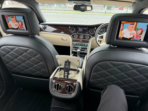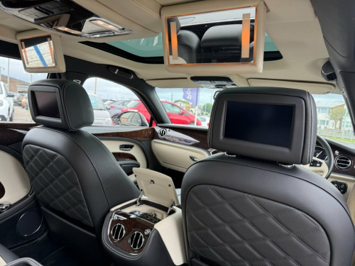 *SERVICE HISTORY*9 SERVICES* COLOUR ONYX*INTERIOR COLOUR MAIN HIDE - LINEN / BELUGA*AUTOMATIC* PADDLE SHIFT* SUNROOF* SAT NAV* FRONT AND PARKING SENSORS WITH REVERSING CAMERA* CRUISE CONTROL* ELECTRIC HANDBRAKE* SPORT / COMFORT MODE* TRACTION CONTROL* CREAM LEATHER* HEATED AND AIR COOLED SEATS* MULSANNE TREADPLATES*THREE REAR SEATS TOW ELECTRICALLY ADJUSTABLE OUTER SEATS FIXED CUSHION*SOFT CLOSURE*CRUISE CONTROL*REAR HEATED SEATS*VENTILATED SEATS WITH MASSAGE FUNCTION*AMBIENT MOOD LIGHTING*BENTLEY GPS TRACKING SYSTEM*DUAL CLIMATE CONTROL WITH AIR CON* ELECTRICALLY OPERATED BLINDS REAR REAR AND SIDE WINDOWS*TWIN ILLUMINATED FOLD DOWN VANITY MIRRORS*BI-FUNCTIONAL HEADLIGHT WITH GAS DISCHARGE LAMP LED*DRILLED ALLOY SPORTS FOOT PEDALS*ELECTRIC BOOT OPENING AND CLOSING* REMOTE CONTROLLED GARAGE DOOR / ELECTRONIC GATE OPENER EURO LINK SYSTEM*CORDLESS TELEPHONE*REAR SCREEN TV'S IN BUILT INTO HEADRESTS WITH SIX DVD PLAYER*TV TUNER FUNCTION*STANDARD DIGITAL AUDIO SOUND PACKAGE* 4 CORNER AIR SUSPENSION*RAIN SENSOR*BLUETOOTH PHONE AND AUDIO* DAB* USB* REMOTE CENTRAL LOCKING* KEYLESS START & ENTRY* AUTOMATIC LIGHTS* REAR FOG LIGHTS* 21" ALLOYS* SPARE WHEEL* ISOFIX* FRONT AND REAR ARMRESTS*DRIVERS AND PASSENGERS ELECTRIC 10 WAY SEAT ADJUSTABLE WITH MEMORY POSITIONS* 3 KEYS WITH VALET KEY*ISOFIX* 12V Power Socket in Boot, 12v Power Sockets in Glovebox, 12v Power Sockets in Rear Centre Armrest, 21in Alloy Wheels - Mulsanne Speed - Dar, 3-point Seat Belts to Front Seats with E, 3-point Seat Belts to Outer and Centre R, 6 x CD Changer Fitted in Glovebox, 60 GB Hard Disc Drive Unit Fitted in Glo, 8in High-Resolution Colour Screen to Dis, ABS - Anti Lock Braking System, Acoustic Glazing with Infra Red Reflecti, Additional Rear Cabin A-C Unit with Fron, Airbag - Curtain, Airbag - Front and Rear Thorax, Airbag - Front Passenger Deactivation, Airbag - Intelligent Driver, Airbag - Intelligent Front Passenger, Aluminium Bonnet, Aluminium Closures, Aluminium Doors with Superformed Structu, Auto