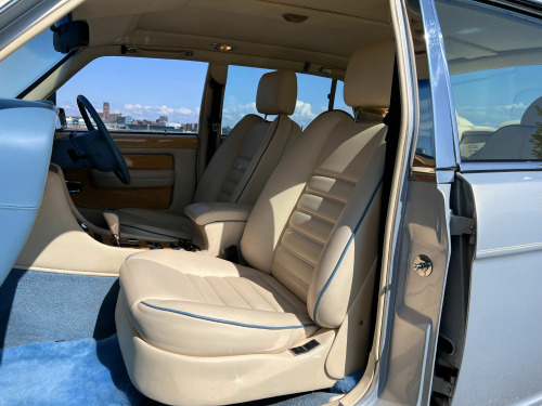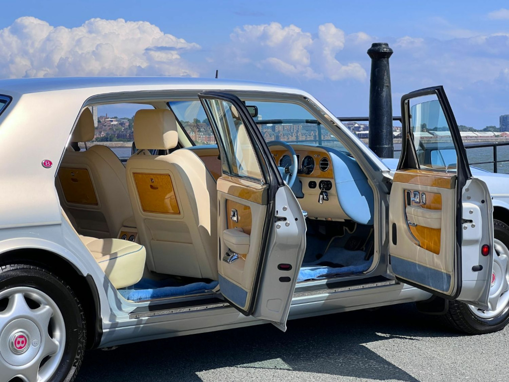The Bentley Turbo R is a fine machine but they dont make good project cars. It makes sense to buy the best you can find and it will bring you years of pleasure from both driving and ownership. This incredible example was supplied by Jack Barclay of London on the 14th of May 1996 and registered with the number BR 1. Ordered in a special Jack Barclay colour of Silver Dollar, a gorgeous pearlescent paint with hints of silver, yellow and blue depending on how the light falls on it. Complemented by hand painted magnolia fine lines, polished chrome radiator shell and special order grille insert this car turns the heads of Bentley aficionados as well as every one else who lays eyes on it. The interior was ordered with equal care with colours that complement the exterior perfectly. The magnolia leather is in beautiful condition and is complemented by the Aegean Blue piping, top roll and steering wheel. The immaculate Norse blue carpets and lambs wool over rugs give a slightly nautical feel to the whole interior. But by far the most impressive feature of the whole car is the eye wateringly pretty birds eye maple wood trim which as well as the usual dash board, door tops and vanity mirrors, extends to the rear picnic tables and all four door panels. The rich yellow gold of the wood is still as vibrant as it was back in 1996 and has an almost pearlescent quality, a true pleasure to behold. (Can you tell I like this car?) , As befits a car of such quality the service record is excellent, It was serviced by Jack Barclay at 3,253 miles, 3,883 miles, 11,746 miles, 14,016 miles, 17,169 miles and then H.R Owen at 19,313 miles, 21,895 miles, 25,807 miles, 28,315 miles. Then Bentley Hadley Green at 27,636 miles, 29,213 miles, 31,830 miles. Hunt & Keal at 33,942 miles. Phantom Motors at 36,521 miles and 36,789 miles. Finally Cameron Auto Ltd at 38,975 miles. Open to any inspection.