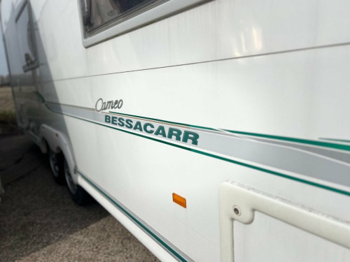 Bessacarr Cameo 550 Make: Bessacarr Model: Cameo Berth: Four Year: 2004 Habitation Length: 20ft 2in Unladen Weight: 1,494kg Features: End Washroom, Separate Shower, Microwave, Omnivent, Full Oven, CD Player, Alloy Wheels, Large Skylight, Twin-Axle, Stabiliser, Side-Dinette.