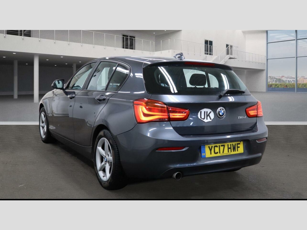 3 months warranty parts and labour,nationwide extended warranty available, 12 months Mot and fresh service at the time of sale,, all major cards are accepted, Delivery available all over the UK, Driveway insurance optional, viewing is by appointment only,, HPI clear, part exchange welcome all sort of cars and vans, visit our website to view more cars This 2017 BMW 1 Series 116d ED Plus is a superb example, having had only two owners from new. It features a 1.5L Diesel Engine and meets Euro 6 emission standards. Inside, you'll find comfort and convenience with Air Conditioning, Bluetooth Hands Free with USB Audio Interface, and Enhanced Bluetooth Telephone Preparation with Voice Control. Parking is made easier with Rear Park Distance Control, and the Rain Sensor automatically activates the headlights for you.This BMW 1 Series stands out with an impressive fuel economy of 83 mpg, demonstrating its efficiency compared to similar vehicles. Its low CO2 emissions also contribute to its economical running costs. Furthermore, the generous boot space offers practicality for all your needs, making this a well rounded and sensible choice. hanced bluetooth telephone preparation with usb audio interface and voice control, move cloth - anthracite with black interior, 12v power socket - centre console, 12v power socket - passenger footwell, 16in alloy wheels - light star spoke - 654, 3.5mm auxiliary input point for auxiliary playing devices, air conditioning - automatic - single zone, airbags, alarm system - thatcham 1 with remote control and engine immobiliser, armrest - front with sliding adjustment, bmw connecteddrive online services, bmw emergency call, bmw navigation system, bmw professional radio - single cd and mp3, bmw teleservices, battery safety cut off, bluetooth hands free with usb audio interface, brake pad wear indicator - front and rear, bumper system front and rear - replaceable deformation elements for impacts up to 9mph, central locking switch - doors - fuel filler cap - luggage compartment, check control warning system for monitoring of lights and door-luggage compartment open warning, child proof locking system - rear doors, child seat isofix attachment for the two outer rear seats, crash sensor - activating central locking release - hazard warning lights - battery safety cut off - interior lighting, cruise control with brake function, cup holders x2, dab digital radio, dsc - dynamic stability control plus, daytime driving lights, direction indicator - side repeaters - integrated in exterior mirrors, direction indicator lights - clear lenses, door mirrors - electrically adjustable, drive performance control with eco pro - comfort and sport modes, dynamic brake lights, electric windows - front and rear with open-close fingertip control - anti-trap facility and comfort closing function, exhaust tailpipe - single round left chrome finisher, extended storage, exterior parts in body colour, first aid kit and warning triangle, floor mats - velour, front fog lights, glove compartment, glovebox - handle with chrome surround, grab handles - integrated in roof lining x4, halogen headlights, handbrake and gear knob - leather, head restraints - rear and folding, heat protection glazing with green tint, high level third brake light, incorrect fuelling protection system, instrument cluster, interior lighting - front centre over interior mirror and rear centre, kidney grille - chrome with black vertical slats, lashing eyes in luggage compartment at sill x2, lights-on warning by audio warning signal when ignition is switched off, locking wheel bolts, luggage compartment - light, mobility tyre sealing system, model designation, multifunction controls for steering wheel, non smokers package, obc - on-board computer, optimum shift indicator, pdc - park distance control - rear, personal profile, rain sensor with automatic headlight activation, rear fog light - offside, rear seat headrests - outer headrests folding, rear window aerial, remote control including integrated key - 2, reversing light in rear cluster - nearside, seat belt security check for driver and front passenger, seats - 60-40 split folding rear, servotronic steering, shark fin, side armrests - front and rear integrated into door trim, side impact protection, standard seat for driver and passenger with manual adjustment, start-stop button with comfort go keyless engine start and auto start-stop deactivation button, steering wheel - 3-spoke leather, steering-wheel column adjustment - manual, storage compartment - rear centre console and in door trim - front, sun visors with vanity mirrors and ticket holder, tpms - tyre pressure monitoring system, three-point seat belts - all seats, twin horns, tyres - reduced rolling resistance, visible vin, welcome light, windscreen wiper - rear