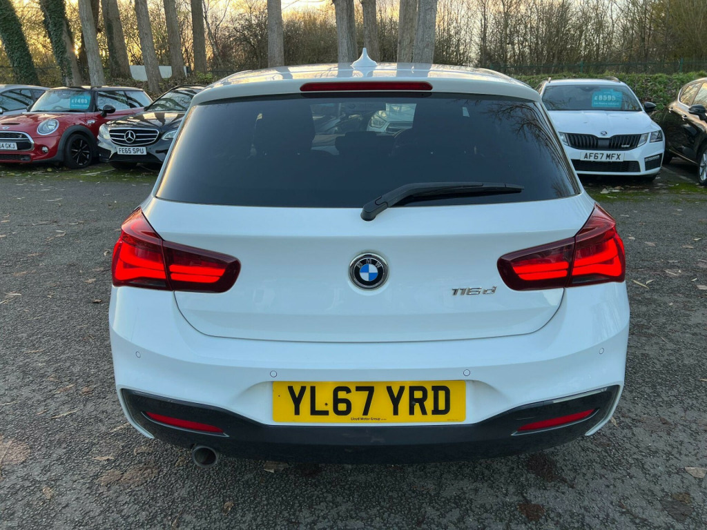 This 2018 BMW 1 Series 116d M Sport Shadow Edition is a prime example of a well maintained vehicle, offering a blend of sporty design and efficient performance. Powered by a 1.5L Euro 6 diesel engine, this model boasts an impressive fuel economy of 71 mpg, making it an economical choice for daily driving. The M Sport Shadow Edition trim enhances its appeal with distinctive styling cues. Inside, you'll find comfort and convenience with automatic single zone climate control and a Bluetooth hands free system complete with a USB audio interface for seamless connectivity. For enhanced visibility and a modern look, it features LED headlights, while rear parking sensors (PDC) make manoeuvring in tight spaces effortless.The audio experience is elevated by the premium Harman Kardon loudspeaker system, ensuring every journey is accompanied by exceptional sound quality. This BMW 1 Series also offers a surprisingly large boot space, providing ample room for shopping, luggage, or sports equipment. These highlights, including the remarkable 71 mpg fuel economy and the sophisticated Harman Kardon sound system, demonstrate how this 116d M Sport Shadow Edition stands out from other vehicles in its class, offering a superior combination of efficiency, comfort, and premium features.. 12V Power Socket - Centre Console, 12V Power Socket - Passenger Footwell, 18in Alloy Wheels - M Double Spoke - 719M Bicolour Jet Black, Active Differential Brake - ADB Sport - Electronic Differential Lock in DSC-Off Mode, Air Conditioning - Automatic - Single Zone, Airbags, Alarm System - Thatcham 1 with Remote Control and Engine Immobiliser, Ambient Lighting - Switchable BMW Classic Orange - Cold White - LED, Armrest - Front with Sliding Adjustment, BMW ConnectedDrive Online Services, BMW ConnectedDrive Services, BMW Emergency Call, BMW Navigation System, BMW Professional Radio - Single CD and MP3, BMW TeleServices, Battery Age Recognition Function, Battery Safety Cut Off, Black High-Gloss Kidney Grille Frame with Black Slats, Bluetooth Hands Free with USB Audio Interface, Brake Pad Wear Indicator - Front and Rear, Bumper System Front and Rear - Replaceable Deformation Elements for Impacts Up to 9mph, Central Locking Switch - Doors - Fuel Filler Cap - Luggage Compartment, Check Control Warning System for Monitoring of Lights and Door-Luggage Compartment Open Warning, Child Proof Locking System - Rear Doors, Child Seat ISOFIX Attachment for the Two Outer Rear Seats, Condition Based Service, Crash Sensor - Activating Central Locking Release - Hazard Warning Lights - Battery Safety Cut Off - Interior Lighting, Cruise Control with Brake Function, Cupholders Two with Sliding Cover and Inlay Mat, DAB Digital Radio, DSC - Dynamic Stability Control Plus, Darkened Rear Lights with LED Light Bars, Direction Indicator - Side Repeaters - Integrated in Exterior Mirrors, Direction Indicator Lights - Clear Lenses, Door Sill Finishers - M Designation, Drive Performance Control - ECO PRO - Comfort - Sport - Sport Plus Modes, Dynamic Brake Lights, ECO PRO Mode, Electric Windows - Front and Rear with Open-Close Fingertip Control - Anti-Trap Facility and Comfort Closing Function, Exhaust Tailpipes - Dark Chrome, Extended Lighting, Extended Storage, Exterior Mirrors Electrically Adjustable, Exterior Parts in Body Colour, Exterior Trim - High Gloss Shadowline, First Aid Kit and Warning Triangle, Floor Mats - Velour, Gearshift Lever with M Designation - Short-Shift, Glove Compartment, Glovebox - Handle with Chrome Surround, Grab Handles - Integrated in Roof Linings - Four, Handbrake and Gear Knob - Leather, Head Restraints - Rear and Folding, Headlining - Anthracite, Heat Protection Glazing with Green Tint, High Level Third Brake Light, Incorrect Fuelling Protection System, Instrument Cluster - Sports with Red Highlight, Interior Lighting - Front Centre Over Interior Mirror and Rear Centre, Interior Trim - Aluminium Hexagon with Estoril Blue Finisher, LED Fog Lights - Front, LED Headlights, LED Headlights with Darkened Surround, Lashing Eyes in Luggage Compartment at Sill x2, Lights-On Warning by Audio Warning Signal When Ignition is Switched Off, Locking Wheel Bolts, Loudspeaker System - Harman Kardon, Luggage Compartment - Light, Luggage Compartment Access via BMW Roundel, M Aerodynamic Bodystyling, M Logo Designation Chrome - Side, M Sport Braking System, M Sport Multi-Function Leather Steering Wheel - Three-Spoke, M Sport Suspension, Model Designation, Multifunction Controls for Steering Wheel, Non Smokers Package, OBC - On-Board Computer, Oil Temperature Display via On-Board Computer Shown in Central Screen in Instrument Cluster, Optimum Shift Indicator, PDC - Park Distance Control - Rear, Personal Profile, Power Steering - Electric, Rain Sensor with Automatic Headlight Activation, Real Time Traffic Information, Rear Fog Light - Offside, Rear Seat Headrests - Outer Headrests Folding, Rear Window Aerial, Remote Control Including Integrated Key - 2, Remote Control with Integrated Key with Insert in Blue, Reversing Light in Rear Cluster - Nearside, Run Flat Tyres, Seat Belt Security Check for Driver and Front Passenger, Seats - 60-40 Split Folding Rear, Servotronic Steering, Shark Fin, Side Armrests - Front and Rear Integrated into Door Trim, Sid. Full service history