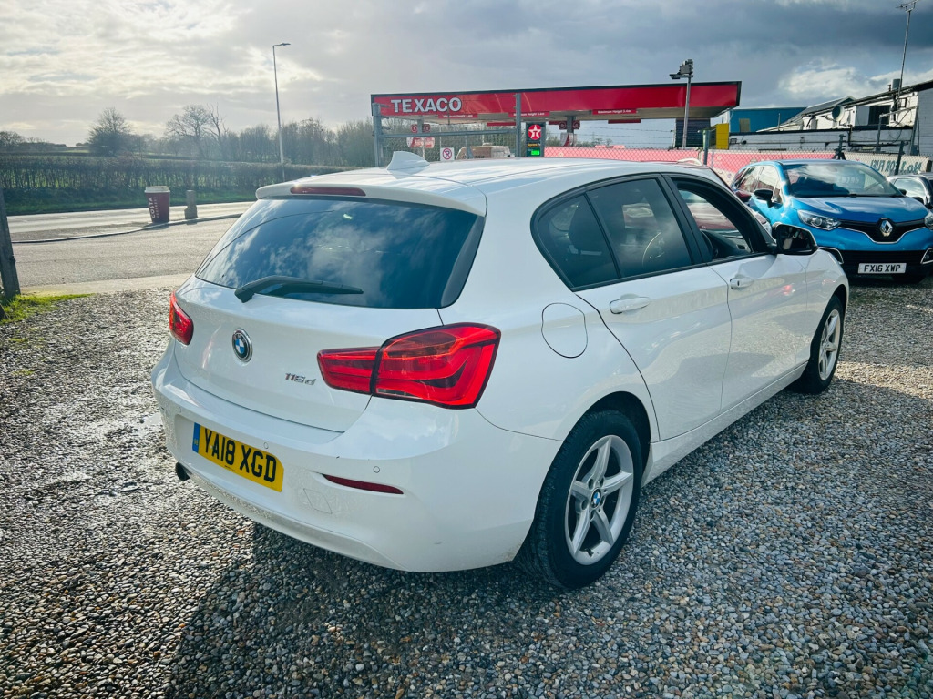 2018 BMW 116d SE 5Dr- Has covered just 68k with great history - Will be supplied 12 months Mot- Euro 6- Part Exchange Welcome - Finance Available v power socket - centre console, 12v power socket - passenger footwell, bmw connecteddrive online services, bmw connecteddrive services, bmw emergency call, bmw navigation system, bmw professional radio - single cd and mp3, bmw teleservices, bluetooth hands free with usb audio interface, dab digital radio, real time traffic information, rear window aerial, remote services, shark fin, 16in alloy wheels - light star spoke - 654, bmw mobility tyre sealing system, direction indicator - side repeaters - integrated in exterior mirrors, direction indicator lights - clear lenses, electric windows - front and rear with open-close fingertip control - anti-trap facility and comfort closing function, exhaust tailpipe - chrome single round - exhaust tailpipe stainless steel - single round, exterior mirrors electrically adjustable, exterior parts in body colour, heat protection glazing with green tint, kidney grille - chrome with black vertical slats, locking wheel bolts, rear fog light - offside, reversing light in rear cluster - nearside, tyres - reduced rolling resistance, active differential brake - adb sport - electronic differential lock in dsc-off mode, airbags, alarm system - thatcham 1 with remote control and engine immobiliser, battery safety cut off, bumper system front and rear - replaceable deformation elements for impacts up to 9mph, child proof locking system - rear doors, child seat isofix attachment for the two outer rear seats, crash sensor - activating central locking release - hazard warning lights - battery safety cut off - interior lighting, dsc - dynamic stability control plus, dynamic brake lights, first aid kit and warning triangle, remote control including integrated key - 2, seat belt security check for driver and front passenger, side impact protection, three-point seat belts - all seats, visible vin, windscreen wiper - rear, air conditioning - automatic - single zone, armrest - front with sliding adjustment, central locking switch - doors - fuel filler cap - luggage compartment, cupholders two with sliding cover and inlay mat, door sill finishers - bmw designation - front - black, extended storage, floor mats - velour, glove compartment, glovebox - handle with chrome surround, grab handles - integrated in roof linings - four, handbrake and gear knob - leather, head restraints - rear and folding, instrument cluster, interior lighting - front centre over interior mirror and rear centre, interior trim - satin silver, lashing eyes in luggage compartment at sill x2, luggage compartment - light, luggage compartment access via bmw roundel, multifunction controls for steering wheel, non smokers package, personal profile, rain sensor with automatic headlight activation, seats - 60-40 split folding rear, side armrests - front and rear integrated into door trim, standard seat for driver and passenger with manual adjustment, start-stop button with comfort go keyless engine start and auto start-stop deactivation button, steering wheel - 3-spoke leather, steering-wheel column adjustment - manual, storage compartment - rear centre console and in door trim - front, sun visors with vanity mirrors and ticket holder, twin horns, battery age recognition function, brake pad wear indicator - front and rear, condition based service, cruise control with brake function, drive performance control with eco pro - comfort and sport modes, eco pro mode, eps - electric power steering, obc - on-board computer, oil temperature display via on-board computer shown in central screen in instrument cluster, optimum shift indicator, pdc - park distance control - rear, servotronic steering, tpms - tyre pressure monitoring system, check control warning system for monitoring of lights and door-luggage compartment open warning, front fog lights, high level third brake light, led fog lights - front, led headlights, lights-on warning by audio warning signal when ignition is switched off
