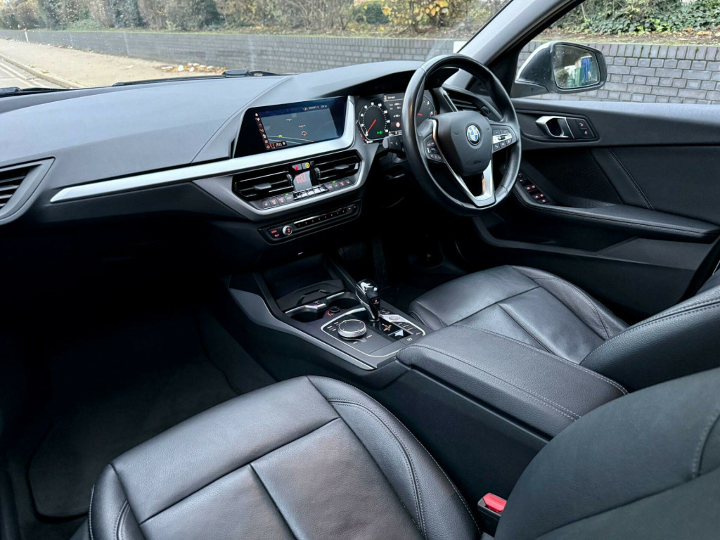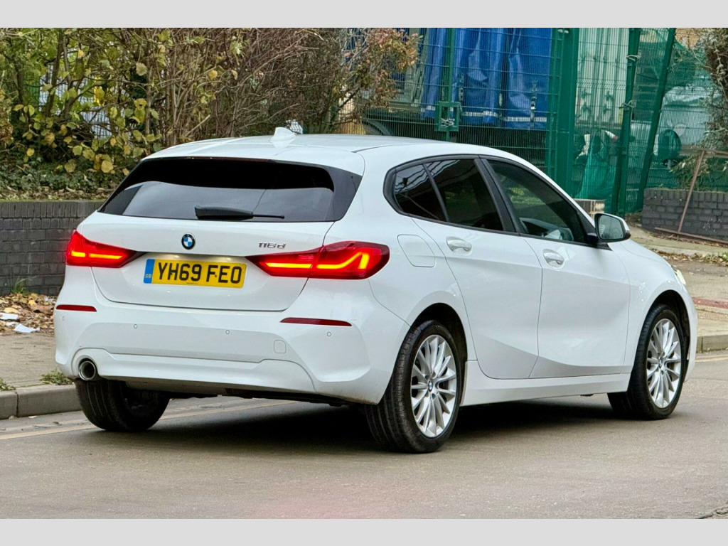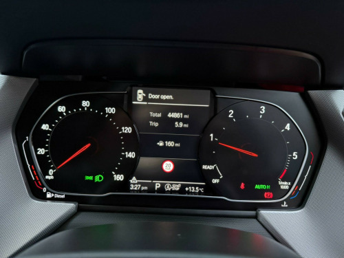 Discover this 2019 BMW 1 Series 116d SE with exceptionally low mileage for its age, having covered just 44848 miles. This Euro 6 compliant model boasts a 1.5L Diesel Engine and comes with a clear vehicle history check, offering peace of mind. Inside, you'll find the comfort of heated seats, enhanced Bluetooth with wireless phone charging, and luxurious perforated Dakota leather upholstery in black with grey highlights. The SE trim level ensures a refined driving experience, complemented by a dual-clutch automatic transmission and sun protection glazing for added privacy and comfort.This BMW 1 Series offers practical benefits, including generous boot space for all your needs. Its low CO2 emissions make it an environmentally conscious choice, and its efficient 1.5L diesel engine provides a smooth 0-62mph acceleration in 10.1 seconds. These factors combined indicate that this vehicle offers a superior blend of economy, comfort, and performance when compared to similar models on the market. v power socket in centre console front with blanking plug, 16in alloy wheels - star-spoke style 517, active guard plus, air conditioning - automatic - single zone, airbags, alarm system - thatcham 1 with remote control and engine immobiliser, armrest - front - folding with storage compartment, attentiveness assistant, automatically dimming rear view mirror, bmw connecteddrive online services, bmw emergency call, bmw live cockpit plus, bmw mobility tyre sealing system, bmw teleservices, bluetooth - audio streaming - with compatible devices, bluetooth hands free with usb audio interface, bumper system front and rear - replaceable deformation elements for impacts up to 9mph, central locking switch - doors - fuel filler cap - luggage compartment, check control warning system for monitoring of lights and door-luggage compartment open warning, child seat isofix attachment for the two outer rear seats and front passenger seat, childproof locking system - rear doors and electric windows, condition based service, connected package plus, crash sensor, cruise control with brake function, cupholders - two front centre console, dab digital radio, dsc - dynamic stability control plus, dead-locking function system to all doors, direction indicator side lights integrated in exterior mirrors, door sill finishers in black plastic with bmw designation - front only, drive performance control with eco pro and comfort modes, drive-away locking system on all doors-luggage compartment - can be de-activated in idrive settings, dual-clutch automatic transmission, eco pro mode, eps - electric power steering, electric handbrake, electric windows - front and rear with open-close fingertip control - trap release and child lock function, exhaust tailpipe - chrome - single round 90mm - left, extended storage, exterior mirrors - heated - electrically adjustable, exterior parts in body colour, exterior parts in matt black, first aid kit and warning triangle, floor mats - velour, front windscreen wipers with integrated washer jets, glove box with light, grab handles - integrated in roof linings - four, heat protection glazing with green tint, high level third brake light, incorrect fuelling protection system, integrated owners handbook - within idrive menu, interior lighting, kidney grille - chrome frame with high-gloss black struts, led fog lights - front, led headlights, locking wheel bolts, model designation on tailgate, multifunction controls for steering wheel, obc - on-board computer, optimum shift indicator, pdc - park distance control - front and rear, performance control, personal profile, quartz silver matt interior trim, rain sensor with automatic headlight activation, rear fog light, rear seat backrest with manual 60-40 split folding with 3 top tether clips integrated on rear of seat panels, rear seat headrests - three, remote control key x2, reversing light in rear light clusters, seat belt security check for driver and front passenger, seat belt warning if driver starts ignition without putting on seatbelt, servotronic steering, shark fin, side armrests - front and rear integrated into door trim, side impact protection, sport multi-function leather steering wheel - three spoke, standard seat for driver and passenger with manual adjustment, start-stop button - illuminated in centre console with keyless engine start and auto start-stop deactivation button, steering column with manual reach and rake adjustment, stereo speaker system, storage features, sun visors with vanity mirrors and insert tab, suspension, tpms - tyre pressure monitoring system, three-point seat belts - all seats, twin horns, tyres - reduced rolling resistance, visible vin, welcome light, windscreen wiper - rear, comfort pack i, 17in alloy wheels - multi-spoke - 546, enhanced bluetooth with wireless charging, sun protection glazing, perforated dakota leather - black with grey highlight, bmw adaptive led headlights, luggage compartment separating net, navigation system - mapped navigation hdd dab digital radio light pack luggage compartment pack storage compartment pack luggage compartment pack auto dim, heated seat(s) - driver/passenger auto dipping mirror parking sensor(s) cruise control - brake function climate control folding door mirrors - outside park, park distance control height adjustable seat(s) - passenger seat leather steering wheel - sports multi function steering w leather trim active guard - plus, 17'' alloy wheels led headlights privacy glass led fog lights