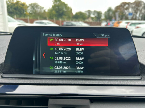 This 2018 BMW 1 Series 116d Sport offers exceptional value with its low mileage of just 52,000 miles, a significant advantage for its age. This Euro 6 compliant 1.5L diesel engine ensures efficient performance, complemented by a full service history and a clear vehicle history check. The car comes with a 6 month warranty for your peace of mind, and its MOT is valid until August 2026. Notable features include front and rear Park Distance Control with parking assistance sensors, dark chrome exhaust tailpipes, and Bluetooth hands free with USB audio interface for seamless connectivity.Further enhancing your driving experience, this BMW 1 Series is equipped with a rain sensor that automatically activates the headlights and a single zone automatic air conditioning system for climate control. The generous boot space is a practical highlight, making it ideal for everyday use and longer journeys. These elements, combined with its well maintained provenance and desirable Sport trim, position this BMW 1 Series as a superior choice compared to other vehicles in its class.RESERVE ONLINE TODAY + ULEZ COMPLIANT +0% DEPOSIT FINANCE AVAILABLE + PLEASE MAKE YOUR APPOINTMENT TO VIEW TODAY + Our family owned business was founded in 1992 and our aim is to offer a friendly and efficient service and to make our customer's buying experience as easy and enjoyable as possible. Our experienced staff will offer advice, if required, to help ensure our customers find the most suitable car to match their motoring needs. Part Exchange welcome. Although every effort is made to ensure the accuracy of these details please contact the dealer to verify any particular details prior to making a purchase. + All our cars are HPi checked to offer our customers peace of mind and therefore ensuring there is no outstanding finance or insurance write offs listed against them+ *Finance subject to status+ Third party finance agreements attract a £300 Administration fee+. 12V Power Socket - Centre Console, 12V Power Socket - Passenger Footwell, 17in Alloy Wheels - Light Double Spoke Star - 655, Active Differential Brake - ADB Sport - Electronic Differential Lock in DSC-Off Mode, Air Conditioning - Automatic - Single Zone, Airbags, Alarm System - Thatcham 1 with Remote Control and Engine Immobiliser, Ambient Lighting - Switchable BMW Classic Orange - Cold White - LED, Armrest - Front with Sliding Adjustment, BMW ConnectedDrive Online Services, BMW ConnectedDrive Services, BMW Emergency Call, BMW Navigation System, BMW Professional Radio - Single CD and MP3, BMW TeleServices, Battery Age Recognition Function, Battery Safety Cut Off, Bluetooth Hands Free with USB Audio Interface, Brake Pad Wear Indicator - Front and Rear, Bumper - Rear with High Gloss Black Finisher, Bumper System Front and Rear - Replaceable Deformation Elements for Impacts Up to 9mph, Central Locking Switch - Doors - Fuel Filler Cap - Luggage Compartment, Check Control Warning System for Monitoring of Lights and Door-Luggage Compartment Open Warning, Child Proof Locking System - Rear Doors, Child Seat ISOFIX Attachment for the Two Outer Rear Seats, Condition Based Service, Crash Sensor - Activating Central Locking Release - Hazard Warning Lights - Battery Safety Cut Off - Interior Lighting, Cupholders Two with Sliding Cover and Inlay Mat, DAB Digital Radio, DSC - Dynamic Stability Control Plus, Daytime Driving Lights, Direction Indicator - Side Repeaters - Integrated in Exterior Mirrors, Direction Indicator Lights - Clear Lenses, Door Sill Finishers - BMW Designation - Front, Drive Performance Control - ECO PRO - Comfort - Sport - Sport Plus Modes, Dynamic Brake Lights, ECO PRO Mode, EPS - Electric Power Steering, Electric Windows - Front and Rear with Open-Close Fingertip Control - Anti-Trap Facility and Comfort Closing Function, Exhaust Tailpipes - Dark Chrome, Extended Storage, Exterior Mirrors Electrically Adjustable, Exterior Parts in Body Colour, First Aid Kit and Warning Triangle, Floor Mats - Velour, Front Air Inlet with High-Gloss Black Finisher, Front Fog Lights, Glove Compartment, Glovebox - Handle with Chrome Surround, Grab Handles - Integrated in Roof Linings - Four, Halogen Headlights, Handbrake and Gear Knob - Leather, Head Restraints - Rear and Folding, Heat Protection Glazing with Green Tint, High Level Third Brake Light, Incorrect Fuelling Protection System, Instrument Cluster - Sports with Red Highlight, Interior Lighting - Front Centre Over Interior Mirror and Rear Centre, Interior Trim - High-Gloss Black with Coral Red Finisher, Kidney Grille - Extra Wide High Gloss Black Vertical Slats, Lashing Eyes in Luggage Compartment at Sill x2, Lights-On Warning by Audio Warning Signal When Ignition is Switched Off, Locking Wheel Bolts, Luggage Compartment - Light, Luggage Compartment Access via BMW Roundel, Model Designation, Multifunction Controls for Steering Wheel, Non Smokers Package, OBC - On-Board Computer, Oil Temperature Display via On-Board Computer Shown in Central Screen in Instrument Cluster, Optimum Shift Indicator, Personal Profile, Rain Sensor with Automatic Headlight Activation, Real Time Traffic Information, Rear Fog Light - Offside, Rear Window Aerial, Remote Control Including Integrated Key - 2, Remote Control with Integrated Key with Insert in Red, Reversing Light in Rear Cluster - Nearside, Run Flat Tyres, Seat Belt Security Check for Driver and Front Passenger, Seats - 60-40 Split Folding Rear, Servotronic Steering, Shark Fin, Side Armrests - Front and Rear Integrated into Door Trim, Side Impact Protection, Speed Limit Function, Sport Multi-Function Leather Steering Wheel - Red Stitching, Sport Seats - Front, Start-Stop Button with Comfort Go Keyless Engine Start and Auto Start-Stop Deactivation Button, Steering-Wheel Column Adjustment - Manual, Storage Compartment - Rear Centre Console and in Door Trim - Front, Sun Visors with Vanity Mirrors and Ticket Holder, TPMS - Tyre Pressure Monitoring Sy. Full service history