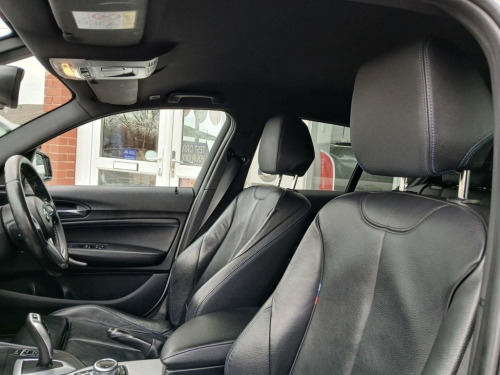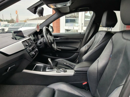 BMW 1 Series 1.5 118i GPF M Sport Shadow Edition Stylish, sporty, and built to deliver an engaging drive, this BMW 1 Series 1.5 118i GPF M Sport Shadow Edition perfectly blends performance, comfort, and practicality. With 56,100 miles from new, this premium hatchback has been exceptionally maintained and is Euro 6 compliant, making it ideal for both city driving and longer journeys with low running costs and reduced emissions. Powered by a 1.5-litre turbocharged petrol engine producing 136bhp, the 118i offers smooth acceleration and refined handling, complemented by BMW's renowned rear-wheel-drive dynamics. The M Sport Shadow Edition trim enhances its athletic appeal with 18-inch alloy wheels, privacy glass, and distinctive M styling for a commanding road presence. Step inside and you'll find a luxurious black leather interior with heated front seats, ensuring comfort whatever the weather. Convenience features include push-button start, automatic headlights and wipers, and front and rear parking sensors for effortless manoeuvring. The integrated satellite navigation system ensures you're always on the right track, while BMW's intuitive infotainment system keeps you connected on the go. This model not only delivers on looks and performance but also offers practicality and peace of mind. It's compliant with ULEZ and clean air zone standards, making it suitable for any city. We offer nationwide delivery options and low-rate finance plans starting fr 12V Power Socket - Centre Console, 12V Power Socket - Passenger Footwell, 18in Alloy Wheels - M Double Spoke - 719, Active Differential Brake - ADB Sport - , Air Conditioning - Automatic - Single Zo, Airbags, Alarm System - Thatcham 1 with Remote Co, Ambient Lighting - Switchable BMW Classi, Armrest - Front with Sliding Adjustment, BMW ConnectedDrive Online Services, BMW ConnectedDrive Services, BMW Emergency Call, BMW Navigation System, BMW Professional Radio - Single CD and M, BMW TeleServices, Battery Age Recognition Function, Battery Safety Cut Off, Black High-Gloss Kidney Grille Frame wit, Bluetooth Hands Free with USB Audio Inte, Brake Pad Wear Indicator - Front and Rea, Bumper System