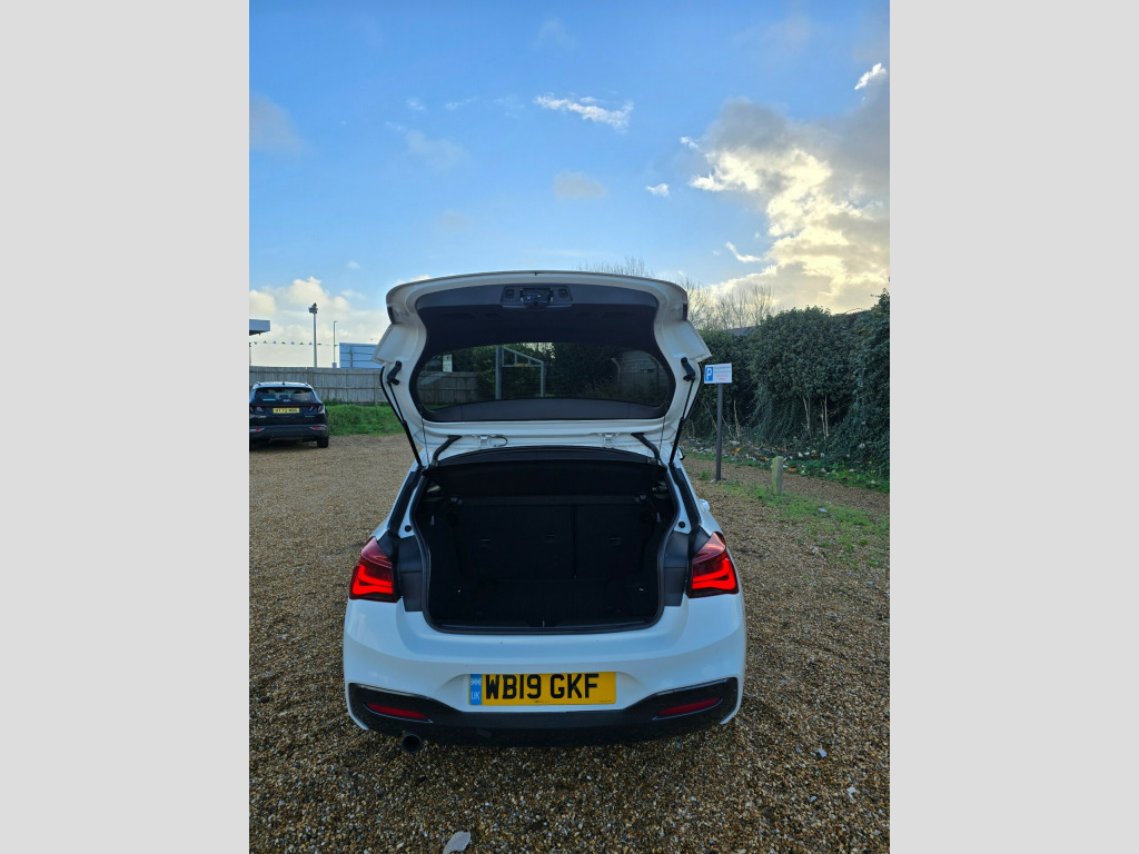 This 2019 BMW 1 Series 1.5 118i GPF M Sport Shadow Edition Hatchback with a petrol engine and manual transmission is a stylish and efficient option for those seeking a reliable vehicle. With 93381 miles on the clock, this ULEZ compliant car comes with MOT valid until 23/06/2026. The 5-door hatchback boasts 5 seats, perfect for accommodating passengers comfortably. Its Alpine White exterior is complemented by a High-Gloss Black interior trim with Pearl Chrome Finisher and luxurious Dakota Leather in Black. Additional features include seat heating for both the driver and front passenger, as well as a 12V power socket in the centre console. This Euro 6 (s/s) compliant car is a versatile and practical choice for anyone in need of a reliable vehicle. This car comes with Harman Kardon speakers . Rear parking sensor. Front heated seats. Cruise control. 2x keys. 5 Services 4 Main dealer BMW last Service done 92k v power socket - centre console, 12v power socket - passenger footwell, bmw connecteddrive online services, bmw connecteddrive services, bmw emergency call, bmw navigation system, bmw professional radio - single cd and mp3, bmw teleservices, bluetooth hands free with usb audio interface, dab digital radio, loudspeaker system - harman kardon, real time traffic information, rear window aerial, remote services, shark fin, 18in alloy wheels - m double spoke - 719m bicolour jet black, bmw mobility tyre sealing system, black high-gloss kidney grille frame with black slats, direction indicator - side repeaters - integrated in exterior mirrors, direction indicator lights - clear lenses, electric windows - front and rear with open-close fingertip control - anti-trap facility and comfort closing function, exhaust tailpipes - dark chrome, exterior mirrors electrically adjustable, exterior parts in body colour, exterior trim - high gloss shadowline, heat protection glazing with green tint, led headlights with darkened surround, locking wheel bolts, m aerodynamic bodystyling, m logo designation chrome - side, rear fog light - offside, reversing light in rear cluster - nearside, run flat tyres, sun protection glazing, tyres - reduced rolling resistance, active differential brake - adb sport - electronic differential lock in dsc-off mode, airbags, alarm system - thatcham 1 with remote control and engine immobiliser, battery safety cut off, bumper system front and rear - replaceable deformation elements for impacts up to 9mph, child proof locking system - rear doors, child seat isofix attachment for the two outer rear seats, crash sensor - activating central locking release - hazard warning lights - battery safety cut off - interior lighting, dsc - dynamic stability control plus, dynamic brake lights, first aid kit and warning triangle, remote control including integrated key - 2, remote control with integrated key with insert in blue, seat belt security check for driver and front passenger, side impact protection, speed limit function, three-point seat belts - all seats, visible vin, windscreen wiper - rear, air conditioning - automatic - single zone, ambient lighting - switchable bmw classic orange - cold white - led, armrest - front with sliding adjustment, automatically dimming rear view mirror, central locking switch - doors - fuel filler cap - luggage compartment, cupholders two with sliding cover and inlay mat, door sill finishers - m designation, extended lighting, extended storage, floor mats - velour, gearshift lever with m designation - short-shift, glove compartment, glovebox - handle with chrome surround, grab handles - integrated in roof linings - four, handbrake and gear knob - leather, head restraints - rear and folding, headlining - anthracite, instrument cluster, interior lighting - front centre over interior mirror and rear centre, interior trim - aluminium hexagon with estoril blue finisher, lashing eyes in luggage compartment at sill x2, luggage compartment - light, luggage compartment access via bmw roundel, multifunction controls for steering wheel, non smokers package, personal profile, rain sensor with automatic headlight activation, seats - 60-40 split folding rear, side armrests - front and rear integrated into door trim, sport seats - front, start-stop button with comfort go keyless engine start and auto start-stop deactivation button, steering wheel - m sport leather multifunction, steering-wheel column adjustment - manual, storage compartment - rear centre console and in door trim - front, sun visors with vanity mirrors and ticket holder, twin horns, welcome lighting - led, battery age recognition function, brake pad wear indicator - front and rear, condition based service, cruise control with brake function, drive performance control - eco pro - comfort - sport - sport plus modes, eco pro mode, eps - electric power steering, m sport braking system, m sport suspension, obc - on-board computer, oil temperature display via on-board computer shown in central screen in instrument cluster, optimum shift indicator, pdc - park distance control - rear, servotronic steering, tpms - tyre pressure monitoring system, check control warning system for monitoring of lights and door-luggage compartment open warning, darkened rear lights with led light bars, high level third brake light, led fog lights - front, led headlights, lights-on warning by audio warning signal when ignition is switched off