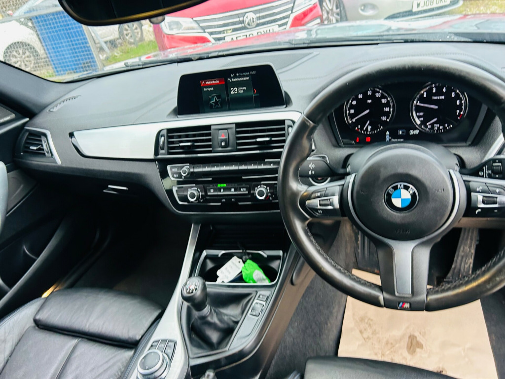 2019 BMW 118i M Sport 5 dr- Has covered 112k with great history - Will be supplied with 12 months Mot- Euro 6- Finance Available - Part Exchange Welcome v power socket - centre console, 12v power socket - passenger footwell, bmw connecteddrive online services, bmw connecteddrive services, bmw emergency call, bmw navigation system, bmw professional radio - single cd and mp3, bmw teleservices, bluetooth hands free with usb audio interface, dab digital radio, loudspeaker system - harman kardon, real time traffic information, rear window aerial, remote services, shark fin, 18in alloy wheels - m double spoke - 719m bicolour jet black, bmw mobility tyre sealing system, black high-gloss kidney grille frame with black slats, direction indicator - side repeaters - integrated in exterior mirrors, direction indicator lights - clear lenses, electric windows - front and rear with open-close fingertip control - anti-trap facility and comfort closing function, exhaust tailpipes - dark chrome, exterior mirrors electrically adjustable, exterior parts in body colour, exterior trim - high gloss shadowline, heat protection glazing with green tint, led headlights with darkened surround, locking wheel bolts, m aerodynamic bodystyling, m logo designation chrome - side, rear fog light - offside, reversing light in rear cluster - nearside, run flat tyres, sun protection glazing, tyres - reduced rolling resistance, active differential brake - adb sport - electronic differential lock in dsc-off mode, airbags, alarm system - thatcham 1 with remote control and engine immobiliser, battery safety cut off, bumper system front and rear - replaceable deformation elements for impacts up to 9mph, child proof locking system - rear doors, child seat isofix attachment for the two outer rear seats, crash sensor - activating central locking release - hazard warning lights - battery safety cut off - interior lighting, dsc - dynamic stability control plus, dynamic brake lights, first aid kit and warning triangle, remote control including integrated key - 2, remote control with integrated key with insert in blue, seat belt security check for driver and front passenger, side impact protection, speed limit function, three-point seat belts - all seats, visible vin, windscreen wiper - rear, air conditioning - automatic - single zone, ambient lighting - switchable bmw classic orange - cold white - led, armrest - front with sliding adjustment, automatically dimming rear view mirror, central locking switch - doors - fuel filler cap - luggage compartment, cupholders two with sliding cover and inlay mat, door sill finishers - m designation, extended lighting, extended storage, floor mats - velour, gearshift lever with m designation - short-shift, glove compartment, glovebox - handle with chrome surround, grab handles - integrated in roof linings - four, handbrake and gear knob - leather, head restraints - rear and folding, headlining - anthracite, instrument cluster, interior lighting - front centre over interior mirror and rear centre, interior trim - aluminium hexagon with estoril blue finisher, lashing eyes in luggage compartment at sill x2, luggage compartment - light, luggage compartment access via bmw roundel, multifunction controls for steering wheel, non smokers package, personal profile, rain sensor with automatic headlight activation, seats - 60-40 split folding rear, side armrests - front and rear integrated into door trim, sport seats - front, start-stop button with comfort go keyless engine start and auto start-stop deactivation button, steering wheel - m sport leather multifunction, steering-wheel column adjustment - manual, storage compartment - rear centre console and in door trim - front, sun visors with vanity mirrors and ticket holder, twin horns, welcome lighting - led, battery age recognition function, brake pad wear indicator - front and rear, condition based service, cruise control with brake function, drive performance control - eco pro - comfort - sport - sport plus modes, eco pro mode, eps - electric power steering, m sport braking system, m sport suspension, obc - on-board computer, oil temperature display via on-board computer shown in central screen in instrument cluster, optimum shift indicator, pdc - park distance control - rear, servotronic steering, tpms - tyre pressure monitoring system, check control warning system for monitoring of lights and door-luggage compartment open warning, darkened rear lights with led light bars, high level third brake light, led fog lights - front, led headlights, lights-on warning by audio warning signal when ignition is switched off