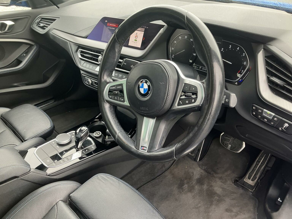 SERVICED at 9,462 21,495 29,367 34,049 39,178 and 46,789 milesPART EXCHANGE WELCOMEWith an MOT valid until March 2027, this 2020 BMW 1 Series 118i M Sport offers excellent peace of mind. This Euro 6 compliant vehicle boasts a full dealership service history, with its last service completed on 2026-02-06 at 46,789 miles. Under the bonnet, you'll find a responsive 1.5L petrol engine paired with a smooth dual-clutch automatic transmission. The M Sport trim enhances its sporty appeal, and the interior is finished with striking perforated Dakota leather in black with blue highlights.Experience the joy of driving with a swift 0-62mph acceleration time of just 8.5 seconds, demonstrating its performance advantage over similar vehicles. This BMW 1 Series also features a panoramic glass sunroof, allowing natural light to flood the cabin, and the Connected Package Plus, which includes Apple CarPlay for seamless smartphone integration. Enjoy convenient connectivity with the Bluetooth hands free system and USB audio interface. Furthermore, this model offers generous boot space for all your needs and benefits from low CO2 emissions, making it a more environmentally conscious choice.. 12V Power Socket in Centre Console Front with Blanking Plug, 18in Alloy Wheels - Double-Spoke Style 819M, Active Guard Plus, Air Conditioning Automatic with Two-Zone Control, Airbags, Alarm System - Thatcham 1 with Remote Control and Engine Immobiliser, Armrest - Front - Folding with Storage Compartment, Attentiveness Assistant, Automatically Dimming Rear View Mirror, Bluetooth - Audio Streaming - with Compatible Devices, Bluetooth Hands Free with USB Audio Interface, BMW ConnectedDrive Online Services, BMW Emergency Call, BMW Live Cockpit Plus, BMW Mobility Tyre Sealing System, BMW TeleServices, Bumper System Front and Rear - Replaceable Deformation Elements for Impacts Up to 9mph, Central Locking Switch - Doors - Fuel Filler Cap - Luggage Compartment, Check Control Warning System for Monitoring of Lights and Door-Luggage Compartment Open Warning, Child Seat ISOFIX Attachment For The Two Outer Rear Seats And Front Passenger Seat, Childproof Locking System - Rear Doors and Electric Windows, Condition Based Service, Connected Package Plus, Contrast Stitching - Instrument Panel, Crash Sensor, Cruise Control with Brake Function and Speed Limiter, Cupholders - Two Front Centre Console, DAB Digital Radio, Dead-locking Function System to all Doors, Direction Indicator Side Lights Integrated in Exterior Mirrors, Door Sill Finishers in Black Plastic with Inserted M Designation in Metallic Look - Front Only, Drive Performance Control with ECO PRO and Comfort Modes, Drive-Away Locking System on All Doors-Luggage Compartment - Can Be De-Activated in iDrive Settings, DSC - Dynamic Stability Control Plus, ECO PRO Mode, Electric Handbrake, Electric Windows - Front and Rear with Open-Close Fingertip Control - Trap Release and Child Lock Function, EPS - Electric Power Steering, Exhaust Tailpipe - Chrome - Single Round 90mm - Left, Extended Lighting, Extended Storage, Exterior Mirrors - Electrically Folding with Anti Dazzle, Exterior Parts in Body Colour, Exterior Trim - High Gloss Shadowline, First Aid Kit and Warning Triangle, Floor Mats in Anthracite Velour with Contrasting Colour Seam to Match Contrast Stitching on Instrument panel, Front Windscreen Wipers with Integrated Washer Jets, Glove Box with Light, Grab Handles - Integrated in Roof Linings - Four, Headlining - Anthracite, Heat Protection Glazing with Green Tint, High Level Third Brake Light, Illuminated Boston Interior Trim, Integrated Owners Handbook - Within iDrive Menu, Interior Lighting, Kidney Grille - Chrome Frame with Satin Aluminium Struts, LED Fog Lights - Front, LED Headlights, Locking Wheel Bolts, Luggage Compartment Package, M Logo Designation Chrome - Side, M Sport Aerodynamic Package, M Sport Package, M Sport Steering Wheel, M Sport Suspension, Model Designation on Tailgate, Multifunction Controls for Steering Wheel, OBC - On-Board Computer, Optimum Shift Indicator, PDC - Park Distance Control - Front and Rear, Performance Control, Personal Profile, Rain Sensor with Automatic Headlight Activation, Rear Fog Light, Rear Seat Backrest with Manual 60-40 Split Folding with 3 Top Tether Clips Integrated on Rear of Seat Panels, Rear Seat Headrests - Three, Remote Control Key x2, Reversing Light in Rear Light Clusters, Seat Belt Security Check for Driver and Front Passenger, Seat Belt Warning if Driver Starts Ignition without Putting on Seatbelt, Seat Heating for Driver and Front Passenger, Servotronic Steering, Shark Fin, Side Armrests - Front and Rear Integrated into Door Trim, Side Impact Protection, Sport Seats - Front, Start-Stop Button - Illuminated in Centre Console with Keyless Engine Start and Auto Start-Stop Deactivation Button, Steering Column with Manual Reach and Rake Adjustment, Stereo Speaker System, Storage Features, Sun Visors with Vanity Mirrors and Insert Tab, Suspension, Three-Point Seat Belts - All Seats, TPMS - Tyre Pressure Monitoring System, Twin Horns, Tyres - Reduced Rolling Resistance, Visible VIN, Welcome Light, Windscreen Wiper - Rear, Dual-clutch. Full dealership history