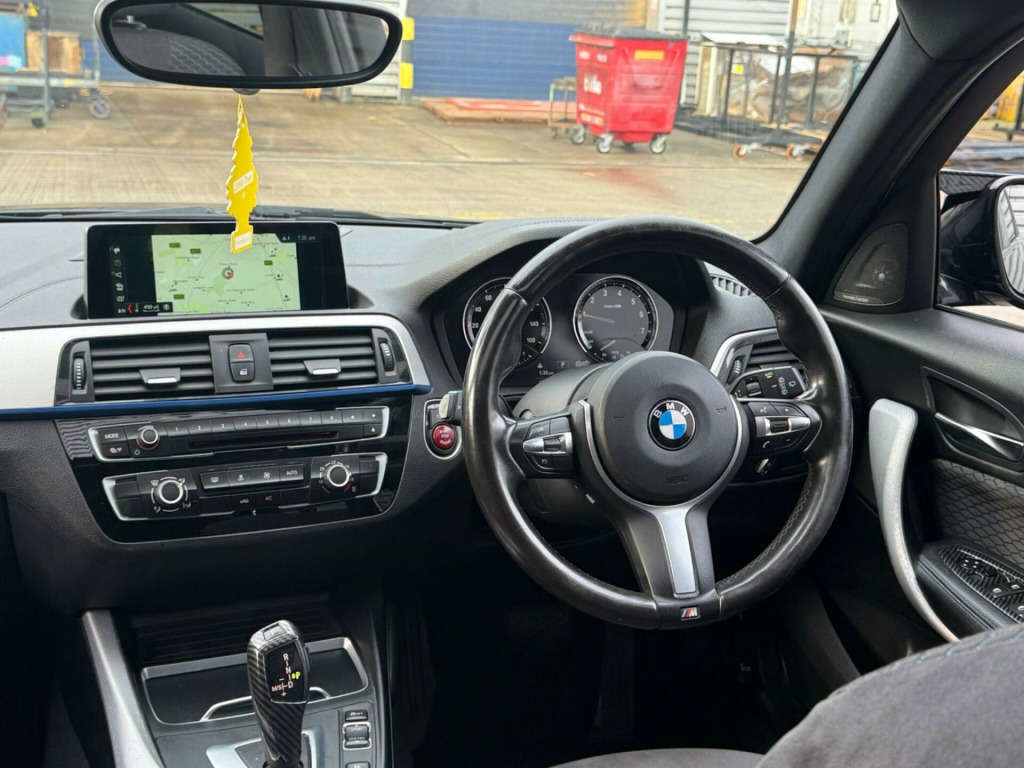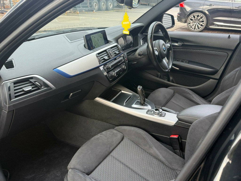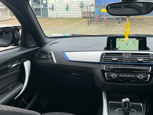 This 2017 BMW 1 Series 118i M Sport offers a superb blend of sporty design and practical features. As a Euro 6 compliant model, it features a 1.5 litre petrol engine and is presented in the desirable M Sport trim. This particular example benefits from a glass sunroof, providing an airy cabin, and comes equipped with front and rear Park Distance Control, including parking assistance sensors, to make manoeuvring easier. For your entertainment and connectivity needs, it boasts a premium Harman Kardon loudspeaker system and enhanced Bluetooth telephone preparation with USB audio interface and voice control.The BMW 1 Series 118i M Sport is designed to impress, and its highlights demonstrate its superior performance and efficiency. Achieving 0 to 62 miles per hour in just 8.7 seconds, it offers an engaging driving experience. Furthermore, its impressive fuel economy of 54 miles per gallon means fewer trips to the petrol station, making it an economical choice. The generous boot space ensures you have ample room for luggage or shopping, adding to its everyday usability. This vehicle also includes Park Assist, further enhancing its convenience. v power socket - centre console, 12v power socket - passenger footwell, 18in alloy wheels - m double spoke in ferric grey - 461m, active differential brake - adb sport - electronic differential lock in dsc-off mode, air conditioning - automatic - single zone, airbags, alarm system - thatcham 1 with remote control and engine immobiliser, ambient lighting - switchable bmw classic orange - cold white - led, armrest - front with sliding adjustment, bmw connecteddrive online services, bmw connecteddrive services, bmw emergency call, bmw navigation system, bmw professional radio - single cd and mp3, bmw teleservices, battery age recognition function, battery safety cut off, bluetooth hands free with usb audio interface, brake pad wear indicator - front and rear, bumper system front and rear - replaceable deformation elements for impacts up to 9mph, central locking switch - doors - fuel filler cap - luggage compartment, check control warning system for monitoring of lights and door-luggage compartment open warning, child proof locking system - rear doors, child seat isofix attachment for the two outer rear seats, condition based service, crash sensor - activating central locking release - hazard warning lights - battery safety cut off - interior lighting, cupholders two with sliding cover and inlay mat, dab digital radio, dsc - dynamic stability control plus, direction indicator - side repeaters - integrated in exterior mirrors, direction indicator lights - clear lenses, door sill finishers - m designation, drive performance control - eco pro - comfort - sport - sport plus modes, dynamic brake lights, eco pro mode, electric windows - front and rear with open-close fingertip control - anti-trap facility and comfort closing function, exhaust tailpipe - chrome, extended storage, exterior mirrors electrically adjustable, exterior parts in body colour, exterior trim - high gloss shadowline, first aid kit and warning triangle, floor mats - velour, glove compartment, glovebox - handle with chrome surround, grab handles - integrated in roof linings - four, handbrake and gear knob - leather, head restraints - rear and folding, headlining - anthracite, heat protection glazing with green tint, high level third brake light, incorrect fuelling protection system, instrument cluster - sports with red highlight, interior lighting - front centre over interior mirror and rear centre, interior trim - aluminium hexagon with estoril blue finisher, kidney grille - extra wide high gloss black vertical slats, led fog lights - front, led headlights, lashing eyes in luggage compartment at sill x2, lights-on warning by audio warning signal when ignition is switched off, locking wheel bolts, luggage compartment - light, luggage compartment access via bmw roundel, m aerodynamic bodystyling, m logo designation chrome - side, m sport multi-function leather steering wheel - three-spoke, m sport package, m sport suspension, model designation, multifunction controls for steering wheel, non smokers package, obc - on-board computer, oil temperature display via on-board computer shown in central screen in instrument cluster, optimum shift indicator, personal profile, power steering - electric, rain sensor with automatic headlight activation, real time traffic information, rear fog light - offside, rear seat headrests - outer headrests folding, rear window aerial, remote control including integrated key - 2, remote control with integrated key with insert in blue, reversing light in rear cluster - nearside, run flat tyres, seat belt security check for driver and front passenger, seats - 60-40 split folding rear, servotronic steering, shark fin, side armrests - front and rear integrated into door trim, side impact protection, speed limit function, sport seats - front, start-stop button with comfort go keyless engine start and auto start-stop deactivation button, steering-wheel column adjustment - manual, storage compartment - rear centre console and in door trim - front, sun visors with vanity mirrors and ticket holder, tpms - tyre pressure monitoring system, three-point seat belts - all seats, twin horns, tyres - reduced rolling resistance, visible vin, welcome lighting - led, windscreen wiper - rear, glass sunroof, loudspeaker system - harman kardon, enhanced bluetooth telephone preparation with usb audio interface and voice control, pdc - park distance control - front and rear, cruise control with brake function, sun protection glazing, park assist, hexagon cloth-alcantara - anthracite with black interior, loudspeaker system - bmw advanced, full black panel display, media package - bmw professional, apple carplay