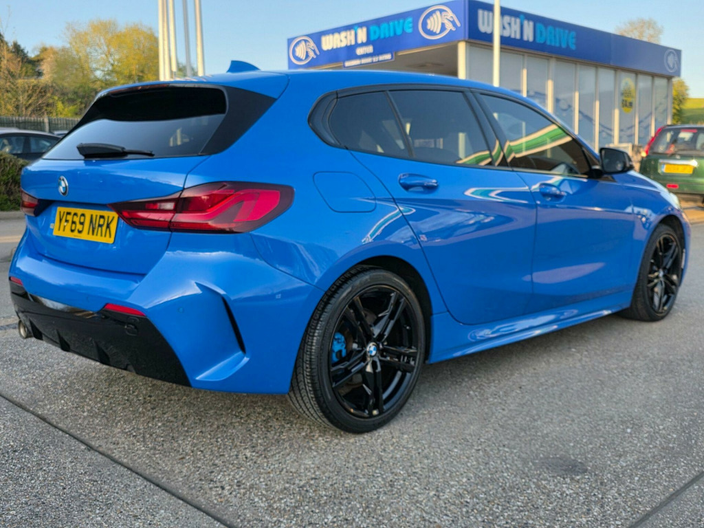 With a full service history and a clear vehicle check, this 2019 BMW 1 Series 118i M Sport is ready for its next owner. The M Sport trim adds a sporty edge to this model, which features a 1.5L petrol engine and a smooth dual-clutch automatic transmission. The car meets Euro 6 emission standards and comes with a warranty of 6 months for added peace of mind. The MOT is valid until October 2025.Inside, you'll find a comfortable cabin equipped with automatic air conditioning with two-zone control, ensuring a pleasant environment for both driver and passengers. The black perforated Dakota leather seats with grey accents add a touch of luxury. Stay connected on the move with BMW Live Cockpit Plus, including Bluetooth, and Connected Package Plus, which features Apple CarPlay. The BMW 1 Series also benefits from a large boot space, making it a practical choice. With low CO2 emissions, this vehicle is kinder to the environment than many similar cars. It also accelerates from 0-62mph in 8.5 seconds, making it quicker than other comparable vehicles.. 12V Power Socket in Centre Console Front with Blanking Plug, 18in Alloy Wheels - Double-Spoke Style 819M, Active Guard Plus, Air Conditioning Automatic with Two-Zone Control, Airbags, Alarm System - Thatcham 1 with Remote Control and Engine Immobiliser, Armrest - Front - Folding with Storage Compartment, Attentiveness Assistant, Automatically Dimming Rear View Mirror, BMW ConnectedDrive Online Services, BMW Emergency Call, BMW Live Cockpit Plus, BMW Mobility Tyre Sealing System, BMW TeleServices, Bluetooth - Audio Streaming - with Compatible Devices, Bluetooth Hands Free with USB Audio Interface, Bumper System Front and Rear - Replaceable Deformation Elements for Impacts Up to 9mph, Central Locking Switch - Doors - Fuel Filler Cap - Luggage Compartment, Check Control Warning System for Monitoring of Lights and Door-Luggage Compartment Open Warning, Child Seat ISOFIX Attachment For The Two Outer Rear Seats And Front Passenger Seat, Childproof Locking System - Rear Doors and Electric Windows, Condition Based Service, Connected Package Plus, Contrast Stitching - Instrument Panel, Crash Sensor, Cruise Control with Brake Function, Cupholders - Two Front Centre Console, DAB Digital Radio, DSC - Dynamic Stability Control Plus, Dead-locking Function System to all Doors, Direction Indicator Side Lights Integrated in Exterior Mirrors, Door Sill Finishers in Black Plastic with Inserted M Designation in Metallic Look - Front Only, Drive Performance Control with ECO PRO and Comfort Modes, Drive-Away Locking System on All Doors-Luggage Compartment - Can Be De-Activated in iDrive Settings, Dual-clutch Automatic Transmission, ECO PRO Mode, EPS - Electric Power Steering, Electric Handbrake, Electric Windows - Front and Rear with Open-Close Fingertip Control - Trap Release and Child Lock Function, Exhaust Tailpipe - Chrome - Single Round 90mm - Left, Extended Lighting, Extended Storage, Exterior Mirrors - Electrically Folding with Anti Dazzle, Exterior Parts in Body Colour, Exterior Trim - High Gloss Shadowline, First Aid Kit and Warning Triangle, Floor Mats in Anthracite Velour with Contrasting Colour Seam to Match Contrast Stitching on Instrument panel, Front Windscreen Wipers with Integrated Washer Jets, Glove Box with Light, Grab Handles - Integrated in Roof Linings - Four, Headlining - Anthracite, Heat Protection Glazing with Green Tint, High Level Third Brake Light, Illuminated Boston Interior Trim, Integrated Owners Handbook - Within iDrive Menu, Interior Lighting, Kidney Grille - Chrome Frame with Satin Aluminium Struts, LED Fog Lights - Front, LED Headlights, Locking Wheel Bolts, Luggage Compartment Package, M Logo Designation Chrome - Side, M Sport Aerodynamic Package, M Sport Steering Wheel, M Sport Suspension, Model Designation on Tailgate, Multifunction Controls for Steering Wheel, OBC - On-Board Computer, Optimum Shift Indicator, PDC - Park Distance Control - Front and Rear, Performance Control, Personal Profile, Rain Sensor with Automatic Headlight Activation, Rear Fog Light, Rear Seat Backrest with Manual 60-40 Split Folding with 3 Top Tether Clips Integrated on Rear of Seat Panels, Rear Seat Headrests - Three, Remote Control Key x2, Reversing Light in Rear Light Clusters, Seat Belt Security Check for Driver and Front Passenger, Seat Belt Warning if Driver Starts Ignition without Putting on Seatbelt, Seat Heating for Driver and Front Passenger, Servotronic Steering, Shark Fin, Side Armrests - Front and Rear Integrated into Door Trim, Side Impact Protection, Sport Seats - Front, Start-Stop Button - Illuminated in Centre Console with Keyless Engine Start and Auto Start-Stop Deactivation Button, Steering Column with Manual Reach and Rake Adjustment, Stereo Speaker System, Storage Features, Sun Visors with Vanity Mirrors and Insert Tab, Suspension, TPMS - Tyre Pressure Monitoring System, Three-Point Seat Belts - All Seats, Twin Horns, Tyres - Reduced Rolling Resistance, Visible VIN, Welcome Light, Windscreen Wiper - Rear, Sun Protec. Full service history