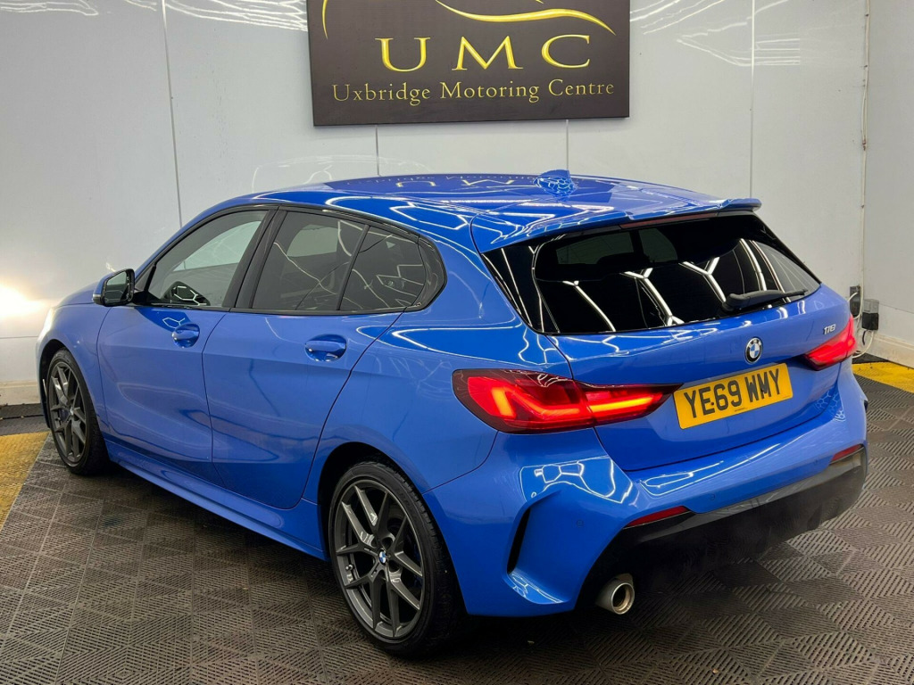 This 2019 BMW 1 Series 118i M Sport offers exceptionally low mileage for its age, having covered just 37,000 miles. This Euro 6 compliant model boasts a 1.5 litre petrol engine paired with a smooth dual clutch automatic transmission, making for an engaging driving experience. Inside, you'll find the striking Perforated Dakota Leather in Black with a Blue Highlight, complemented by the M Sport trim and the M Sport Plus Pack. Connectivity is enhanced with Enhanced Bluetooth featuring wireless charging, alongside a Bluetooth hands free system with a USB audio interface.The BMW 118i M Sport stands out with its impressive acceleration, reaching 0 to 62mph in just 8.5 seconds, demonstrating its spirited performance. Its low CO2 emissions indicate a more environmentally conscious choice compared to many similar vehicles. Furthermore, the generous boot space provides practicality for everyday needs and longer journeys, setting it apart for those who require versatility.To add to your peace of mind, we offer a 3-month warranty, 12 months of AA Breakdown Cover, and a minimum 6 months of both MOT and service. Your satisfaction and the longevity of your investment are our top priorities.Explore financing options by contacting us at 07405357469. The financing package includes a 12-month AA Breakdown Cover, and while a minimum 6 months MOT is provided (though not applicable to all vehicles), please be aware that an admin charge may apply.Our commitment to customer satisfaction extends to flexible viewing hours until late, allowing you ample time to inspect and appreciate this vehicle. Additionally, we provide warranty and delivery options to cater to your preferences. If you have a vehicle for exchange, we are open to considering it.To ensure transparency and clarity, we encourage customers to verify the car's specifications, advert description, and mileage with our salesperson before finalizing the purchase. This ensures that your experience exceeds expectations, making it a truly enjoyable and worry-free journey. v power socket in centre console front with blanking plug, 18in alloy wheels - double-spoke style 819m, active guard plus, air conditioning automatic with two-zone control, airbags, alarm system - thatcham 1 with remote control and engine immobiliser, armrest - front - folding with storage compartment, attentiveness assistant, automatically dimming rear view mirror, bmw connecteddrive online services, bmw emergency call, bmw live cockpit plus, bmw mobility tyre sealing system, bmw teleservices, bluetooth - audio streaming - with compatible devices, bluetooth hands free with usb audio interface, bumper system front and rear - replaceable deformation elements for impacts up to 9mph, central locking switch - doors - fuel filler cap - luggage compartment, check control warning system for monitoring of lights and door-luggage compartment open warning, child seat isofix attachment for the two outer rear seats and front passenger seat, childproof locking system - rear doors and electric windows, condition based service, connected package plus, contrast stitching - instrument panel, crash sensor, cruise control with brake function, cupholders - two front centre console, dab digital radio, dsc - dynamic stability control plus, dead-locking function system to all doors, direction indicator side lights integrated in exterior mirrors, door sill finishers in black plastic with inserted m designation in metallic look - front only, drive performance control with eco pro and comfort modes, drive-away locking system on all doors-luggage compartment - can be de-activated in idrive settings, dual-clutch automatic transmission, eco pro mode, eps - electric power steering, electric handbrake, electric windows - front and rear with open-close fingertip control - trap release and child lock function, exhaust tailpipe - chrome - single round 90mm - left, extended lighting, extended storage, exterior mirrors - electrically folding with anti dazzle, exterior parts in body colour, exterior trim - high gloss shadowline, first aid kit and warning triangle, floor mats in anthracite velour with contrasting colour seam to match contrast stitching on instrument panel, front windscreen wipers with integrated washer jets, glove box with light, grab handles - integrated in roof linings - four, headlining - anthracite, heat protection glazing with green tint, high level third brake light, illuminated boston interior trim, integrated owners handbook - within idrive menu, interior lighting, kidney grille - chrome frame with satin aluminium struts, led fog lights - front, led headlights, locking wheel bolts, luggage compartment package, m logo designation chrome - side, m sport aerodynamic package, m sport package, m sport steering wheel, m sport suspension, model designation on tailgate, multifunction controls for steering wheel, obc - on-board computer, optimum shift indicator, pdc - park distance control - front and rear, performance control, personal profile, rain sensor with automatic headlight activation, rear fog light, rear seat backrest with manual 60-40 split folding with 3 top tether clips integrated on rear of seat panels, rear seat headrests - three, remote control key x2, reversing light in rear light clusters, seat belt security check for driver and front passenger, seat belt warning if driver starts ignition without putting on seatbelt, seat heating for driver and front passenger, servotronic steering, shark fin, side armrests - front and rear integrated into door trim, side impact protection, sport seats - front, start-stop button - illuminated in centre console with keyless engine start and auto start-stop deactivation button, steering column with manual reach and rake adjustment, stereo speaker system, storage features, sun visors with vanity mirrors and insert tab, suspension, tpms - tyre pressure monitoring system, three-point seat belts - all seats, twin horns, tyres - reduced rolling resistance, visible vin