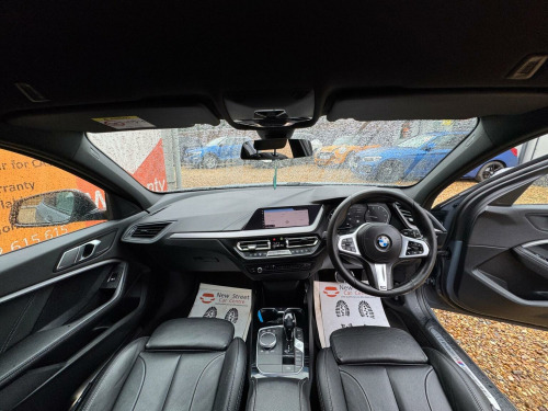 This 2019 BMW 1 Series 118i M Sport is presented with a clear vehicle history check, offering peace of mind for its next owner. This stylish hatchback features a 1.5 litre petrol engine and a Euro 6 emission class, making it a responsible choice. Inside, youll find the M Sport trim, complete with perforated Dakota leather upholstery in black with a grey highlight, and a Bluetooth hands free system that includes USB audio interface and audio streaming. For convenience, it also boasts PDC park distance control for both the front and rear, including front sensors. The BMW 118i M Sport offers a compelling blend of performance and practicality. Its dual-clutch automatic transmission ensures smooth gear changes, contributing to an impressive 0-62mph acceleration time of just 8.5 seconds. This model also benefits from low CO2 emissions, indicating its efficiency compared to other vehicles in its class. Furthermore, the generous boot space provides ample room for luggage or shopping, making it a versatile option for everyday use. We are proud to present this BMW 1 Series 1.5 118i M Sport DCT Euro 6 (s/s) 5d that comes with a service history for added peace of mind. It comes with 2 owner and has just been serviced. 12 months MOT included, You have the option to purchase RAC warranty with the option to extend.At New Street Car Centre we have over 25 years experience as the largest and most trusted used car dealership in Telford. We offer award winning customer service, great prices and excellent preparation standards. Each vehicle undergoes quality control inspections and a complimentary history check for your added peace of mind.we have also included additional specification but please always check the exact specification details with ourselves prior to purchase as models can vary