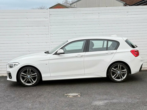 This 2018 BMW 1 Series 118i M Sport Automatic is a superb example that looks fantastic in Alpine White and offers an excellent balance of performance, comfort and premium build quality. Powered by the refined 1.5 petrol engine producing 136 ps and paired with a smooth automatic gearbox, it drives superbly and is a pleasure both around town and on the motorway. The car benefits from a full service history and has clearly been well looked after, remaining lovely and clean inside and out. Specification is strong, featuring black Dakota leather upholstery with contrast blue stitching, 18 inch M Sport alloy wheels, LED headlights, rain and light sensors, and the M Sport multifunction steering wheel. Inside, it is equipped with the BMW Business Navigation system, DAB radio, ConnectedDrive services, real-time traffic information, Bluetooth hands-free with USB interface, and a front retractable armrest for added comfort. Practical touches include folding rear seat headrests and ISOFIX child seat mounting points, making it a great all-round hatchback. A stylish, well-specified and well-maintained BMW that drives exactly as it should and represents excellent value. Any inspection welcome. 12V Power Socket - Centre Console, 12V Power Socket - Passenger Footwell, 18in Alloy Wheels - M Double Spoke in Fe, Active Differential Brake - ADB Sport - , Air Conditioning - Automatic - Single Zo, Airbags, Alarm System - Thatcham 1 with Remote Co, Ambient Lighting - Switchable BMW Classi, Armrest - Front with Sliding Adjustment, BMW ConnectedDrive Online Services, BMW ConnectedDrive Services, BMW Emergency Call, BMW Navigation System, BMW Professional Radio - Single CD and M, BMW TeleServices, Battery Age Recognition Function, Battery Safety Cut Off, Bluetooth Hands Free with USB Audio Inte, Brake Pad Wear Indicator - Front and Rea, Bumper System Front and Rear - Replaceab, Central Lockin