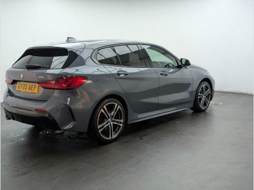 18" alloys, M Sport package, Cruise control, Heated front seats and Park distance control - front and rear. 2 services - last service done at 45192 miles on 06/03/2025. This 2020 BMW 1 Series 118i M Sport offers excellent peace of mind with its MOT valid until April 2026. This stylish hatchback is equipped with a responsive 1.5L petrol engine and meets Euro 6 emissions standards. Inside, you'll find a premium feel with Perforated Dakota Leather upholstery in Black with Grey Highlight, complemented by M Sport trim. For your comfort and convenience, it features dual-zone automatic air conditioning, heated seats for the driver and front passenger, and cruise control with brake function, including adaptive cruise control for effortless journeys. Experience impressive performance with a 0-60mph acceleration time of just 8.5 seconds, showcasing its dynamic capabilities. This BMW 1 Series also boasts low CO2 emissions, making it an environmentally conscious choice. Furthermore, the generous boot space ensures practicality for everyday use and longer trips, highlighting its versatility compared to other vehicles in its class. 12V Power Socket in Centre Console Front, 18in Alloy Wheels - Double-Spoke Style 8, Active Guard Plus, Air Conditioning Automatic with Two-Zone, Airbags, Alarm System - Thatcham 1 with Remote Co, Armrest - Front - Folding with Storage C, Attentiveness Assistant, Automatically Dimming Rear View Mirror, Bluetooth - Audio Streaming - with Compa, Bluetooth Hands Free with USB Audio Inte, BMW ConnectedDrive Online Services, BMW Emergency Call, BMW Live Cockpit Plus, BMW Mobility Tyre Sealing System, BMW TeleServices, Bumper System Front and Rear - Replaceab, Central Locking Switch - Doors - Fuel Fi, Check Control Warning System for Monitor, Child Seat ISOFIX Attachment For The Two, Childproof Loc