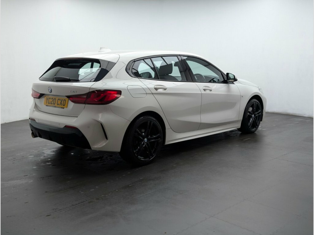 Stunning BMW 1 Series in white with Bluetooth - Cruise Control - Rain Sensor Windscreen Wiper - DAB Radio This 2020 BMW 1 Series 118i M Sport presents with exceptionally low mileage for its age, having covered just 37,600 miles. This Euro 6 compliant model boasts a responsive 1.5 litre petrol engine paired with a smooth dual-clutch automatic transmission, ensuring an engaging driving experience. The M Sport trim enhances its sporty appeal, while the interior features striking perforated Dakota leather in black with a grey highlight. For convenience and safety, it includes a rain sensor with automatic headlight activation, cruise control with brake function and adaptive capabilities, and front and rear park distance control with front parking assistance. The M Sport variant offers a compelling blend of performance and practicality, highlighted by its brisk 0-60mph acceleration in just 8.5 seconds, demonstrating its agility. This vehicle also provides generous boot space, making it a versatile choice for everyday use and longer journeys. With its MOT valid until April 2026, this BMW 1 Series is well prepared for its next owner, offering a refined and dynamic driving proposition that stands out from other vehicles in its class. 12V Power Socket in Centre Console Front, 18in Alloy Wheels - Double-Spoke Style 8, Active Guard Plus, Air Conditioning Automatic with Two-Zone, Airbags, Alarm System - Thatcham 1 with Remote Co, Alpine White, Armrest - Front - Folding with Storage C, Attentiveness Assistant, Automatically Dimming Rear View Mirror, Bluetooth - Audio Streaming - with Compa, Bluetooth Hands Free with USB Audio Inte, BMW ConnectedDrive Online Services, BMW Emergency Call, BMW Live Cockpit Plus, BMW Mobility Tyre Sealing System, BMW TeleServices, Bumper System Front and Rear - Replaceab, Central Locking Switch - Doors - Fuel Fi, Check Control Warning System for Monitor, Child Seat ISOFIX Attachment For The Two,