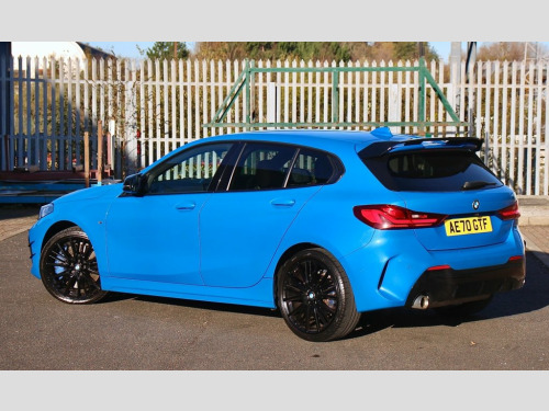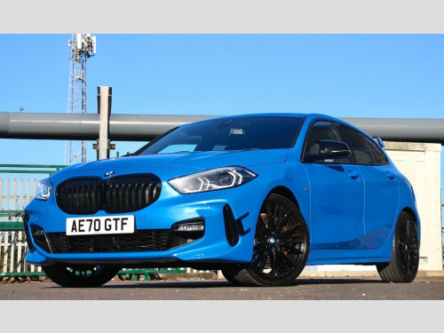 ** FINANCE / PCP FROM JUST 8.9% APR -- OVER 6K OF FACTORY OPTIONS -- HEAD UP DISPLAY ( HUD ) -- REVERSE CAMERA -- TECHNOLOGY PACK -- FULL M-PERFORMANCE STYLING KIT -- 19" ALLOYS -- FULL BLACK LEATHER -- M-SPORT PRO PACKAGE **.... WE WANT YOUR PART EXCHANGE.... UK HOME DELIVERY TO YOUR FRONT DOOR.... TRY FIND ANOTHER 118i M-SPORT LIKE THIS ONE !! Finished In Arguably The Best Colour And Now Covered Just 23000 Guaranteed Miles Complimented With A FULL BMW SERVICE HISTORY, 2 Keys And Handbooks and 12 Months M.O.T Included. ** HPi CLEAR -- LOW RATE FINANCE / PCP ARRANGED by OUR EXPERTS **... Striking Looks With Huge Kerb Appeal In ' MISANO BLUE ' Metallic with Upgraded 19 inch 552 ALLOYS Unmarked In High Gloss Black... ' M PERFORMANCE ' ROOF SPOILER.... AERO FLICKS.... M2 COMPETITION MIRROR COVERS.... BLACK GRILLE & PRIVACY GLASS.... Full M Aerodynamics Body Styling And M-SPORT Suspension & Braking System.... The Interior Gets Upgraded Body Hugging Full Black ' DAKOTA ' Leather Sports Seats with Tri-Colour 'M' Seat Belts... A Combination Of Aluminium And Piano Black Dash Inlays... UBER COOL !! Comes With A Massive Spec Including.... TECH PACK ( £1500 ) Including.... ADAPTIVE LED HEAD LIGHTS.... HEAD UP DISPLAY ( HUD )... Enhanced Bluetooth With WIRELESS CHARGER.... REVERSE CAMERA Plus Parking Sensors Front & Rear... Voice Command.... Premium Sound DAB With USB / Audio Interface... Power Fold Mirrors... Leather Mul 19in Alloy Wheels - M Double-Spoke Style, BMW Adaptive LED Headlights, BMW Live Cockpit Professional, Enhanced Bluetooth with Wireless Chargin, Head-Up Display, M Sport Plus Pack, Misano Blue, Park Assistant, Sun Protection Glazing, Tech Pack I, Tech Pack II