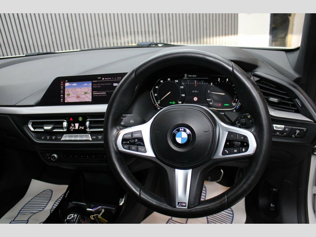 This 2020 BMW 1 Series 118i M Sport presents an exceptional opportunity with its remarkably low mileage of just 22,702 miles. As a Euro 6 compliant model, it features a responsive 1.5 litre petrol engine, delivering an engaging 0-60mph time of 8.5 seconds. The M Sport trim enhances its sporty appeal, while the interior boasts Perforated Dakota Leather in Black with a striking Blue Highlight. Practicality is also a strong point, with ample boot space for all your needs. Further enhancing your driving experience are the advanced LED headlights, providing excellent visibility. Stay connected and entertained with the Bluetooth Hands Free system, complete with a USB audio interface. Comfort is assured thanks to the automatic two zone climate control, allowing you to set individual temperatures. Maneuvering in tight spaces is made easier with the front and rear Park Distance Control sensors. These features collectively demonstrate the superior specification of this particular BMW 1 Series M Sport. 12V Power Socket in Centre Console Front, 18in Alloy Wheels - Double-Spoke Style 8, Active Guard Plus, Air Conditioning Automatic with Two-Zone, Airbags, Alarm System - Thatcham 1 with Remote Co, Armrest - Front - Folding with Storage C, Attentiveness Assistant, Automatically Dimming Rear View Mirror, BMW Connected Package Professional, BMW ConnectedDrive Online Services, BMW Emergency Call, BMW Live Cockpit Plus, BMW Mobility Tyre Sealing System, BMW TeleServices, Bluetooth - Audio Streaming - with Compa, Bluetooth Hands Free with USB Audio Inte, Bumper System Front and Rear - Replaceab, Central Locking Switch - Doors - Fuel Fi, Check Control Warning System for Monitor, Child Seat ISOFIX At