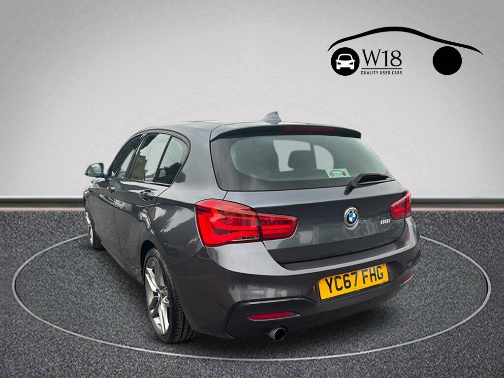 This 2017 BMW 1 Series 118i M Sport boasts an exceptionally low mileage of just 45,972 miles for its age, complemented by a full service history (@7,107, @12,548, @29,035, @36,617, @40,752, @45,919) and a clear vehicle history check. This Euro 6 compliant model features a responsive 1.5L petrol engine and is presented in the desirable M Sport trim. For your peace of mind, it comes with a 6 month warranty and an MOT valid until August 2026. The M Sport variant offers a dynamic driving experience, with the 118i capable of accelerating from 0 to 62mph in a brisk 8.5 seconds. This model is well equipped with notable features including LED headlights, automatic air conditioning, and enhanced Bluetooth telephone preparation with USB audio interface and voice control, allowing for seamless connectivity. The inclusion of a rain sensor with automatic headlight activation adds to the convenience. Furthermore, this BMW 1 Series provides generous boot space, making it a practical choice for everyday use and longer journeys, indicating its superior versatility compared to similar vehicles. 12V Power Socket - Centre Console, 12V Power Socket - Passenger Footwell, 18in Alloy Wheels - M Double Spoke in Fe, Active Differential Brake - ADB Sport - , Air Conditioning - Automatic - Single Zo, Airbags, Alarm System - Thatcham 1 with Remote Co, Ambient Lighting - Switchable BMW Classi, Armrest - Front with Sliding Adjustment, BMW ConnectedDrive Online Services, BMW ConnectedDrive Services, BMW Emergency Call, BMW Navigation System, BMW Professional Radio - Single CD and M, BMW TeleServices, Battery Age Recognition Function, Battery Safety Cut Off, Bluetooth Hands Free with USB Audio Inte, Brake Pad Wear Indicator - Front and Rea, Bumper System Front and Rear - Replaceab, Central Lockin
