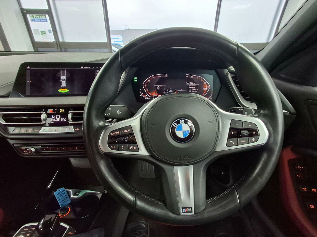 ***Very Rare Coral Red Leather***Vat Qualifying***1 Owner***18 Alloys***6 Months Warranty***12 Months MOT***This 2021 BMW 1 Series 118i M Sport (LCP) presents an exceptional ownership proposition, boasting very low mileage of just 17845 miles from a single owner. This Euro 6 compliant model features a responsive 1.5L petrol engine and is finished in the sporty M Sport trim. Inside, youll find the striking Perforated Dakota Leather upholstery in Magma Red with Grey Highlight, complemented by Bluetooth Hands Free with USB Audio Interface for seamless connectivity. Practicality is enhanced with a Rain Sensor that automatically activates the headlights and Park Distance Control for both the front and rear, making parking effortless. Experience a refined driving experience with Cruise Control featuring Brake Function and Speed Limiter, which also includes Adaptive Cruise Control for added convenience on longer journeys. The generous boot space offers ample room for your luggage or shopping, a key advantage for everyday usability. Furthermore, the impressive acceleration of 0-62mph in just 8.8 seconds demonstrates the dynamic performance this BMW 1 Series delivers, setting it apart from other vehicles in its class.