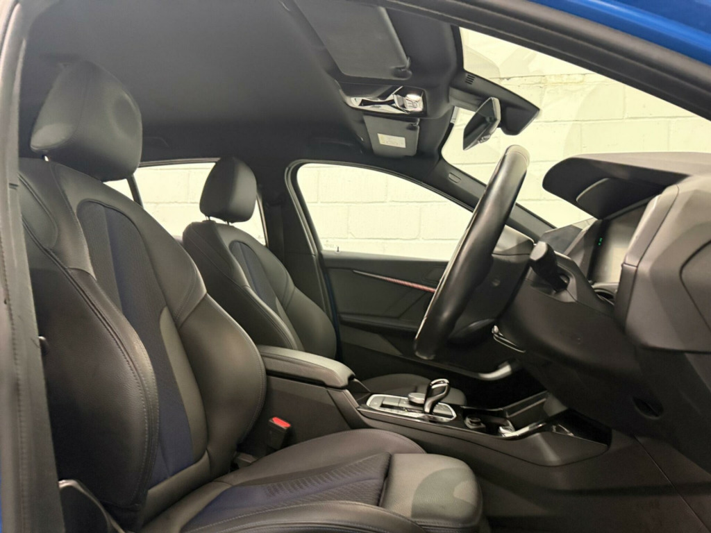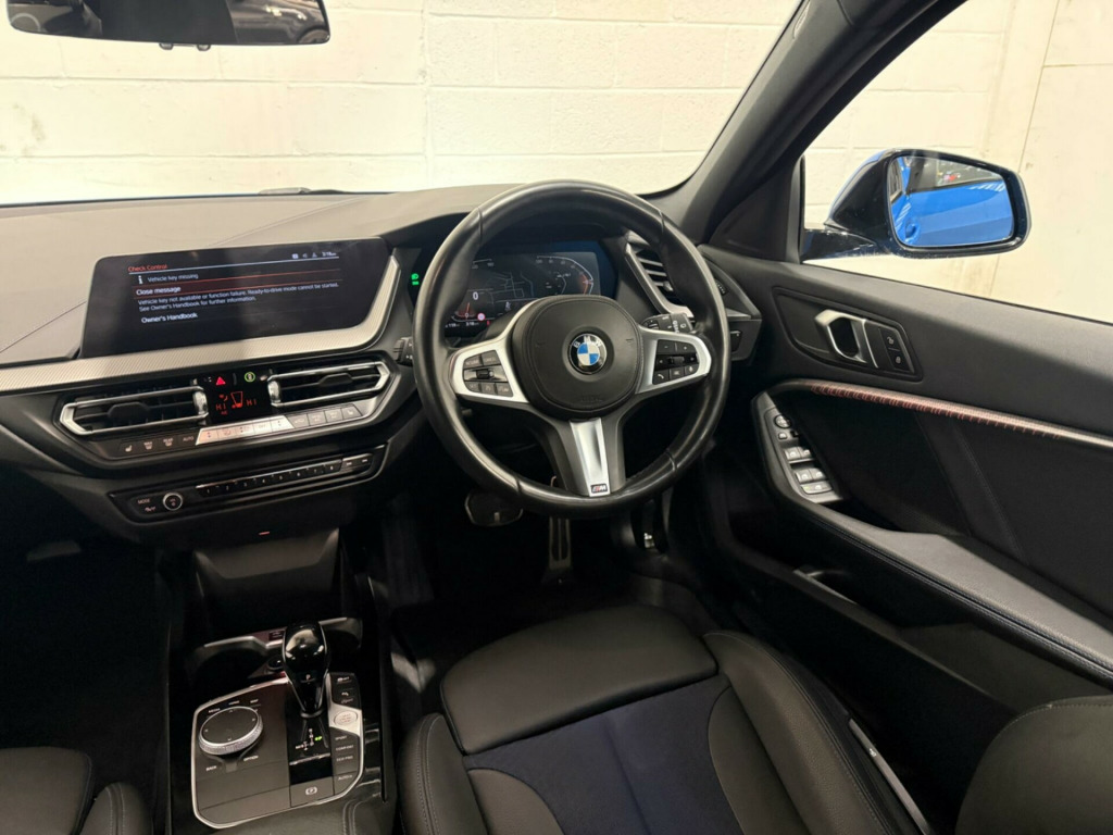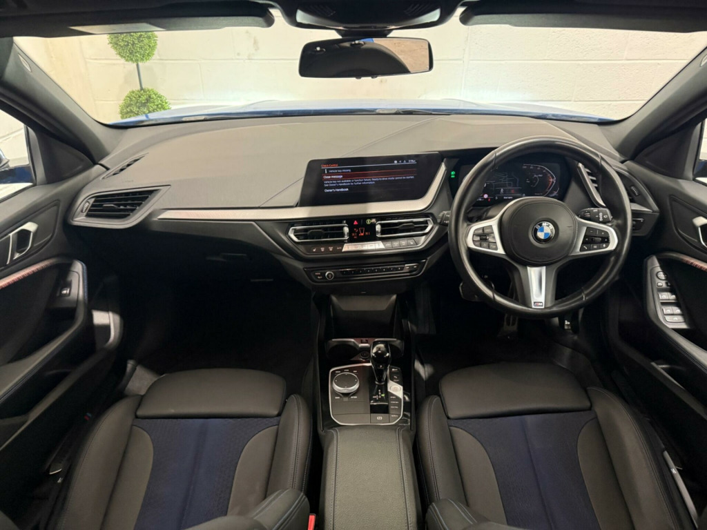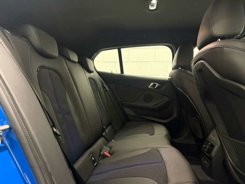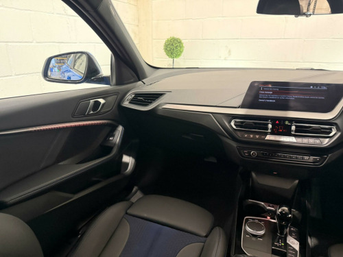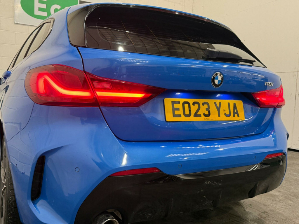 This 2023 BMW 1 Series 118i M Sport (LCP) presents an exceptional opportunity with its remarkably low mileage of just 8181 miles, a testament to its careful single ownership. This Euro 6 compliant model boasts a responsive 1.5L petrol engine, delivering an engaging 0-62mph in a swift 8.8 seconds. Inside, you'll find the advanced BMW Live Cockpit Professional with Bluetooth connectivity, ensuring seamless integration of your devices. Comfort is paramount, with seat heating for both the driver and front passenger, and automatic two zone climate control to maintain your ideal temperature.Navigating tight spaces is made effortless thanks to the Park Distance Control for both the front and rear, complemented by adaptive cruise control with a brake function and speed limiter for relaxed journeys. The M Sport trim enhances the driving experience, and you'll appreciate the generous boot space, offering practicality for all your needs. These features collectively demonstrate how this BMW 1 Series offers a superior driving and ownership experience compared to other vehicles in its class. igon cloth-sensatec - black with blue stitching, 12v power socket in centre console front with blanking plug, 18in alloy wheels - m double-spoke style 819 - bi-colour, active guard plus, air conditioning automatic with two-zone control, airbags, alarm system - thatcham 1 with remote control and engine immobiliser, armrest - front centre, attentiveness assistant, automatically dimming rear view mirror, bmw connected package professional, bmw connecteddrive online services, bmw emergency call, bmw live cockpit professional, bmw mobility tyre sealing system, bmw teleservices, bluetooth - audio streaming - with compatible devices, bluetooth hands free with usb audio interface, bumper system front and rear - replaceable deformation elements for impacts up to 9mph, central locking switch - doors - fuel filler cap - luggage compartment, check control warning system for monitoring of lights and door-luggage compartment open warning, child seat isofix attachment for the two outer rear seats and front passenger seat, childproof locking system - rear doors and electric windows, crash sensor, cruise control with brake function and speed limiter, cupholders - two front centre console, dab digital radio, dsc - dynamic stability control plus, dead-locking function system to all doors, direction indicator side lights integrated in exterior mirrors, door sill finishers in black plastic with inserted m designation in metallic look - front only, drive performance control with eco pro and comfort modes, drive-away locking system on all doors-luggage compartment - can be de-activated in idrive settings, eco pro mode, eps - electric power steering, electric handbrake, electric windows - front and rear with open-close fingertip control - trap release and child lock function, exhaust tailpipe - chrome - single round 90mm - left, extended lighting, extended storage, exterior mirrors - electrically folding with anti dazzle, exterior parts in body colour, exterior trim - high gloss shadowline, first aid kit and warning triangle, floor mats - velour, front windscreen wipers with integrated washer jets, glove box with light, grab handles - integrated in roof linings - four, headlining - anthracite, heat protection glazing with green tint, high level third brake light, illuminated boston interior trim, integrated owners handbook - within idrive menu, interior lighting, kidney grille - chrome frame with satin aluminium struts, led fog lights - front, led headlights, locking wheel bolts, luggage compartment package, m logo designation chrome - side, m sport aerodynamic package, m sport package, m sport steering wheel, m sport suspension, model designation on electric bootlid, multifunction controls for steering wheel, obc - on-board computer, oil sensor for level and grade, optimum shift indicator, pdc - park distance control - front and rear, performance control, personal profile, preparation for high-beam assistant, rain sensor with automatic headlight activation, rear fog light, rear seat backrest with manual 60-40 split folding with 3 top tether clips integrated on rear of seat panels, rear seat headrests - three, rear window wiper, remote control key x2, reversing light in rear light clusters, seat belt security check for driver and front passenger, seat belt warning if driver starts ignition without putting on seatbelt, seat heating for driver and front passenger, servotronic steering, shark fin, side armrests - front and rear integrated into door trim, side impact protection, sport seats - front, start-stop button - illuminated in centre console with keyless engine start and auto start-stop deactivation button, steering column with manual reach and rake adjustment, stereo speaker system, storage features, sun visors with vanity mirrors and insert tab, tpms - tyre pressure monitoring system, three-point seat belts - all seats, two tone horn, tyres - reduced rolling resistance, visible vin, welcome light