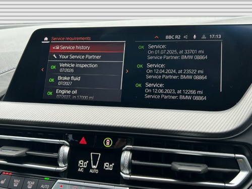 This 2022 BMW 1 Series 118i M Sport (LCP) boasts a full dealership service history and has had only one owner from new. This Euro 6 compliant model features a 1.5 litre petrol engine and comes with a 12 month MOT provided on purchase, ensuring peace of mind. The M Sport trim enhances its appeal, and it includes a suite of advanced features such as Park Assistant with a rear camera, Rain Sensor with automatic headlight activation, and Bluetooth for audio streaming. Experience effortless driving with the BMW 1 Series 118i M Sport's impressive acceleration, reaching 0-60mph in just 8.9 seconds. This performance, combined with features like Park Distance Control for both front and rear, and Cruise Control with Brake Function and Speed Limiter, demonstrates a superior level of convenience and driver assistance compared to other vehicles in its class. Trigon Cloth-Sensatec - Black with Blue , Misano Blue, 18in Alloy Wheels - M V-Spoke Style 554M, 12V Power Socket in Centre Console Front, 18in Alloy Wheels - M Double-Spoke Style, Active Guard Plus, Air Conditioning Automatic with Two-Zone, Airbags, Alarm System - Thatcham 1 with Remote Co, Armrest - Front Centre, Attentiveness Assistant, Automatically Dimming Rear View Mirror, BMW Connected Package Professional, BMW ConnectedDrive Online Services, BMW Emergency Call, BMW Live Cockpit Professional, BMW Mobility Tyre Sealing System, BMW TeleServices, Bluetooth - Audio Streaming - with Compa, Bluetooth Hands Free with USB Audio Inte, Bumper System Front and Rear - Replaceab, Central Locking S