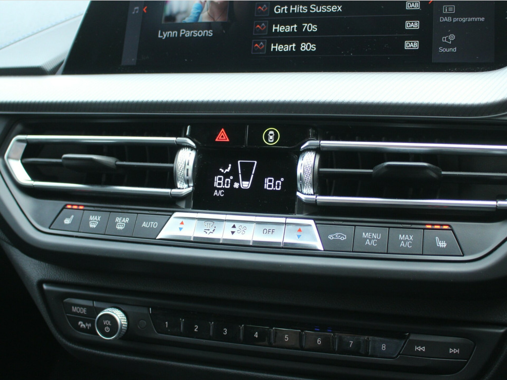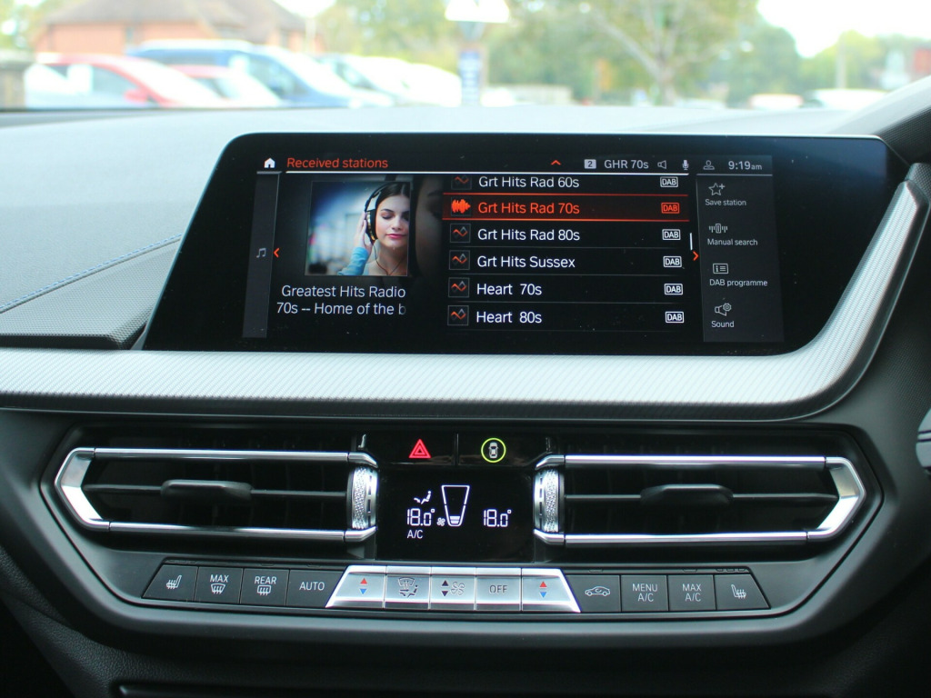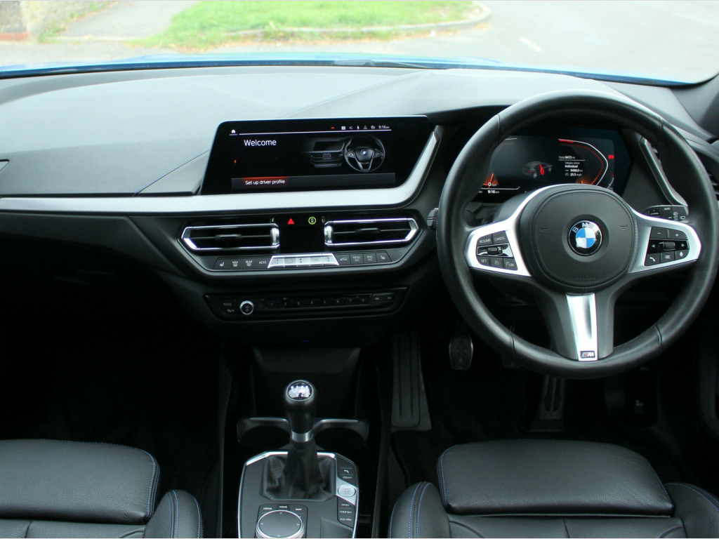 This 2021 BMW 1 Series 1.5 118i M Sport (LCP) Hatchback with only 9450 miles on the clock is a stylish and efficient petrol vehicle that boasts a spacious 5-seater, 5-door design perfect for any driver. With an MOT that expires on 23/07/2026 and being ULEZ compliant, this hatchback is not only reliable but also environmentally friendly. The stunning Misano Blue exterior is complemented by the luxurious Perforated Dakota Leather interior in Black with Blue Highlight. Equipped with features such as a 12V Power Socket in Centre Console Front with Blanking Plug and BMW Connected Package Professional, as well as BMW ConnectedDrive Online Services, this vehicle provides both convenience and connectivity for a seamless driving experience. Whether it's for city commuting or long road trips, this BMW 1 Series offers the perfect combination of comfort, style, and performance., OPEN 7 DAYS A WEEK - A SELECTION OF UP TO 200 CARS AND VANS AVAILABLE. Click on dealer 'VISIT WEBSITE' link for many more large photographs of this car. We are a West Sussex Trading Standards Approved 'Buy with Confidence Dealership'. v power socket in centre console front with blanking plug, bmw connected package professional, bmw connecteddrive online services, bmw emergency call, bmw teleservices, bluetooth - audio streaming - with compatible devices, bluetooth hands free with usb audio interface, dab digital radio, shark fin, stereo speaker system, 18in alloy wheels - m double-spoke style 819 - bi-colour, bmw mobility tyre sealing system, direction indicator side lights integrated in exterior mirrors, electric windows - front and rear with open-close fingertip control - trap release and child lock function, exhaust tailpipe - chrome - single round 90mm - left, exterior mirrors - electrically folding with anti dazzle, exterior parts in body colour, exterior trim - high gloss shadowline, heat protection glazing with green tint, kidney grille - chrome frame with satin aluminium struts, locking wheel bolts, m logo designation chrome - side, m sport aerodynamic package, m sport package, model designation on electric bootlid, preparation for high-beam assistant, reversing light in rear light clusters, tyres - reduced rolling resistance, active guard plus, airbags, alarm system - thatcham 1 with remote control and engine immobiliser, bumper system front and rear - replaceable deformation elements for impacts up to 9mph, child seat isofix attachment for the two outer rear seats and front passenger seat, childproof locking system - rear doors and electric windows, crash sensor, dsc - dynamic stability control plus, dead-locking function system to all doors, drive-away locking system on all doors-luggage compartment - can be de-activated in idrive settings, electric handbrake, first aid kit and warning triangle, rear window wiper, remote control key x2, seat belt security check for driver and front passenger, seat belt warning if driver starts ignition without putting on seatbelt, side impact protection, three-point seat belts - all seats, visible vin, additional storage compartment, air conditioning automatic with two-zone control, armrest - front - folding with storage compartment, automatically dimming rear view mirror, bmw live cockpit professional, central locking switch - doors - fuel filler cap - luggage compartment, contrast stitching - instrument panel, cupholders - two front centre console, door sill finishers in black plastic with inserted m designation in metallic look - front only, extended lighting, floor mats in anthracite velour with contrasting colour seam to match contrast stitching on instrument panel, front windscreen wipers with integrated washer jets, gearshift lever with m designation - short-shift, glove box with light, grab handles - integrated in roof linings - four, headlining - anthracite, illuminated boston interior trim, interior lighting, luggage compartment package, m sport steering wheel, multifunction controls for steering wheel, personal profile, rain sensor with automatic headlight activation, rear fog light, rear seat backrest with manual 60-40 split folding with 3 top tether clips integrated on rear of seat panels, rear seat headrests - three, seat heating for driver and front passenger, side armrests - front and rear integrated into door trim, sport seats - front, start-stop button - illuminated in centre console with keyless engine start and auto start-stop deactivation button, steering column with manual reach and rake adjustment, storage features, sun visors with vanity mirrors and insert tab, two tone horn, welcome light, attentiveness assistant, cruise control with brake function and speed limiter, drive performance control with eco pro and comfort modes, eco pro mode, eps - electric power steering, integrated owners handbook - within idrive menu, m sport suspension, obc - on-board computer, oil sensor for level and grade, optimum shift indicator, pdc - park distance control - front and rear, performance control, servotronic steering, tpms - tyre pressure monitoring system, check control warning system for monitoring of lights and door-luggage compartment open warning, high level third brake light, led fog lights - front, led headlights