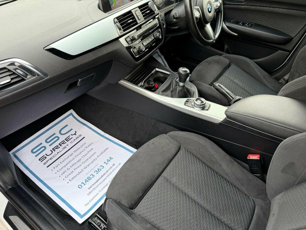 Surrey Specialist Cars are proud to present our lovely BMW 1 Series 1.5 118I M Sport Shadow Edition 5dr. This sleek and stylish vehicle is finished in a striking Alpine White, making it a true head-turner on the road. The car was last serviced in October 2025 at 76,691 miles. The car has a Long MOT until November 2026 so it is ready to go. Step inside and experience luxury with the Hexagon Cloth-Alcantara Anthracite with Black interior, complemented by the Brushed Aluminium trim with Black High-Gloss Finisher. The attention to detail in the design of this car is truly exceptional. Stay connected on the go with the Enhanced Bluetooth Telephone Preparation, USB Audio Interface, and Voice Control features. Whether you're making calls, listening to music, or giving voice commands, the BMW 1 Series has got you covered. Don't miss out on the opportunity to own this exceptional BMW 1 Series. Visit our showroom today and experience the ultimate driving experience for yourself. 12V Power Socket - Centre Console, 12V Power Socket - Passenger Footwell, 18in Alloy Wheels - M Double Spoke - 719, Active Differential Brake - ADB Sport - , Air Conditioning - Automatic - Single Zo, Airbags, Alarm System - Thatcham 1 with Remote Co, Ambient Lighting - Switchable BMW Classi, Armrest - Front with Sliding Adjustment, BMW ConnectedDrive Online Services, BMW ConnectedDrive Services, BMW Emergency Call, BMW Navigation System, BMW Professional Radio - Single CD and M, BMW TeleServices, Battery Age Recognition Function, Battery Safety Cut Off, Black High-Gloss Kidney Grille Frame wit, Bluetooth Hands Free with USB Audio Inte, Brake Pad Wear Indicator - Front and Rea, Bumper System
