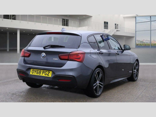 This 2018 BMW 1 Series 118i M Sport Shadow Edition boasts a full service history, with its last service completed on 31st October 2025 at 57,295 miles, and has had only one owner from new. This Euro 6 compliant model features a 1.5L petrol engine and comes with a 3 month warranty and 12 months MOT provided on purchase. Notable features include seat heating for the driver and front passenger, LED headlights, a rain sensor with automatic headlight activation, rear park distance control, and a premium Harman Kardon loudspeaker system.The M Sport Shadow Edition offers impressive performance, accelerating from 0 to 62mph in just 8.7 seconds, and achieves an excellent fuel economy of 54 mpg, making it more economical than many similar vehicles. You'll also appreciate the large boot space, providing ample room for luggage or shopping.12-24 Months AA Warranty Upgrade Available. All Cars, Vans Come with 12 Months Mot Service and Safety checked.. 12V Power Socket - Centre Console, 12V Power Socket - Passenger Footwell, 18in Alloy Wheels - M Double Spoke - 719M Bicolour Jet Black, Active Differential Brake - ADB Sport - Electronic Differential Lock in DSC-Off Mode, Air Conditioning - Automatic - Single Zone, Airbags, Alarm System - Thatcham 1 with Remote Control and Engine Immobiliser, Ambient Lighting - Switchable BMW Classic Orange - Cold White - LED, Armrest - Front with Sliding Adjustment, BMW ConnectedDrive Online Services, BMW ConnectedDrive Services, BMW Emergency Call, BMW Navigation System, BMW Professional Radio - Single CD and MP3, BMW TeleServices, Battery Age Recognition Function, Battery Safety Cut Off, Black High-Gloss Kidney Grille Frame with Black Slats, Bluetooth Hands Free with USB Audio Interface, Brake Pad Wear Indicator - Front and Rear, Bumper System Front and Rear - Replaceable Deformation Elements for Impacts Up to 9mph, Central Locking Switch - Doors - Fuel Filler Cap - Luggage Compartment, Check Control Warning System for Monitoring of Lights and Door-Luggage Compartment Open Warning, Child Proof Locking System - Rear Doors, Child Seat ISOFIX Attachment for the Two Outer Rear Seats, Condition Based Service, Crash Sensor - Activating Central Locking Release - Hazard Warning Lights - Battery Safety Cut Off - Interior Lighting, Cruise Control with Brake Function, Cupholders Two with Sliding Cover and Inlay Mat, DAB Digital Radio, DSC - Dynamic Stability Control Plus, Darkened Rear Lights with LED Light Bars, Direction Indicator - Side Repeaters - Integrated in Exterior Mirrors, Direction Indicator Lights - Clear Lenses, Door Sill Finishers - M Designation, Drive Performance Control - ECO PRO - Comfort - Sport - Sport Plus Modes, Dynamic Brake Lights, ECO PRO Mode, EPS - Electric Power Steering, Electric Windows - Front and Rear with Open-Close Fingertip Control - Anti-Trap Facility and Comfort Closing Function, Exhaust Tailpipes - Dark Chrome, Extended Lighting, Extended Storage, Exterior Mirrors Electrically Adjustable, Exterior Parts in Body Colour, Exterior Trim - High Gloss Shadowline, First Aid Kit and Warning Triangle, Floor Mats - Velour, Glove Compartment, Glovebox - Handle with Chrome Surround, Grab Handles - Integrated in Roof Linings - Four, Handbrake and Gear Knob - Leather, Head Restraints - Rear and Folding, Headlining - Anthracite, Heat Protection Glazing with Green Tint, High Level Third Brake Light, Instrument Cluster - Sports with Red Highlight, Interior Lighting - Front Centre Over Interior Mirror and Rear Centre, Interior Trim - Aluminium Hexagon with Estoril Blue Finisher, LED Fog Lights - Front, LED Headlights, LED Headlights with Darkened Surround, Lashing Eyes in Luggage Compartment at Sill x2, Lights-On Warning by Audio Warning Signal When Ignition is Switched Off, Locking Wheel Bolts, Loudspeaker System - Harman Kardon, Luggage Compartment - Light, Luggage Compartment Access via BMW Roundel, M Aerodynamic Bodystyling, M Logo Designation Chrome - Side, M Sport Braking System, M Sport Multi-Function Leather Steering Wheel - Three-Spoke, M Sport Suspension, Model Designation, Multifunction Controls for Steering Wheel, Non Smokers Package, OBC - On-Board Computer, Oil Temperature Display via On-Board Computer Shown in Central Screen in Instrument Cluster, Optimum Shift Indicator, PDC - Park Distance Control - Rear, Personal Profile, Rain Sensor with Automatic Headlight Activation, Real Time Traffic Information, Rear Fog Light - Offside, Rear Window Aerial, Remote Control Including Integrated Key - 2, Remote Control with Integrated Key with Insert in Blue, Reversing Light in Rear Cluster - Nearside, Run Flat Tyres, Seat Belt Security Check for Driver and Front Passenger, Seats - 60-40 Split Folding Rear, Servotronic Steering, Shark Fin, Side Armrests - Front and Rear Integrated into Door Trim, Side Impact Protection, Speed Limit Function, Sport Seats - Front, Start-Stop Button with Comfort Go Keyless Engine Start and Auto Sta. Full service history