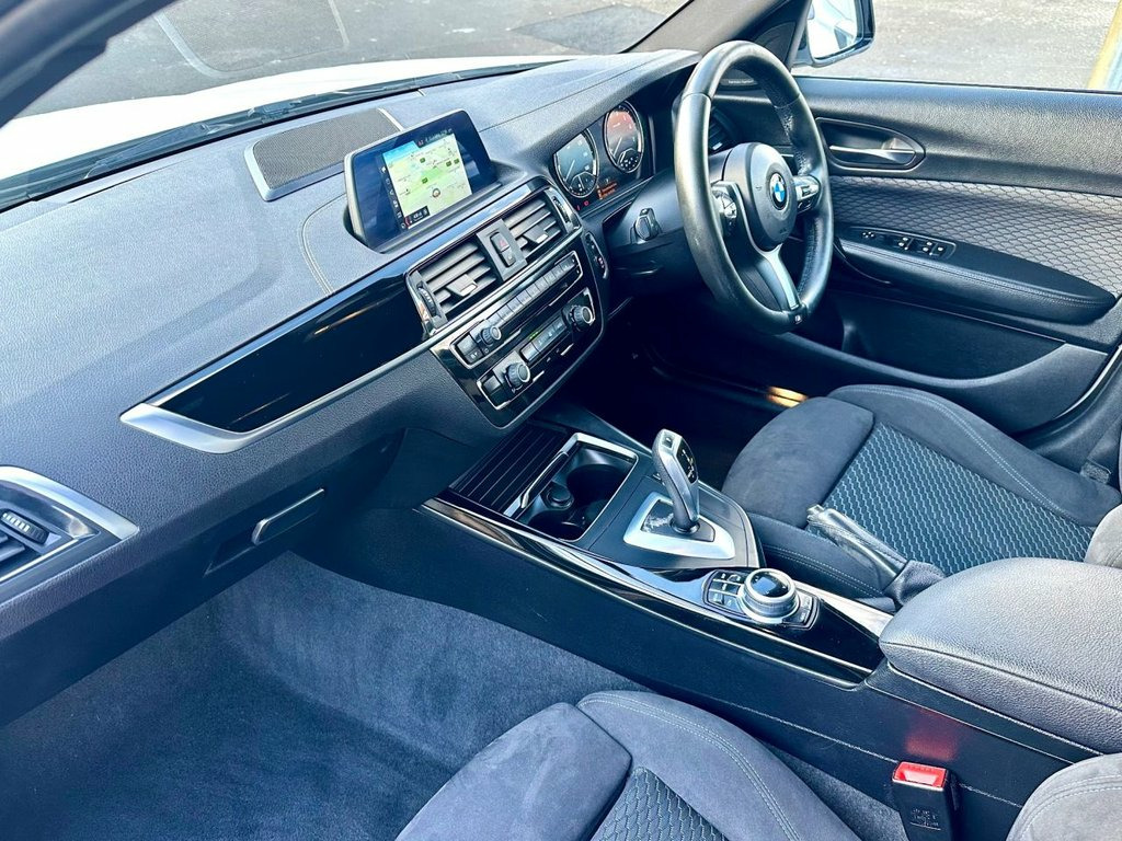 We offer here a BMW 118 1.5 Petrol M Sport Shadow Edition which comes complete with Service History and a specification including Full Screen Navigation, Hexagon Cloth/Alcantara Upholstery ,USB Connectivity, Bluetooth Telephone Connectivity, Cruise Control, Air Conditioning, 18" Alloy Wheels , Power Steering, Electric Windows/Mirrors and more 12V Power Socket - Centre Console, 12V Power Socket - Passenger Footwell, 18in Alloy Wheels - M Double Spoke - 719, Active Differential Brake - ADB Sport - , Air Conditioning - Automatic - Single Zo, Airbags, Alarm System - Thatcham 1 with Remote Co, Ambient Lighting - Switchable BMW Classi, Armrest - Front with Sliding Adjustment, BMW ConnectedDrive Online Services, BMW ConnectedDrive Services, BMW Emergency Call, BMW Navigation System, BMW Professional Radio - Single CD and M, BMW TeleServices, Battery Age Recognition Function, Battery Safety Cut Off, Black High-Gloss Kidney Grille Frame wit, Bluetooth Hands Free with USB Audio Inte, Brake Pad Wear Indicator - Front and Rea, Bumper System