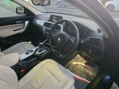 Beautifully presented 1 series supplied with an award winning warranty with free breakdown cover. Prepared by the by our experienced team. For sale is a 2017 BMW 1 Series 1.5 118i SE Hatchback with only 41792 miles on the clock. This petrol-powered car is ULEZ compliant and comes with MOT valid until 08/09/2026. With 5 seats and 5 doors, it offers both convenience and versatility. The Mediterranean Blue hatchback is equipped with features such as exterior mirrors that are electrically folding with anti-dazzle function, exterior trim with Chromeline accents, and run flat tyres for added safety. It also includes Park Distance Control (PDC) for both front and rear parking assistance. This sleek BMW is a perfect blend of style and performance, making it a great choice for anyone in the market for a reliable and efficient vehicle. v power socket - centre console, 12v power socket - passenger footwell, bmw connecteddrive online services, bmw connecteddrive services, bmw emergency call, bmw navigation system, bmw professional radio - single cd and mp3, bmw teleservices, bluetooth hands free with usb audio interface, dab digital radio, real time traffic information, rear window aerial, shark fin, 16in alloy wheels - light star spoke - 654, bmw mobility tyre sealing system, direction indicator - side repeaters - integrated in exterior mirrors, direction indicator lights - clear lenses, electric windows - front and rear with open-close fingertip control - anti-trap facility and comfort closing function, exhaust tailpipe - single round left chrome finisher, exterior mirrors electrically adjustable, exterior parts in body colour, heat protection glazing with green tint, kidney grille - chrome with black vertical slats, locking wheel bolts, model designation, rear fog light - offside, reversing light in rear cluster - nearside, tyres - reduced rolling resistance, active differential brake - adb sport - electronic differential lock in dsc-off mode, airbags, alarm system - thatcham 1 with remote control and engine immobiliser, battery safety cut off, bumper system front and rear - replaceable deformation elements for impacts up to 9mph, child proof locking system - rear doors, child seat isofix attachment for the two outer rear seats, crash sensor - activating central locking release - hazard warning lights - battery safety cut off - interior lighting, dsc - dynamic stability control plus, dynamic brake lights, first aid kit and warning triangle, incorrect fuelling protection system, remote control including integrated key - 2, seat belt security check for driver and front passenger, side impact protection, three-point seat belts - all seats, visible vin, windscreen wiper - rear, air conditioning - automatic - single zone, armrest - front with sliding adjustment, central locking switch - doors - fuel filler cap - luggage compartment, cupholders two with sliding cover and inlay mat, door sill finishers - bmw designation - front - black, extended storage, floor mats - velour, glove compartment, glovebox - handle with chrome surround, grab handles - integrated in roof linings - four, handbrake and gear knob - leather, head restraints - rear and folding, instrument cluster, interior lighting - front centre over interior mirror and rear centre, interior trim - satin silver, lashing eyes in luggage compartment at sill x2, luggage compartment - light, luggage compartment access via bmw roundel, multifunction controls for steering wheel, non smokers package, personal profile, rain sensor with automatic headlight activation, rear seat headrests - outer headrests folding, seats - 60-40 split folding rear, side armrests - front and rear integrated into door trim, standard seat for driver and passenger with manual adjustment, start-stop button with comfort go keyless engine start and auto start-stop deactivation button, steering wheel - 3-spoke leather, steering-wheel column adjustment - manual, storage compartment - rear centre console and in door trim - front, sun visors with vanity mirrors and ticket holder, twin horns, welcome light, battery age recognition function, brake pad wear indicator - front and rear, condition based service, drive performance control with eco pro - comfort and sport modes, eco pro mode, obc - on-board computer, oil temperature display via on-board computer shown in central screen in instrument cluster, optimum shift indicator, power steering - electric, servotronic steering, tpms - tyre pressure monitoring system, check control warning system for monitoring of lights and door-luggage compartment open warning, daytime driving lights, front fog lights, halogen headlights, high level third brake light, lights-on warning by audio warning signal when ignition is switched off