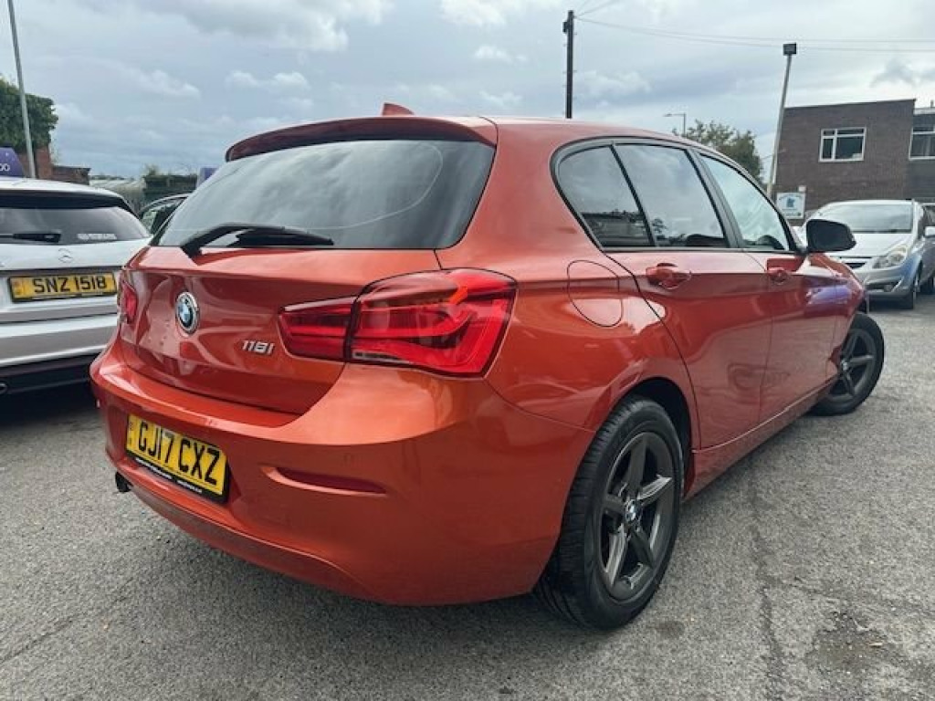 This lovely little 2017 17-Reg BMW 118i SE Auto looks and drives excellent!! presented in stunning Burnt Orange Metallic with full black trim, it has covered just 91,000 miles from new with service history, it comes with a nice specification, extras include Factory satellite navigation and Bluetooth phone prep, rear parking sensors, auto lights and wipers, USB/Aux input,17" gloss anthracite alloy wheels, privacy glass and full SE styling, normal petrol engine which means it is fully ULEZ Compliant and drives as good as it looks!!! 12V Power Socket - Centre Console, 12V Power Socket - Passenger Footwell, 16in Alloy Wheels - Light Star Spoke - 6, 3.5mm Auxiliary Input Point for Auxiliar, Active Differential Brake - ADB Sport - , Air Conditioning - Automatic - Single Zo, Airbags, Alarm System - Thatcham 1 with Remote Co, Armrest - Front with Sliding Adjustment, BMW ConnectedDrive Online Services, BMW Emergency Call, BMW Navigation System, BMW Professional Radio - Single CD and M, BMW TeleServices, Battery Age Recognition Function, Battery Safety Cut Off, Bluetooth Hands Free with USB Audio Inte, Brake Pad Wear Indicator - Front and Rea, Bumper System Front and Rear - Replaceab, Central Locking Switch - Doors - Fuel Fi, C