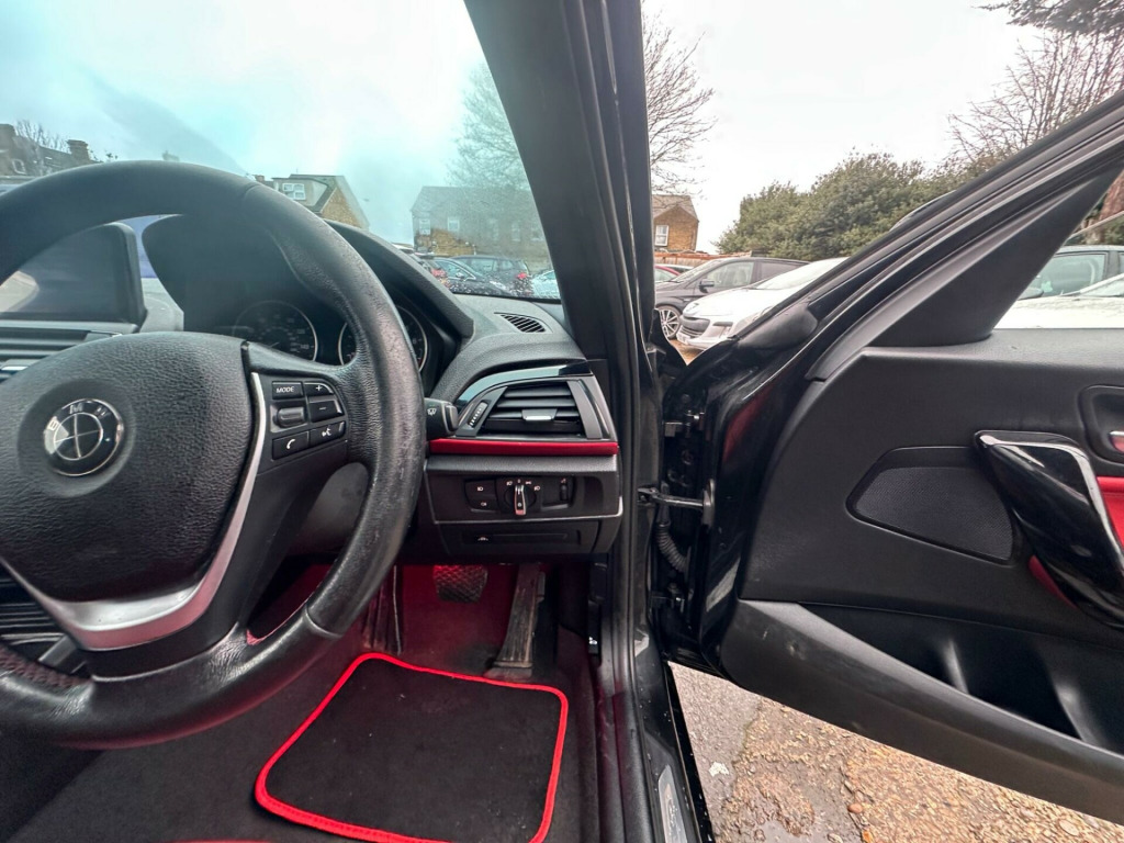 huge spec,,3 owners,,modified exhaust system,,modified body ,,rear diffuser,,, v power socket - centre console, 12v power socket - passenger footwell, 17in alloy wheels - light double spoke star - 655, 3.5mm auxiliary input point for auxiliary playing devices, active differential brake - adb sport - electronic differential lock in dsc-off mode, air conditioning - automatic - single zone, airbags, alarm system - thatcham 1 with remote control and engine immobiliser, ambient lighting - switchable bmw classic orange - cold white - led, armrest - front with sliding adjustment, bmw connecteddrive online services, bmw emergency call, bmw navigation system, bmw professional radio - single cd and mp3, bmw teleservices, battery age recognition function, battery safety cut off, bluetooth hands free with usb audio interface, brake pad wear indicator - front and rear, bumper - rear with high gloss black finisher, bumper system front and rear - replaceable deformation elements for impacts up to 9mph, central locking switch - doors - fuel filler cap - luggage compartment, check control warning system for monitoring of lights and door-luggage compartment open warning, child proof locking system - rear doors, child seat isofix attachment for the two outer rear seats, crash sensor - activating central locking release - hazard warning lights - battery safety cut off - interior lighting, cup holders x2, dab digital radio, dsc - dynamic stability control plus, daytime driving lights, direction indicator - side repeaters - integrated in exterior mirrors, direction indicator lights - clear lenses, door mirrors - electrically adjustable, door sill finishers - bmw designation - front, drive performance control - eco pro - comfort - sport and sport plus, dynamic brake lights, electric windows - front and rear with open-close fingertip control - anti-trap facility and comfort closing function, exhaust tailpipes - dark chrome, extended storage, exterior parts in body colour, first aid kit and warning triangle, floor mats - velour, front air inlet with high-gloss black finisher, front fog lights, glove compartment, glovebox - handle with chrome surround, grab handles - integrated in roof lining x4, halogen headlights, handbrake and gear knob - leather, head restraints - rear and folding, heat protection glazing with green tint, high level third brake light, instrument cluster - sports with red highlight, interior lighting - front centre over interior mirror and rear centre, interior trim - high-gloss black with coral red finisher, kidney grille - extra wide high gloss black vertical slats, lashing eyes in luggage compartment at sill x2, lights-on warning by audio warning signal when ignition is switched off, locking wheel bolts, luggage compartment - light, luggage compartment access via bmw roundel, mobility tyre sealing system, model designation, model designation deletion - side, multifunction controls for steering wheel, non smokers package, obc - on-board computer, optimum shift indicator, personal profile, pollen filter, power steering - electric, rain sensor with automatic headlight activation, rear fog light - offside, rear seat headrests - outer headrests folding, rear window aerial, remote control including integrated key - 2, remote control with integrated key with insert in red, reversing light in rear cluster - nearside, seat belt security check for driver and front passenger, seats - 60-40 split folding rear, shark fin, side armrests - front and rear integrated into door trim, side impact protection, speed limit function, sport multi-function leather steering wheel - three spoke, sport seats - front, start-stop button with comfort go keyless engine start and auto start-stop deactivation button, steering-wheel column adjustment - manual, storage compartment - rear centre console and in door trim - front, sun visors with vanity mirrors and ticket holder, tpms - tyre pressure monitoring system, three-point seat belts - all seats, twin horns, tyres - reduced rolling resistance, visible vin, welcome light, windscreen wiper - rear, active cruise control with stop and go function, led headlights, 18in alloy wheels - light double spoke - 385, enhanced bluetooth telephone preparation with usb audio interface and voice control, sun protection glazing, headlining - anthracite, full black panel display, led fog lights - front, sport leather steering wheel - black stitching, model designation deletion, corner cloth - anthracite with red highlight with black interior, dakota leather - black with black interior
