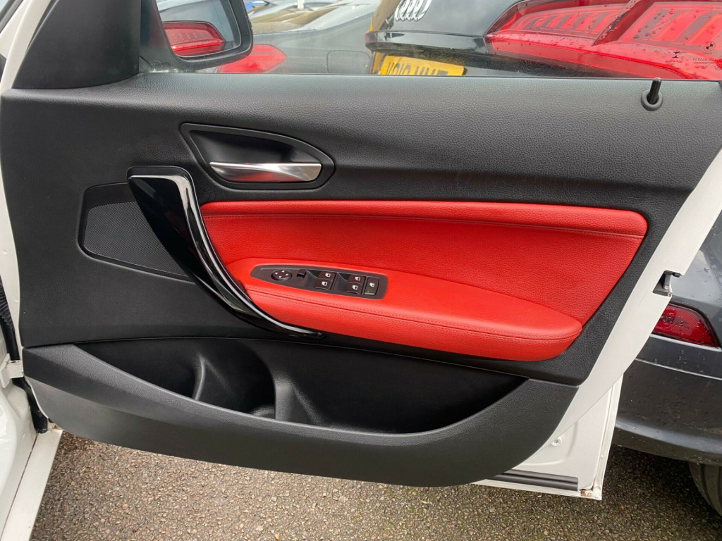 Cars Yard is delighted to present this stunning BMW 1 Series ((((((***FREE 6 MONTHS WARRANTY + 12 MONTHS FREE AA BREAKDOWN COVER ****))))) USED BY ONE FORMER KEEPER, SERVICE HISTORY, GREAT CONDITION IN AND OUT ***Excellent condition*** 5 Day Driveaway Insurance at Additional cost available for cars up to 10 years old STS, FINANCE AVAILABLE, CALL US ON 02045392878. AA Approved Dealer, FCA registered Dealer v power socket - centre console, 12v power socket - passenger footwell, 12v power socket - rear of centre console, 17in alloy wheels - light double spoke star - 655, 6.5in colour display screen, abs - anti lock braking system, adb sport - active differential brake, asc - automatic stability control, air conditioning - automatic - single zone, airbags - curtain head protection system, airbags - driver, airbags - front side, airbags - passenger, airbags - passenger deactivation, alarm system thatcham 1 with remote control, armrest - front and rear integrated into door trim, armrest - front with sliding adjustment, auxiliary input, bmw emergency call, bmw mobility system, bmw navigation system, bmw professional radio - single cd and mp3, bmw teleservices, battery safety cut off, bluetooth hands free facility, brake assist, brake drying, brake pad wear indicator, bumper - rear with black high gloss finisher, bumpers - body colour, cbc - cornering brake control, central locking - remote, check control warning system, child proof locking system - rear doors, child seat isofix attachment - rear, crash sensor - activating central locking-hazard warning lights-fuel cut off, cup holders x2, dab digital radio, dbc - dynamic brake control, dsc - dynamic stability control plus, dtc - dynamic traction control, daytime running lights, door handles - body colour, door mirrors - body coloured, door mirrors - electric and heated, door mirrors - integrated indicator side repeaters, door pockets on rear doors, door sill finishers - bmw designation, drive performance control - eco pro - comfort - sport and sport plus, dynamic brake lights, electric windows - front and rear with open-close fingertip control, engine immobiliser, exhaust tailpipe - chrome - single - round, extended storage, first aid kit, floor mats - velour, follow me home headlight function, front air inlet with high-gloss black finisher, front fog lights, gear knob - leather, glove compartment, glove compartment - opener with chrome trim, grab handles - in roof lining x4, halogen headlights, handbrake - leather, head restraints - rear and folding, headlights - automatic activation, headlights - beam throw control, heat protection glazing with green tint, heated windscreen washer jets, high level third brake light, hill start assist, indicator lenses - clear, instrument cluster - sports with red highlight, interior lighting - front and rear centre, interior trim - high-gloss black with coral red finisher, kidney grille - extra wide high gloss black vertical slats, lights-on audio warning, locking wheel bolts, luggage compartment - lashing eyes x2, luggage compartment - light, model designation deletion - side, multifunction controls for steering wheel, non smokers package, obc - on-board computer, outside temperature display, personal profile, power socket - 12v in luggage compartment, power steering - electric, rain sensor, remote control with integrated key with insert in red, roof mouldings - body colour, run flat tyres, seats - driver manual adjustment, seats - passenger manual adjustment, seats - split rear 60-40, shark fin aerial, speakers x6, speed limit function, sport seats - front, start-stop button with comfort go keyless engine start, steering column with manual reach and rake adjustment, steering wheel - leather - sports with red stitching, storage - compartment in instrument panel on drivers side with folding cover, storage compartment in rear centre console, storage net in the right side of the luggage compartment, storage nets on seat backrests, sun visors with vanity mirrors and ticket holder, tmc - traffic information for lifetime of vehicle, tpms - tyre pressure monitoring system, usb audio interface, versatile net, warning triangle, welcome lighting, idrive controller - 8 favourite buttons, media package - bmw professional, driver comfort package, interior comfort package, enhanced bluetooth telephone preparation with usb audio interface and voice control, seat heating for driver and front passenger, lumbar support - driver and front passenger, through-loading system, automatically dimming rear view mirror, full black panel display, interior trim - high-gloss black with oxide silver finisher, sport leather steering wheel - black stitching, dakota leather - coral red with black highlight with black interior, seats - front heated
