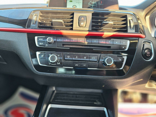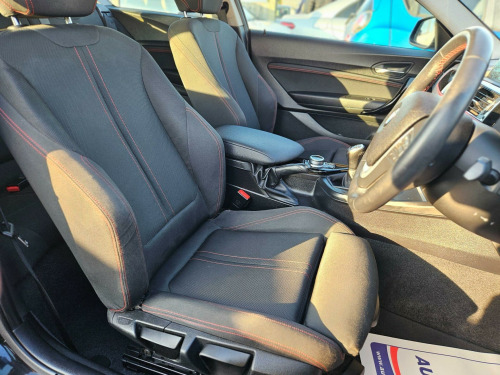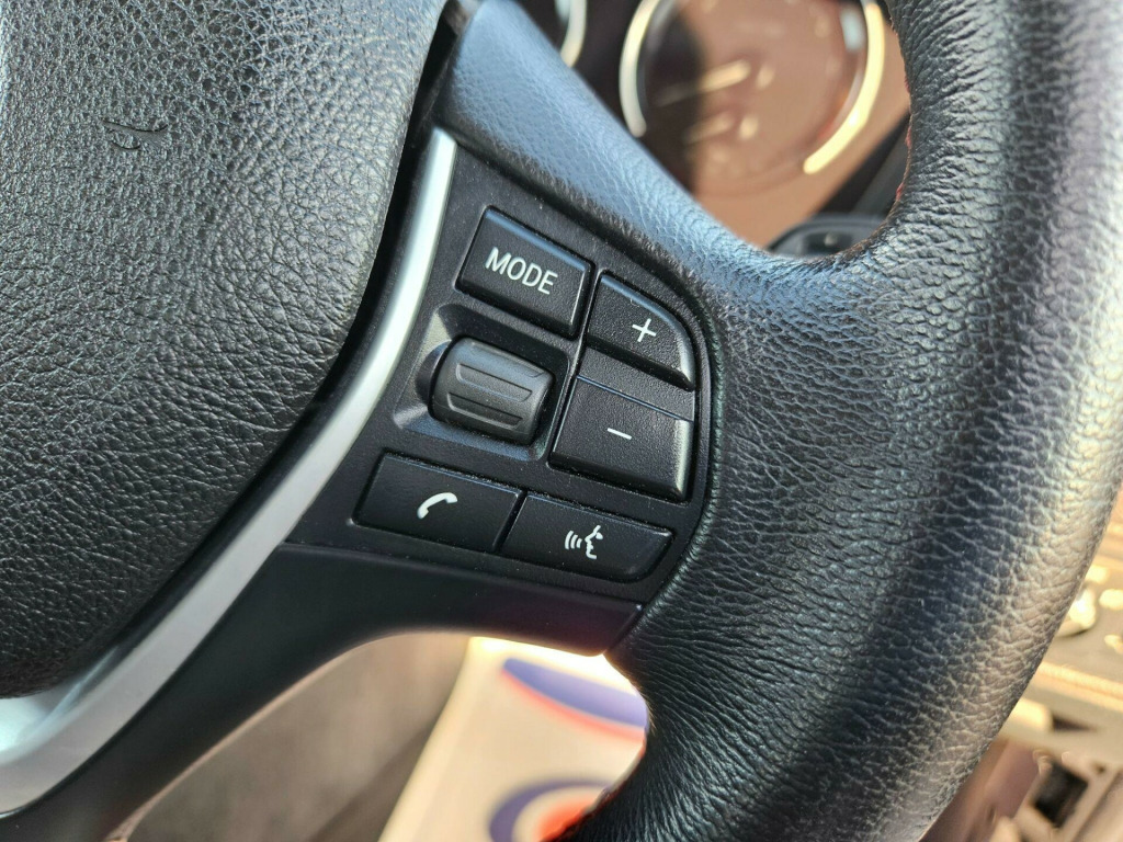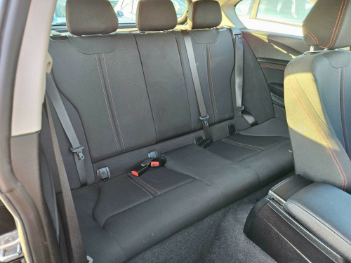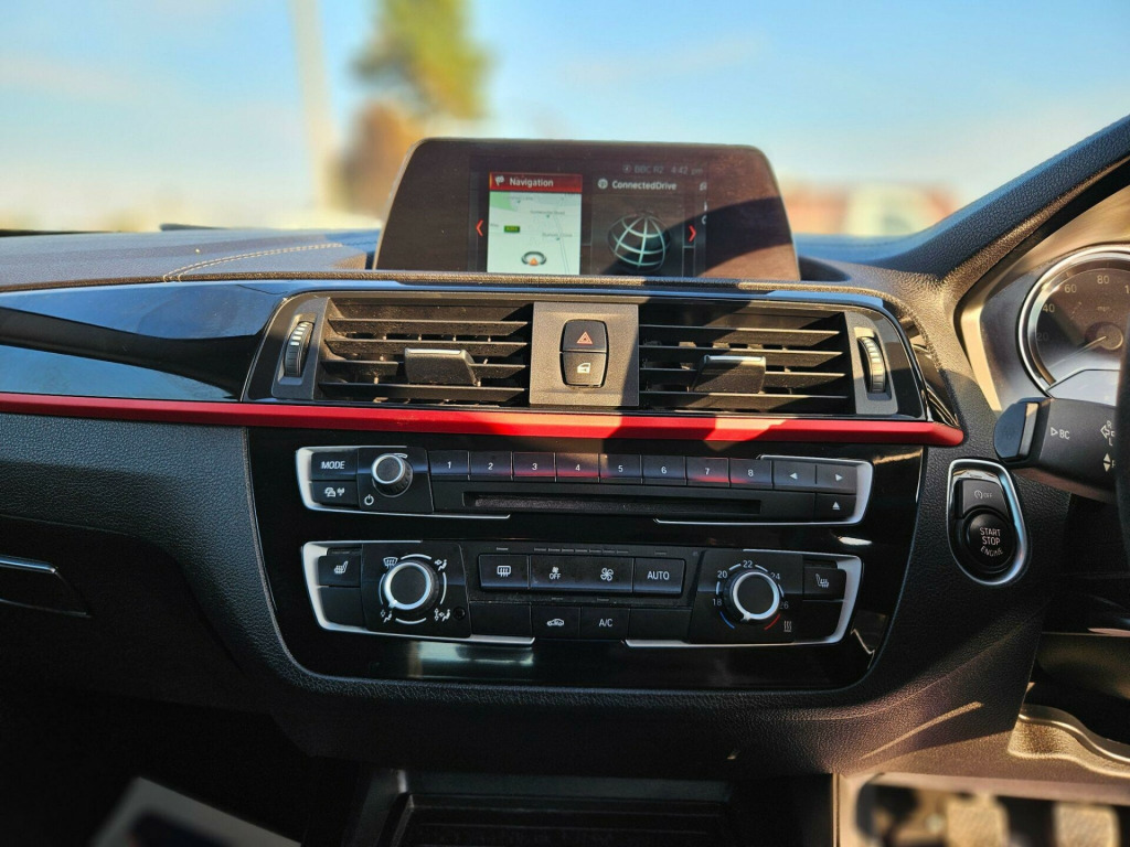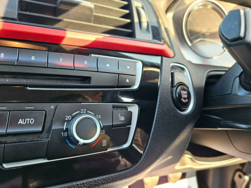 Air conditioning Navigation System Climate control at heating for driver and front passenger, 17in alloy wheels - light star spoke - 379, sport leather steering wheel - black stitching, corner cloth - anthracite with red highlight with black interior, 12v power socket - centre console, 12v power socket - passenger footwell, 17in alloy wheels - light double spoke star - 655, active differential brake - adb sport - electronic differential lock in dsc-off mode, air conditioning - automatic - single zone, airbags, alarm system - thatcham 1 with remote control and engine immobiliser, ambient lighting - switchable bmw classic orange - cold white - led, armrest - front with sliding adjustment, bmw connecteddrive online services, bmw connecteddrive services, bmw emergency call, bmw navigation system, bmw professional radio - single cd and mp3, bmw teleservices, battery age recognition function, battery safety cut off, bluetooth hands free with usb audio interface, brake pad wear indicator - front and rear, bumper - rear with high gloss black finisher, bumper system front and rear - replaceable deformation elements for impacts up to 9mph, central locking switch - doors - fuel filler cap - luggage compartment, check control warning system for monitoring of lights and door-luggage compartment open warning, child seat isofix attachment for the two outer rear seats, condition based service, crash sensor - activating central locking release - hazard warning lights - battery safety cut off - interior lighting, cupholders two with sliding cover and inlay mat, dab digital radio, dsc - dynamic stability control plus, daytime driving lights, direction indicator - side repeaters - integrated in exterior mirrors, direction indicator lights - clear lenses, door sill finishers - bmw designation - front, drive performance control - eco pro - comfort - sport - sport plus modes, dynamic brake lights, eco pro mode, eps - electric power steering, electric windows - front with open-close fingertip control - anti-trap facility and comfort closing function, exhaust tailpipe - chrome - dual - round - left, extended storage, exterior mirrors electrically adjustable, exterior parts in body colour, first aid kit and warning triangle, floor mats - velour, front air inlet with high-gloss black finisher, front fog lights, glove compartment, glovebox - handle with chrome surround, grab handles - integrated in roof linings - two, halogen headlights, handbrake and gear knob - leather, head restraints - rear and folding, heat protection glazing with green tint, high level third brake light, instrument cluster - sports with red highlight, interior lighting - front centre over interior mirror and rear centre, interior trim - high-gloss black with coral red finisher, kidney grille - extra wide high gloss black vertical slats, lashing eyes in luggage compartment at sill x2, lights-on warning by audio warning signal when ignition is switched off, locking wheel bolts, luggage compartment - light, luggage compartment access via bmw roundel, model designation, multifunction controls for steering wheel, non smokers package, obc - on-board computer, oil temperature display via on-board computer shown in central screen in instrument cluster, optimum shift indicator, personal profile, rain sensor with automatic headlight activation, real time traffic information, rear fog light - offside, rear window aerial, remote control including integrated key - 2, remote control with integrated key with insert in red, reversing light in rear cluster - nearside, run flat tyres, seat belt security check for driver and front passenger, seats - 60-40 split folding rear, servotronic steering, shark fin, side armrests - front and rear integrated into door trim, side impact protection, speed limit function, sport multi-function leather steering wheel - red stitching, sport seats - front, start-stop button with comfort go keyless engine start and auto start-stop deactivation button, steering-wheel column adjustment - manual, storage compartment - rear centre console and in door trim - front, sun visors with vanity mirrors and ticket holder, tpms - tyre pressure monitoring system, three-point seat belts - all seats, twin horns, tyres - reduced rolling resistance, visible vin, welcome lighting - led, windscreen wiper - rear