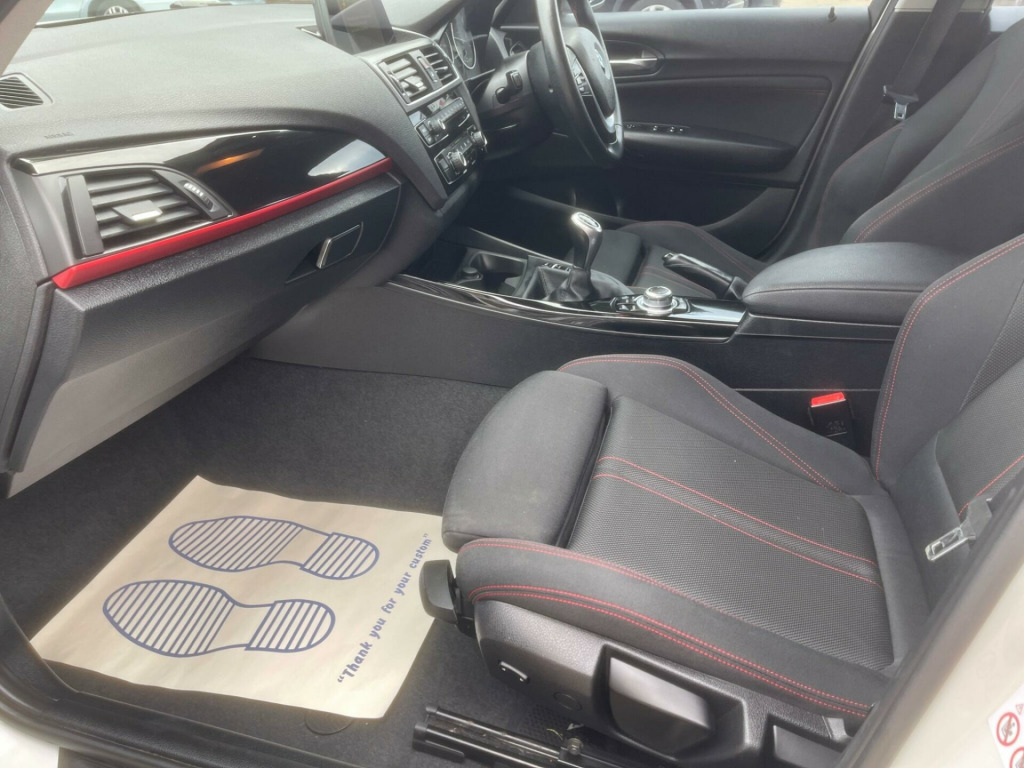 Beautiful BMW 1 Series 1.5 118i Sport in excellent condition. Top Specs, Navigation,Rear Parking Sensors, Electric Windows, Electric Side Mirrors, Climate Control, Steering Control, Cruise Control, Bluetooth Connection, Aux Connection, Alloys, Isofix,Arm Rest and many more...., Great Mpg, cheap to Tax and Insure. ULEZ compliant, 2 Previous Owners & 2 Keys. The car has been very well looked after and comes with FULL-Service history. We had it serviced recently at 49500 miles on 17/09/2025. It has also been MOTed till 14/09/2026 with no advisory. 3 Months essential warranty with Customer Protect is also included for your peace of mind. It is in very good condition and drives very smoothly with no fault whatsoever. ALL OUR CARS ARE FULLY INSPECTED BY PROFESSIONALS PRIOR TO ADVERTISEMENT & COME WITH 12 MONTHS FREE BASIC AA BREAKDOWN COVER. Finance is also available on request. DRIVE-AWAY INSURANCE IS ALSO AVAILABLE AT A COST. TO VIEW MORE STOCK PLEASE VISIT OUR WEBSITE AT: WWW.MEGAMOTORSUK.CO.UK , iver comfort package, enhanced bluetooth telephone preparation with usb audio interface and voice control, 17in alloy wheels - light star spoke - 379, door mirrors - black housing, sport leather steering wheel - black stitching, 12v power socket - centre console, 12v power socket - passenger footwell, 12v power socket - rear of centre console, 17in alloy wheels - light double spoke star - 655, 6.5in colour display screen, abs - anti lock braking system, adb sport - active differential brake, asc - automatic stability control, air conditioning - automatic - single zone, airbags - curtain head protection system, airbags - driver, airbags - front side, airbags - passenger, airbags - passenger deactivation, alarm system thatcham 1 with remote control, armrest - front and rear integrated into door trim, armrest - front with sliding adjustment, auxiliary input, bmw emergency call, bmw mobility system, bmw navigation system, bmw professional radio - single cd and mp3, bmw teleservices, battery safety cut off, bluetooth hands free facility, brake assist, brake drying, brake pad wear indicator, bumper - rear with black high gloss finisher, bumpers - body colour, cbc - cornering brake control, central locking - remote, check control warning system, child proof locking system - rear doors, child seat isofix attachment - rear, crash sensor - activating central locking-hazard warning lights-fuel cut off, cup holders x2, dab digital radio, dbc - dynamic brake control, dsc - dynamic stability control plus, dtc - dynamic traction control, daytime running lights, door handles - body colour, door mirrors - body coloured, door mirrors - electric and heated, door mirrors - integrated indicator side repeaters, door pockets on rear doors, door sill finishers - bmw designation, drive performance control - eco pro - comfort - sport and sport plus, dynamic brake lights, electric windows - front and rear with open-close fingertip control, engine immobiliser, exhaust tailpipe - chrome - single - round, extended storage, first aid kit, floor mats - velour, follow me home headlight function, front air inlet with high-gloss black finisher, front fog lights, gear knob - leather, glove compartment, glove compartment - opener with chrome trim, grab handles - in roof lining x4, halogen headlights, handbrake - leather, head restraints - rear and folding, headlights - automatic activation, headlights - beam throw control, heat protection glazing with green tint, heated windscreen washer jets, high level third brake light, hill start assist, indicator lenses - clear, instrument cluster - sports with red highlight, interior lighting - front and rear centre, interior trim - high-gloss black with coral red finisher, kidney grille - extra wide high gloss black vertical slats, lights-on audio warning, locking wheel bolts, luggage compartment - lashing eyes x2, luggage compartment - light, model designation deletion - side, multifunction controls for steering wheel, non smokers package, obc - on-board computer, optimum shift indicator, outside temperature display, personal profile, power socket - 12v in luggage compartment, power steering - electric, rain sensor, remote control with integrated key with insert in red, roof mouldings - body colour, run flat tyres, seats - driver manual adjustment, seats - passenger manual adjustment, seats - split rear 60-40, shark fin aerial, speakers x6, speed limit function, sport seats - front, start-stop button with comfort go keyless engine start, steering column with manual reach and rake adjustment, steering wheel - leather - sports with red stitching, storage - compartment in instrument panel on drivers side with folding cover, storage compartment in rear centre console, storage net in the right side of the luggage compartment, storage nets on seat backrests, sun visors with vanity mirrors and ticket holder, tmc - traffic information for lifetime of vehicle, tpms - tyre pressure monitoring system, usb audio interface, versatile net, warning triangle, welcome lighting, idrive controller - 8 favourite buttons