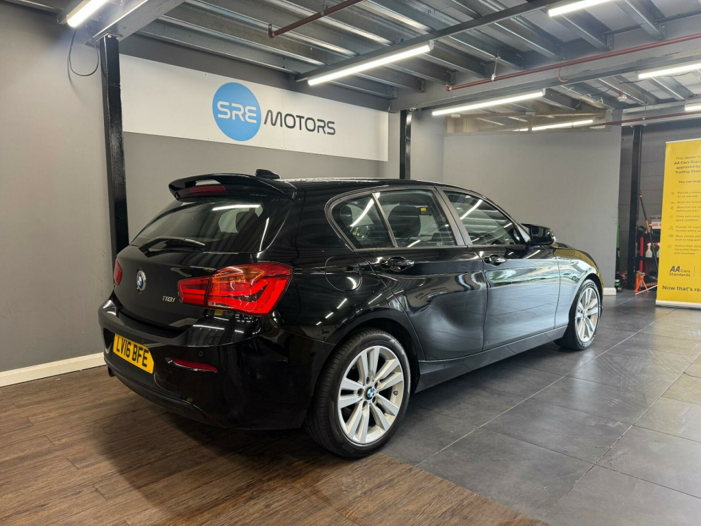BMW 118I 1.5 Petrol finished in metallic Black with 110,169 miles, is now available at SRE Motors. The vehicle is in great condition and has been well maintained by the previous owner. The vehicle has had a full vehicle inspection, it will also come with a 9 month minimum MOT, 3 months warranty and 12 months breakdown cover.This 2016 BMW 1 Series 118i Sport offers peace of mind with a 12 month MOT provided on purchase and a 3 month warranty. This Euro 6 compliant model features a 1.5L petrol engine and comes with partial service history. Inside, you'll find striking Interior Trim in Brushed Aluminium with a Black High Gloss Finisher, enhancing the Sport trim. The Driver Comfort Package includes rear parking sensors, while Enhanced Bluetooth Telephone Preparation with USB Audio Interface and Voice Control, alongside Bluetooth Hands Free Facility, ensures seamless connectivity. Automatic headlights add to the convenience.Experience impressive performance with this BMW 1 Series, capable of accelerating from 0 to 62mph in just 8.5 seconds, demonstrating its agility compared to other vehicles in its class. The generous boot space offers practicality for everyday needs and longer journeys. The combination of its sporty design, advanced technology, and efficient engine makes this 118i Sport a compelling choice for those seeking a well equipped and dynamic hatchback.Contact us today to arrange a viewing, arrange finance, reserve this vehicle or for anymore information.. 12V Power Socket - Centre Console, 12V Power Socket - Passenger Footwell, 12V Power Socket - Rear of Centre Console, 17in Alloy Wheels - Light Double Spoke Star - 655, 6.5in Colour Display Screen, ABS - Anti Lock Braking System, ADB Sport - Active Differential Brake, ASC - Automatic Stability Control, Air Conditioning - Automatic - Single Zone, Airbags - Curtain Head Protection system, Airbags - Driver, Airbags - Front Side, Airbags - Passenger, Airbags - Passenger Deactivation, Alarm System Thatcham 1 with Remote Control, Armrest - Front and Rear Integrated into Door Trim, Armrest - Front with Sliding Adjustment, Auxiliary Input, BMW Emergency Call, BMW Mobility System, BMW Navigation System, BMW Professional Radio - Single CD and MP3, BMW TeleServices, Battery Safety Cut Off, Bluetooth Hands Free Facility, Brake Assist, Brake Drying, Brake Pad Wear Indicator, Bumper - Rear with Black High Gloss Finisher, Bumpers - Body Colour, CBC - Cornering Brake Control, Central Locking - Remote, Check Control Warning System, Child Proof Locking System - Rear Doors, Child Seat ISOFIX Attachment - Rear, Crash Sensor - Activating Central Locking-Hazard Warning Lights-Fuel Cut Off, Cup Holders x2, DAB Digital Radio, DBC - Dynamic Brake Control, DSC - Dynamic Stability Control Plus, DTC - Dynamic Traction Control, Daytime Running Lights, Door Handles - Body Colour, Door Mirrors - Body Coloured, Door Mirrors - Electric and Heated, Door Mirrors - Integrated Indicator Side Repeaters, Door Pockets on Rear Doors, Door Sill Finishers - BMW Designation, Drive Performance Control - ECO PRO - Comfort - Sport and Sport Plus, Dynamic Brake Lights, Electric Windows - Front and Rear with Open-Close Fingertip Control, Engine Immobiliser, Exhaust Tailpipe - Chrome - Single - Round, Extended Storage, First Aid Kit, Floor Mats - Velour, Follow Me Home Headlight Function, Front Air Inlet with High-Gloss Black Finisher, Front Fog Lights, Gear Knob - Leather, Glove Compartment, Glove Compartment - Opener with Chrome Trim, Grab Handles - in Roof Lining x4, Halogen Headlights, Handbrake - Leather, Head Restraints - Rear and Folding, Headlights - Automatic Activation, Headlights - Beam Throw Control, Heat Protection Glazing with Green Tint, Heated Windscreen Washer Jets, High Level Third Brake Light, Hill Start Assist, Indicator Lenses - Clear, Instrument Cluster - Sports with Red Highlight, Interior Lighting - Front and Rear Centre, Interior Trim - High-Gloss Black with Coral Red Finisher, Kidney Grille - Extra Wide High Gloss Black Vertical Slats, Lights-on Audio Warning, Locking Wheel Bolts, Luggage Compartment - Lashing Eyes x2, Luggage Compartment - Light, Model Designation Deletion - Side, Multifunction Controls for Steering Wheel, Non Smokers Package, OBC - On-Board Computer, Optimum Shift Indicator, Outside Temperature Display, Personal Profile, Power Socket - 12V in Luggage Compartment, Power Steering - Electric, Rain Sensor, Remote Control with Integrated Key with Insert in Red, Roof Mouldings - Body Colour, Run Flat Tyres, Seats - Driver Manual Adjustment, Seats - Passenger Manual Adjustment, Seats - Split Rear 60-40, Shark Fin Aerial, Speakers x6, Speed Limit Function, Sport Seats - Front, Start-Stop Button with Comfort Go Keyless Engine Start, Steering Column with Manual Reach and Rake Adjustment, Steering Wheel - Leather - Sports with Red Stitching, Storage - Compartment in Instrument Panel on Drivers Side with Folding Cover, Storage Compartment in Rear Centre Console, Storage Net in the Right Side of the Luggage Compartment, Storage Nets on Seat Backrests, Sun Visors with Vanity Mirrors and Ticket Holder, TMC - Traffic Information for Lifetime of Vehicle, TPMS - Tyre Pressure Monitoring System, USB Audio Interface, Versatile Net, Warning Triangle, Welcome Lighting, iDrive Controller - 8 Favourite Buttons, Driver Comfort Package, Enhanced Bluetooth Telephone Preparation with USB Audio Interface and Voice Control, Interior Trim - Brushed Aluminium with. Part service history