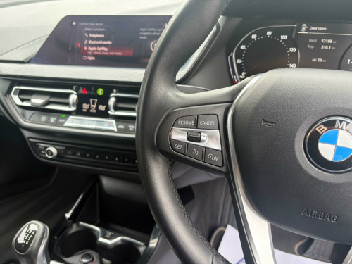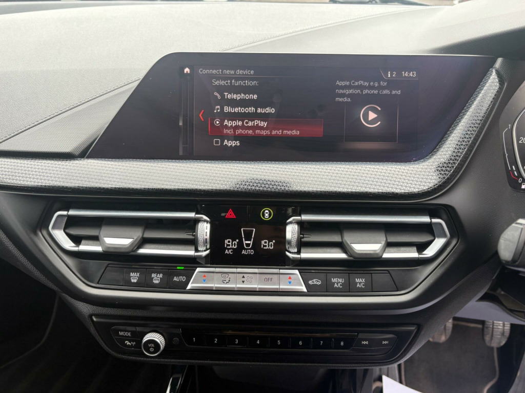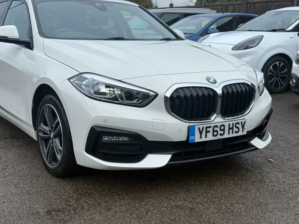 This 2019 BMW 1 Series 118i Sport offers a refined driving experience, boasting a 1.5 litre petrol engine and meeting Euro 6 emissions standards. This Sport trim model comes equipped with the desirable Tech Pack II, which includes Bluetooth connectivity and a premium branded sound system for your entertainment. Comfort is further enhanced with lumbar support for both the driver and front passenger, and the convenience of automatic air conditioning with two zone climate control. The BMW Live Cockpit Plus, also featuring Bluetooth, ensures seamless integration of your devices.Experience the responsive performance of this BMW 1 Series, capable of accelerating from 0 to 62 miles per hour in just 8.5 seconds, demonstrating its agility. The inclusion of a rain sensor with automatic headlight activation adds to the ease of driving, while the generous boot space provides ample room for your luggage and shopping. These features collectively highlight how this particular BMW 1 Series 118i Sport provides a superior and more convenient driving experience compared to other vehicles in its class. ch pack ii, sun protection glazing, lumbar support - driver and front passenger, nivala cloth-sensatec - anthracite with grey highlight, 17in alloy wheels - double-spoke style 548 - bi-colour, 18in alloy wheels - multi-spoke style 488 - bi-colour, 12v power socket in centre console front with blanking plug, 17in alloy wheels - double spoke - style 549, active guard plus, air conditioning automatic with two-zone control, airbags, alarm system - thatcham 1 with remote control and engine immobiliser, armrest - front - folding with storage compartment, attentiveness assistant, automatically dimming rear view mirror, bmw connecteddrive online services, bmw emergency call, bmw live cockpit plus, bmw mobility tyre sealing system, bmw teleservices, bluetooth - audio streaming - with compatible devices, bluetooth hands free with usb audio interface, bumper system front and rear - replaceable deformation elements for impacts up to 9mph, central locking switch - doors - fuel filler cap - luggage compartment, check control warning system for monitoring of lights and door-luggage compartment open warning, child seat isofix attachment for the two outer rear seats and front passenger seat, childproof locking system - rear doors and electric windows, condition based service, connected package plus, contrast stitching - instrument panel, crash sensor, cruise control with brake function, cupholders - two front centre console, dab digital radio, dsc - dynamic stability control plus, dead-locking function system to all doors, direction indicator side lights integrated in exterior mirrors, door sill finishers in black plastic with inserted bmw designation in metallic look - front only, drive performance control with eco pro and comfort modes, drive-away locking system on all doors-luggage compartment - can be de-activated in idrive settings, eco pro mode, eps - electric power steering, electric handbrake, electric windows - front and rear with open-close fingertip control - trap release and child lock function, exclusive sport exterior features, exhaust tailpipe - chrome - single round 90mm - left, extended storage, exterior mirrors - heated - electrically adjustable, exterior parts in body colour, exterior trim - high gloss shadowline, first aid kit and warning triangle, floor mats - velour, front windscreen wipers with integrated washer jets, glove box with light, grab handles - integrated in roof linings - four, heat protection glazing with green tint, high level third brake light, illuminated berlin interior trim, integrated owners handbook - within idrive menu, interior lighting, kidney grille - chrome frame with high-gloss black struts, led fog lights - front, led headlights, locking wheel bolts, model designation on tailgate, multifunction controls for steering wheel, obc - on-board computer, optimum shift indicator, pdc - park distance control - front and rear, performance control, personal profile, rain sensor with automatic headlight activation, rear fog light, rear seat backrest with manual 60-40 split folding with 3 top tether clips integrated on rear of seat panels, rear seat headrests - three, remote control key x2, reversing light in rear light clusters, seat belt security check for driver and front passenger, seat belt warning if driver starts ignition without putting on seatbelt, servotronic steering, shark fin, side armrests - front and rear integrated into door trim, side impact protection, sport multi-function leather steering wheel - three spoke, sport seats - front, start-stop button - illuminated in centre console with keyless engine start and auto start-stop deactivation button, steering column with manual reach and rake adjustment, stereo speaker system, storage features, sun visors with vanity mirrors and insert tab, suspension, tpms - tyre pressure monitoring system, three-point seat belts - all seats, twin horns, tyres - reduced rolling resistance, visible vin, welcome light, windscreen wiper - rear