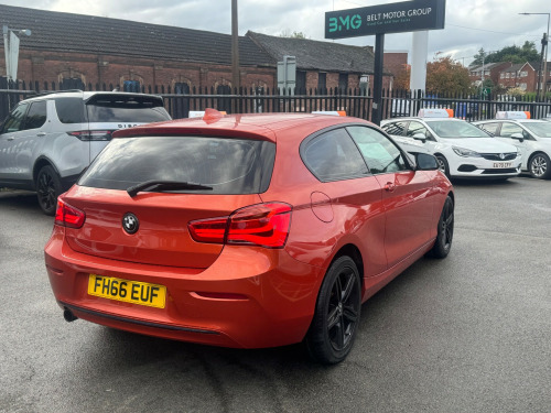 INDOOR HEATED VIEWING AVAILABLE AND 4K WALK AROUND VIDEOS AVAILABLE UPON REQUEST.FREE 12 MONTHS RAC GOLD WARRANTY - FREE RAC 12 MONTHS ROADSIDE ASSISTANCE - NATIONWIDE DELIVERY AVAILABLEThis 2016 BMW 1 Series 1.5 118i Sport Hatchback 3dr Petrol Manual Euro 6 (s/s) with 96,000 miles on the clock is a stylish and efficient choice for anyone in need of a reliable hatchback. The Valencia Orange exterior is complemented by 17in Alloy Wheels and Black Housing Door Mirrors, giving it a sleek and modern look. With 5 seats and 3 doors, this car is both practical and compact while also being ULEZ compliant for eco-conscious drivers. The interior is finished with High-Gloss Black trim and Oxide Silver Finisher, and features Enhanced Bluetooth Telephone Preparation, USB Audio Interface, and Voice Control for convenience on the go. With an MOT valid until 08/01/2026, this BMW 1 Series is ready to hit the road and offer a smooth and enjoyable driving experience. v power socket - centre console, 12v power socket - passenger footwell, 3.5mm auxiliary input point for auxiliary playing devices, bmw connecteddrive online services, bmw emergency call, bmw navigation system, bmw professional radio - single cd and mp3, bmw teleservices, bluetooth hands free with usb audio interface, dab digital radio, rear window aerial, shark fin, 17in alloy wheels - light double spoke star - 655, bumper - rear with high gloss black finisher, direction indicator - side repeaters - integrated in exterior mirrors, direction indicator lights - clear lenses, door mirrors - electrically adjustable, electric windows - front with open-close fingertip control - anti-trap facility and comfort closing function, exhaust tailpipes - dark chrome, exterior parts in body colour, front air inlet with high-gloss black finisher, heat protection glazing with green tint, kidney grille - extra wide high gloss black vertical slats, locking wheel bolts, mobility tyre sealing system, model designation, rear fog light - offside, reversing light in rear cluster - nearside, tyres - reduced rolling resistance, active differential brake - adb sport - electronic differential lock in dsc-off mode, airbags, alarm system - thatcham 1 with remote control and engine immobiliser, battery safety cut off, bumper system front and rear - replaceable deformation elements for impacts up to 9mph, child proof locking system - rear doors, child seat isofix attachment for the two outer rear seats, crash sensor - activating central locking release - hazard warning lights - battery safety cut off - interior lighting, dsc - dynamic stability control plus, dynamic brake lights, first aid kit and warning triangle, remote control including integrated key - 2, remote control with integrated key with insert in red, seat belt security check for driver and front passenger, side impact protection, speed limit function, three-point seat belts - all seats, visible vin, windscreen wiper - rear, air conditioning - automatic - single zone, ambient lighting - switchable bmw classic orange - cold white - led, armrest - front with sliding adjustment, central locking switch - doors - fuel filler cap - luggage compartment, cup holders x2, door sill finishers - bmw designation - front, extended storage, floor mats - velour, glove compartment, glovebox - handle with chrome surround, grab handles - integrated in roof lining x2, handbrake and gear knob - leather, head restraints - rear and folding, instrument cluster - sports with red highlight, interior lighting - front centre over interior mirror and rear centre, interior trim - high-gloss black with coral red finisher, lashing eyes in luggage compartment at sill x2, luggage compartment - light, luggage compartment access via bmw roundel, model designation deletion - side, multifunction controls for steering wheel, non smokers package, personal profile, pollen filter, rain sensor with automatic headlight activation, rear seat headrests - outer headrests folding, seats - 60-40 split folding rear, side armrests - front and rear integrated into door trim, sport multi-function leather steering wheel - three spoke, sport seats - front, start-stop button with comfort go keyless engine start and auto start-stop deactivation button, steering-wheel column adjustment - manual, storage compartment - rear centre console and in door trim - front, sun visors with vanity mirrors and ticket holder, twin horns, welcome light, battery age recognition function, brake pad wear indicator - front and rear, drive performance control - eco pro - comfort - sport and sport plus, obc - on-board computer, optimum shift indicator, power steering - electric, tpms - tyre pressure monitoring system, check control warning system for monitoring of lights and door-luggage compartment open warning, daytime driving lights, front fog lights, halogen headlights, high level third brake light, lights-on warning by audio warning signal when ignition is switched off