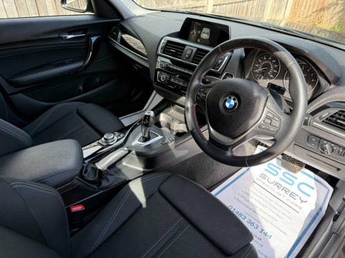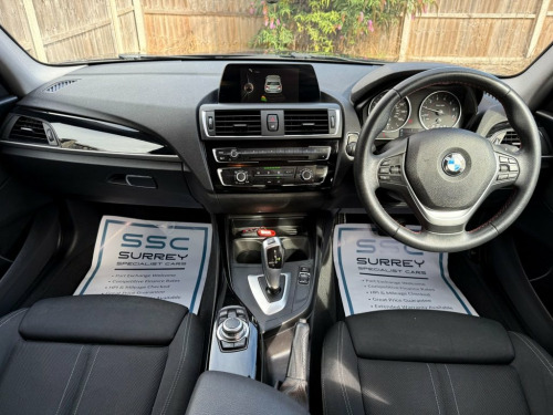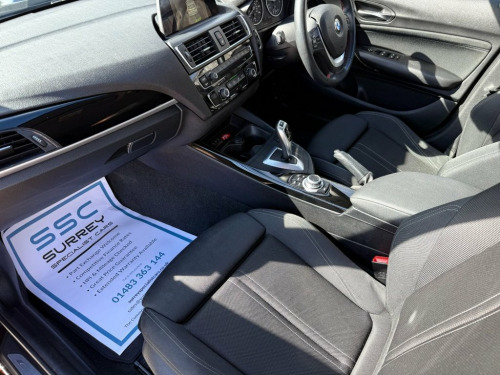 Surrey Specialist Cars are proud to present our lovely BMW 118i Sport. This amazing car comes with Service History, finished in stunning black with grey contrast interior. The car has a Long MOT until August 2026 so it is ready to go. The 1.5L petrol engine offers superb economy at over 55 MPG on combined cycle. Features Include Rear parking sensors, Multifunction Steering Wheel, Trip Computer, Stereo/Phone Control, Satellite Navigation, DAB/FM Radio, CD Player, AUX Input, USB Input, Bluetooth Audio, Start/Stop System, Climate Control, two Cup Holders, 6 Speed Manual Gearbox, Drive Mode, 12V Charging Socket, Fog Lights, Electric Windows, 17 Inch Alloy Wheels and two Remote Control Keys to name a few. 12V Power Socket - Centre Console, 12V Power Socket - Passenger Footwell, 17in Alloy Wheels - Light Double Spoke S, 3.5mm Auxiliary Input Point for Auxiliar, Active Differential Brake - ADB Sport - , Air Conditioning - Automatic - Single Zo, Airbags, Alarm System - Thatcham 1 with Remote Co, Ambient Lighting - Switchable BMW Classi, Armrest - Front with Sliding Adjustment, BMW ConnectedDrive Online Services, BMW Emergency Call, BMW Navigation System, BMW Professional Radio - Single CD and M, BMW TeleServices, Battery Age Recognition Function, Battery Safety Cut Off, Bluetooth Hands Free with USB Audio Inte, Brake Pad Wear Indicator - Front and Rea, Bumper - Rear with High Gloss Black Fini, B