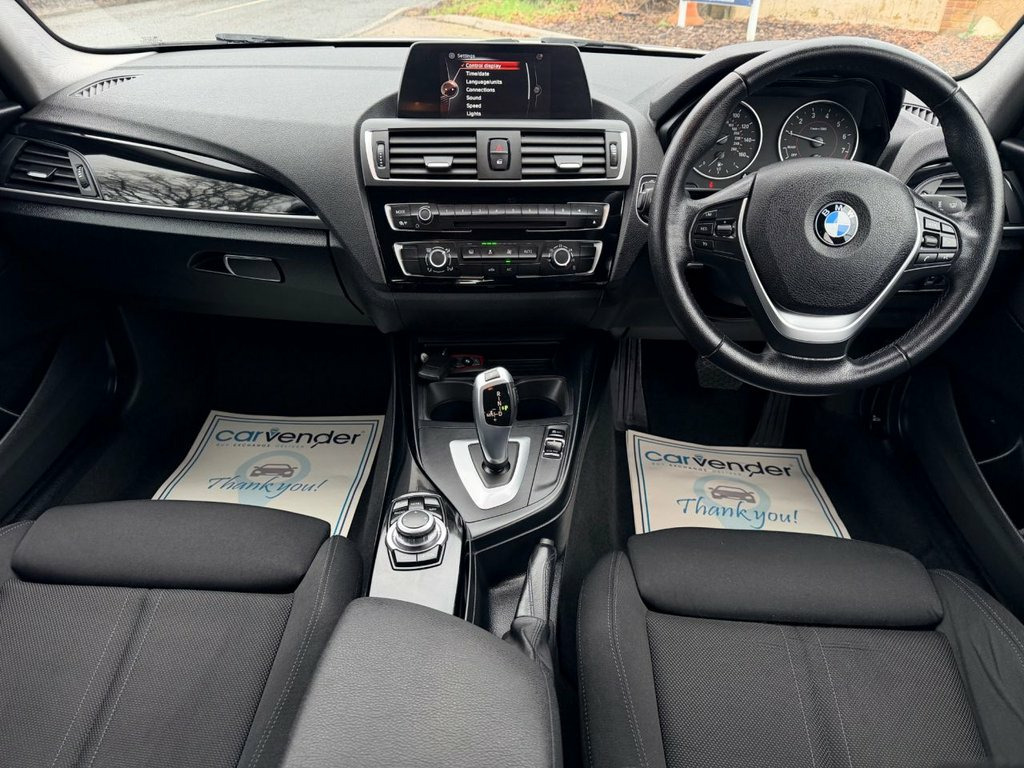 From Carvender unleash the ultimate driving experience with our stunning 2017 BMW 1 Series 1.5 118i Sport Hatchback 5dr.The BMW 1 Series is a perfect blend of performance, style and efficiency. This compact yet powerful hatchback is designed to captivate the road and your heart. Powering this 1 Series with 1.5 litre engine which delivers an impressive 136 Brake Horse Power (BHP). Step into a world of luxury with the meticulously crafted interior. Premium materials, ergonomic design, and cutting-edge technology create an inviting and comfortable driving environment. The sport trim combines dynamic lines and a sleek profile, making a powerful visual statement. From the iconic kidney grille to the precision of its design. This trim level elevates your driving experience with features such as Cruise Control, Parking Sensors , Navigation System, Advanced Climate Control, iDrive infotainment system, Bluetooth Connectivity and much more. This 2017 BMW 1 Series has been looked after very well, showcasing its excellent condition. Services have been carried out at mileages of 5998, 8380, 9471, 11558, 15658, 29971, 34938 and 44886 on 20/09/2025. Only £35 Road Tax per year. Don't miss the opportunity to own the 2017 BMW 1 Series – a car that seamlessly combines luxury, efficiency, and driving pleasure. Contact us today to schedule a test drive or visit our website for home delivery with 14 days money back guaranty. 12V Power Socket - Centre Console, 12V Power Socket - Passenger Footwell, 17in Alloy Wheels - Light Double Spoke S, 3.5mm Auxiliary Input Point for Auxiliar, Active Differential Brake - ADB Sport - , Air Conditioning - Automatic - Single Zo, Airbags, Alarm System - Thatcham 1 with Remote Co, Ambient Lighting - Switchable BMW Classi, Armrest - Front with Sliding Adjustment, BMW ConnectedDrive Online Services, BMW Emergency Call, BMW Navigation System, BMW Professional Radio - Single CD and M, BMW TeleServices, Battery Age Recognition Function, Battery Safety Cut Off, Bluetooth Hands Free with USB Audio Inte, Brake Pad Wear Indicator - Front and Rea, Bumper - Rear with High Gloss Black Fini, B