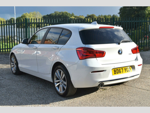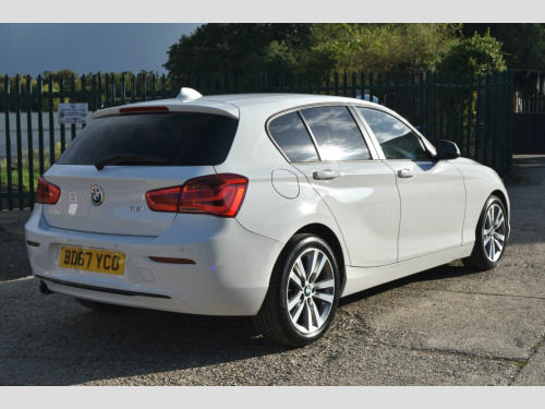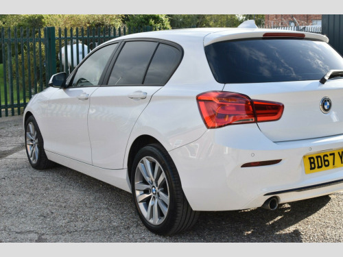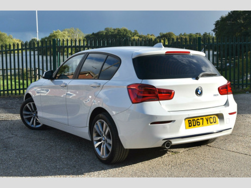 This 2017 BMW 1 Series 118i Sport boasts an exceptionally low mileage for its age, having covered just 51,625 miles. This particular example comes with a full service history, with the last service completed on 2025-09-10 at 51,625 miles, and a clear vehicle history check. It is powered by an efficient 1.5L petrol engine, meeting Euro 6 emissions standards. The Sport trim enhances the driving experience, and for your peace of mind, it includes a 12-month warranty and a 12-month MOT provided on purchase.The BMW 1 Series 118i Sport offers a compelling blend of performance and practicality. Its acceleration from 0-62mph in just 8.5 seconds demonstrates its lively performance, a figure that stands out when compared to similar vehicles. This model also features Enhanced Bluetooth Telephone Preparation with USB Audio Interface and Voice Control, along with Bluetooth Hands Free with USB Audio Interface, making connectivity effortless. Parking is made simpler with Rear Park Distance Control, and the Rain Sensor with Automatic Headlight Activation ensures visibility is maintained in varying conditions. Comfort is assured with Automatic Single Zone Air Conditioning. Furthermore, the generous boot space provides ample room for luggage or shopping, highlighting its suitability for everyday use., v power socket - centre console, 12v power socket - passenger footwell, 17in alloy wheels - light double spoke star - 655, active differential brake - adb sport - electronic differential lock in dsc-off mode, air conditioning - automatic - single zone, airbags, alarm system - thatcham 1 with remote control and engine immobiliser, ambient lighting - switchable bmw classic orange - cold white - led, armrest - front with sliding adjustment, bmw connecteddrive online services, bmw connecteddrive services, bmw emergency call, bmw navigation system, bmw professional radio - single cd and mp3, bmw teleservices, battery age recognition function, battery safety cut off, bluetooth hands free with usb audio interface, brake pad wear indicator - front and rear, bumper - rear with high gloss black finisher, bumper system front and rear - replaceable deformation elements for impacts up to 9mph, central locking switch - doors - fuel filler cap - luggage compartment, check control warning system for monitoring of lights and door-luggage compartment open warning, child proof locking system - rear doors, child seat isofix attachment for the two outer rear seats, condition based service, crash sensor - activating central locking release - hazard warning lights - battery safety cut off - interior lighting, cupholders two with sliding cover and inlay mat, dab digital radio, dsc - dynamic stability control plus, daytime driving lights, direction indicator - side repeaters - integrated in exterior mirrors, direction indicator lights - clear lenses, door sill finishers - bmw designation - front, drive performance control - eco pro - comfort - sport - sport plus modes, dynamic brake lights, eco pro mode, electric windows - front and rear with open-close fingertip control - anti-trap facility and comfort closing function, exhaust tailpipe - chrome - dual - round - left, extended storage, exterior mirrors electrically adjustable, exterior parts in body colour, first aid kit and warning triangle, floor mats - velour, front air inlet with high-gloss black finisher, front fog lights, glove compartment, glovebox - handle with chrome surround, grab handles - integrated in roof linings - four, halogen headlights, handbrake and gear knob - leather, head restraints - rear and folding, heat protection glazing with green tint, high level third brake light, incorrect fuelling protection system, instrument cluster - sports with red highlight, interior lighting - front centre over interior mirror and rear centre, interior trim - high-gloss black with coral red finisher, kidney grille - extra wide high gloss black vertical slats, lashing eyes in luggage compartment at sill x2, lights-on warning by audio warning signal when ignition is switched off, locking wheel bolts, luggage compartment - light, luggage compartment access via bmw roundel, model designation, multifunction controls for steering wheel, non smokers package, obc - on-board computer, oil temperature display via on-board computer shown in central screen in instrument cluster, optimum shift indicator, personal profile, power steering - electric, rain sensor with automatic headlight activation, real time traffic information, rear fog light - offside, rear seat headrests - outer headrests folding, rear window aerial, remote control including integrated key - 2, remote control with integrated key with insert in red, reversing light in rear cluster - nearside, run flat tyres, seat belt security check for driver and front passenger, seats - 60-40 split folding rear, servotronic steering, shark fin, side armrests - front and rear integrated into door trim, side impact protection, speed limit function, sport multi-function leather steering wheel - red stitching, sport seats - front, start-stop button with comfort go keyless engine start and auto start-stop deactivation button, steering-wheel column adjustment - manual, storage compartment - rear centre console and in door trim - front, sun visors with vanity mirrors and ticket holder, tpms - tyre pressure monitoring system, three-point seat belts - all seats, twin horns, tyres - reduced rolling resistance, visible vin, welcome lighting - led, windscreen wiper - rear, pdc - park distance control - rear, enhanced bluetooth telephone preparation with usb audio interface and voice control, 17in alloy wheels - light star spoke - 379, interior trim - high-gloss black with pearl chrome finisher, sport leather steering wheel - black stitching, corner cloth - anthracite with grey highlight with black interior