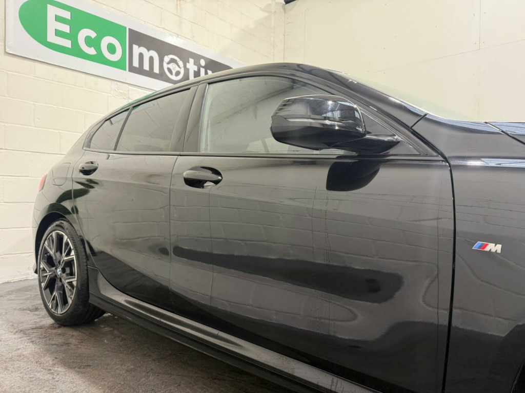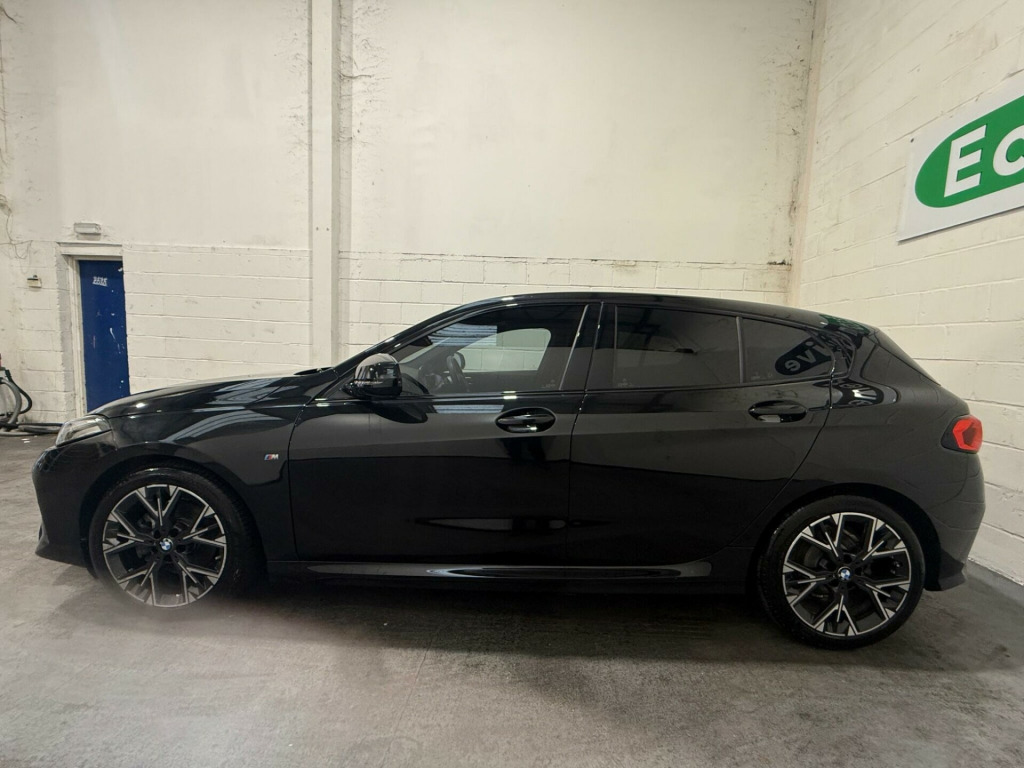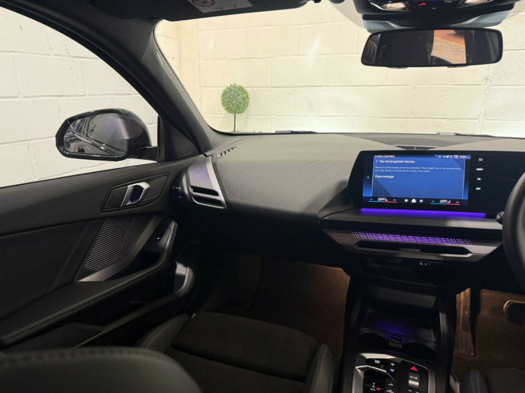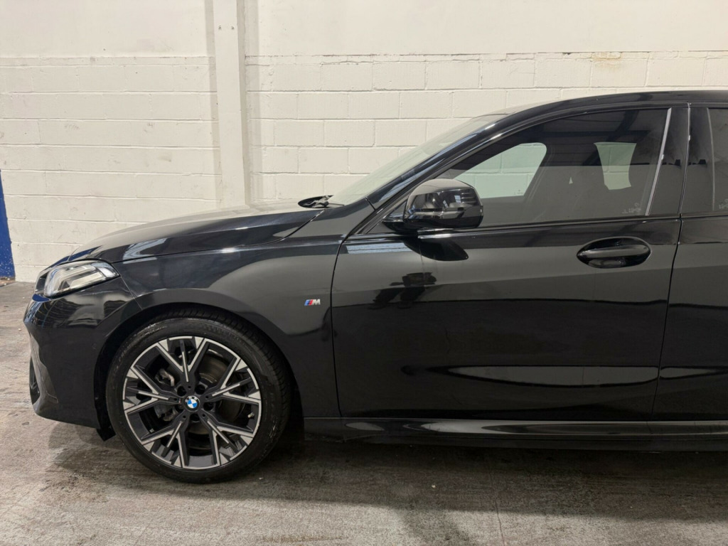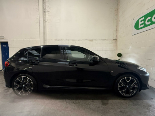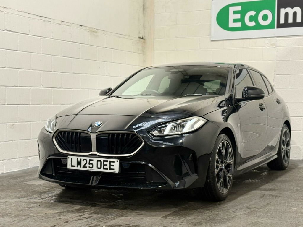 This 2025 BMW 1 Series 120i M Sport is a superb example, having had only one owner since new. This Euro 6 compliant model boasts a 1.5L Petrol Hybrid engine, offering an efficient and responsive driving experience. Inside, you'll find the M Sport trim providing a premium feel, enhanced by features such as seat heating for both the driver and front passenger, and climate control for consistent comfort. Connectivity is seamless with Smartphone Integration, including Apple CarPlay and Android Auto, and the BMW Live Cockpit Plus with Bluetooth. For ease of parking, the Parking Assistant system incorporates front and rear sensors, along with a rear camera.The performance of this 120i M Sport is a key highlight, achieving 0-62mph in just 7.8 seconds. This brisk acceleration demonstrates its capability and agility, setting it apart from many other vehicles in its class. The combination of its advanced hybrid technology, comprehensive M Sport specification, and excellent provenance makes this BMW 1 Series a compelling choice for those seeking a refined and dynamic driving experience. cantara-veganza - black with blue stitching, 18in alloy wheels - m light y-spoke m bicolour - 975, active guard, adaptive m suspension, air conditioning - climate control, airbags - driver and front passenger, airbags - side - driver and passenger, alarm system - thatcham 1 with remote control and engine immobiliser, anti-lock braking system and cornering brake control, bmw emergency call, bmw live cockpit plus, bmw teleservices, central locking - remote, child seat i-size attachment for front passenger, crash sensor, cruise control, dab digital radio, dsc - dynamic stability control, door mirrors - electric folding, driving assistant, eps - electric power steering, electric windows - front and rear with open-close fingertip control - trap release and child lock function, exterior trim - high gloss shadowline, first aid kit and warning triangle, head airbags in roof frame and a-pillar for all 4 outer seats, headlining - m anthracite, isofix child seat mounting x3, led headlights, locking wheel bolts, m illuminated aluminium hexacube interior decor - matt, m leather steering wheel, m sport extended interior lighting, m sport package, multifunction controls for steering wheel, my modes, pc ibrake, parking assistant, performance control, personal esim, real time traffic information, seat heating for driver and front passenger, smartphone integration - apple carplay and android auto, sport seats for driver and front passenger, steering wheel - gearshift paddles, tpms - tyre pressure monitoring system, three-point seat belts - all seats, trailer stabilisation logic, tyre repair kit