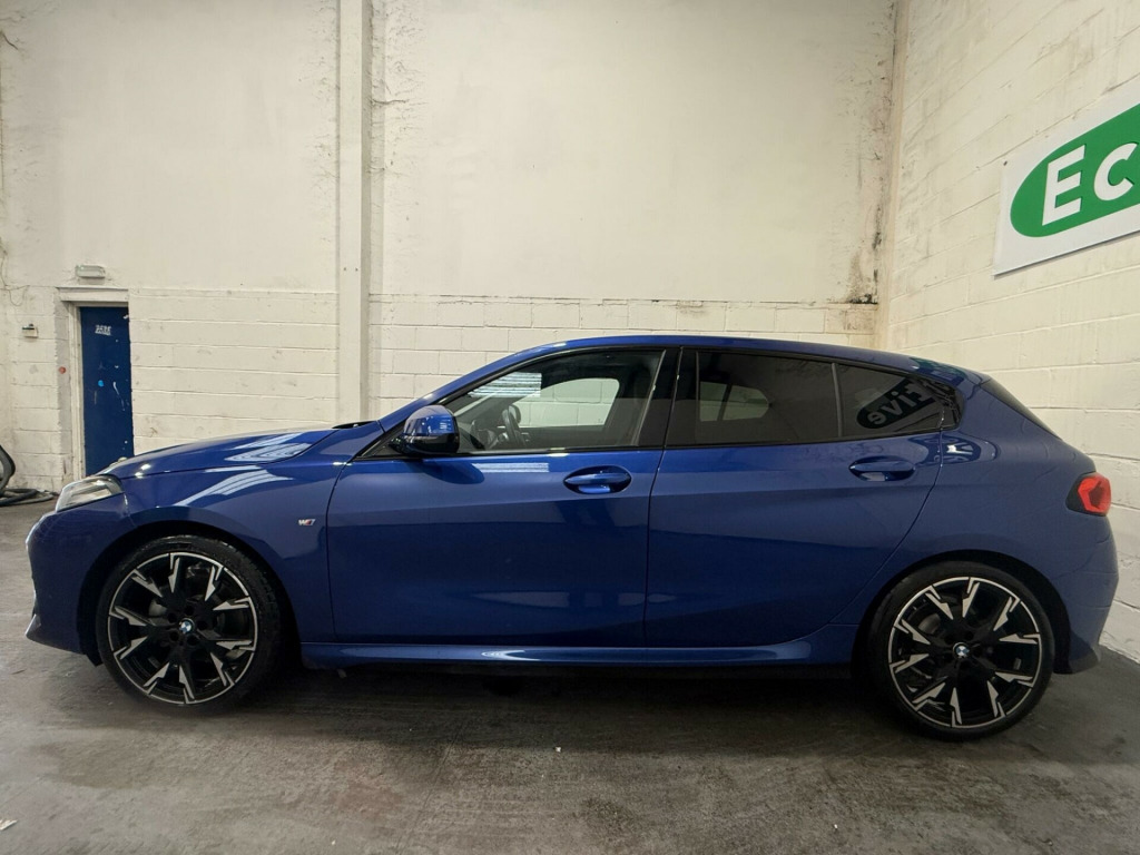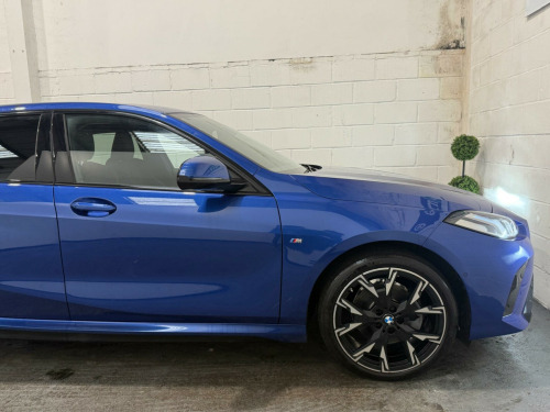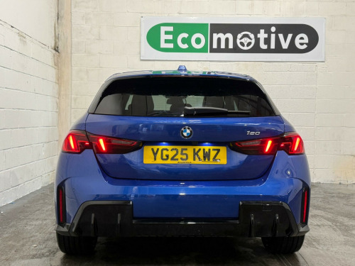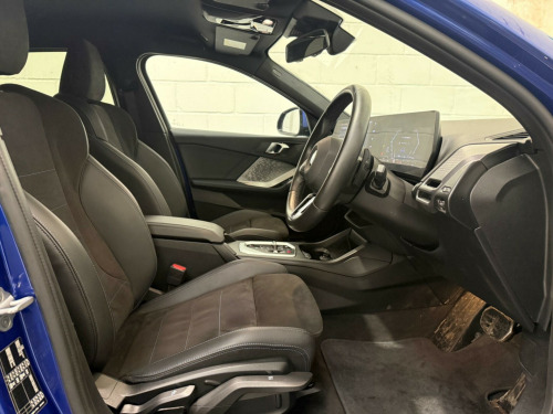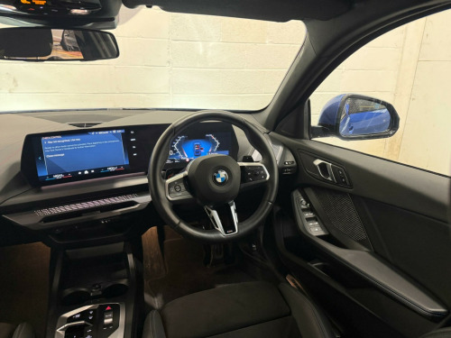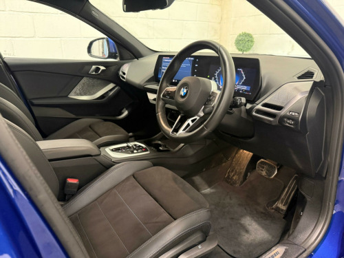 This 2025 BMW 1 Series 120i M Sport is a superb example, having had only one owner since new. This Euro 6 compliant model boasts a 1.5 litre petrol hybrid engine, offering an efficient and responsive driving experience. The M Sport trim enhances its sporty appeal, complemented by striking 19 inch M Light Y spoke M Bicolour 976 alloy wheels and crisp LED headlights. Inside, you'll find comfortable seat heating for the driver and front passenger, while the advanced BMW Live Cockpit Plus with Bluetooth connectivity keeps you informed and entertained.The 120i M Sport demonstrates its performance credentials with an impressive 0 to 62mph acceleration time of just 7.8 seconds, setting it apart from many other vehicles in its class. Furthermore, navigating tight spaces is made effortless thanks to the comprehensive Parking Assistant, which includes front and rear sensors along with a rear camera. These features combine to make this BMW 1 Series a well equipped and desirable choice. in alloy wheels - m light y-spoke m bicolour - 975, active guard, adaptive m suspension, air conditioning - climate control, airbags - driver and front passenger, airbags - side - driver and passenger, alarm system - thatcham 1 with remote control and engine immobiliser, anti-lock braking system and cornering brake control, bmw emergency call, bmw live cockpit plus, bmw teleservices, central locking - remote, child seat i-size attachment for front passenger, crash sensor, cruise control, dab digital radio, dsc - dynamic stability control, door mirrors - electric folding, driving assistant, eps - electric power steering, electric windows - front and rear with open-close fingertip control - trap release and child lock function, exterior trim - high gloss shadowline, first aid kit and warning triangle, head airbags in roof frame and a-pillar for all 4 outer seats, headlining - m anthracite, isofix child seat mounting x3, led headlights, locking wheel bolts, m illuminated aluminium hexacube interior decor - matt, m leather steering wheel, m sport extended interior lighting, m sport package, multifunction controls for steering wheel, my modes, pc ibrake, parking assistant, performance control, personal esim, real time traffic information, seat heating for driver and front passenger, smartphone integration - apple carplay and android auto, sport seats for driver and front passenger, steering wheel - gearshift paddles, tpms - tyre pressure monitoring system, three-point seat belts - all seats, trailer stabilisation logic, tyre repair kit, 19in alloy wheels - m light y-spoke m bicolour - 976, sun protection glass, alcantara-veganza - black with blue stitching