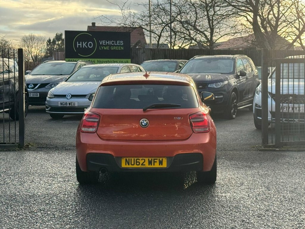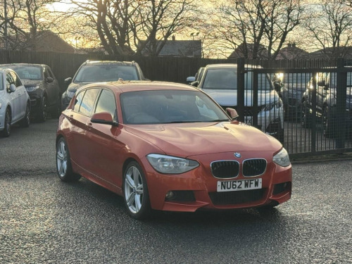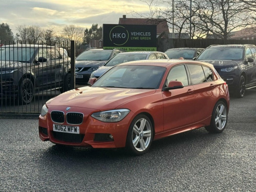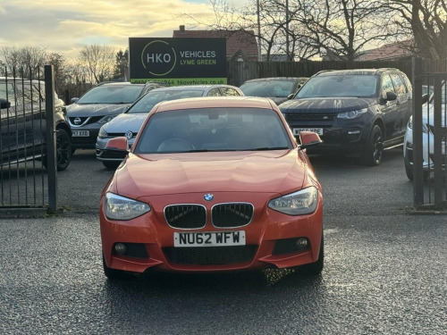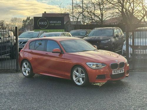 Welcome to HKO Vehicles Lyme Green! We?re pleased to offer this sporty and stylish BMW 1 Series 1.6 116i M Sport Manual, a dynamic hatchback known for its premium build quality, sharp handling, and sporty appearance. As an AA Approved Dealer, this vehicle includes 12 months free AA Breakdown Cover, full service history, a long MOT, 3 months warranty, and finance options available, giving you full confidence and peace of mind. Finished in a standout Orange, this 2012 (62 plate) BMW has covered 88,000 miles and delivers excellent performance with the desirable M Sport styling and trim package. Manufacturer Specification Highlights Engine: 1.6 Petrol (136ps) Transmission: Manual Emissions Standard: Euro 5 (s/s) Body Style: 5-Door Hatchback Colour: Orange Registration: NU62 WFW Mileage: 88,000 miles Key Features M Sport Styling Package ? enhanced sporty exterior & interior Sport Seats ? added support and comfort Full M Sport Body Kit Alloy Wheels Premium Interior Trim Air Conditioning / Climate Control BMW iDrive Infotainment System Bluetooth Connectivity (spec dependent) DAB Digital Radio Start/Stop Technology ? improved fuel economy Multifunction Steering Wheel Cruise Control (spec dependent) Electric Windows & Mirrors Traction & Stability Control Systems ISOFIX Child Seat Mounts This BMW 1 Series 116i M Sport combines sporty driving dynamics with everyday practicality. With its eye-catching Orange finish, M Sport styling, and great service history, it is an excellent choi 12V Power Socket - Centre Console, 12V Power Socket - Front, 12V Power Socket - Passenger Footwell, 18in Alloy Wheels - Light M Star Spoke -, ABS - Anti Lock Braking System, ASC - Automatic Stability Control, Active Differential Brake, Air Conditioning - Automatic with Two-Zo, Airbags - Curtain, Airbags - Driver, Airbags - Knee Driver, Airbags - Passenger, Airbags - Passenger Deactivation, Alarm System Thatcham 1 with Remote Cont, Ambient Interior Lighting, Armrest - Front and Rear Integrated into, Armrest - Front with Sliding Adjustment, Auxiliary Input, BMW Mobility System, BMW Online services, BMW Professional Radio - Single CD and M, BMW TeleServices, Bluetooth Hands Free with USB Audio