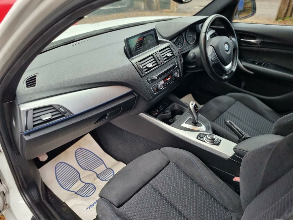 IF YOU ARE LOOKING FOR A BMW 1 SERIES M.SPORTS MODEL WITH LOW MILES, MINT CONDITION, WITH SERVICE HISTORY AND WITH LONG CLEAN MOT WITHOUT A ADVISORIES AND VALID TILL DECEMBER 2026THEN THIS BEAUTIFUL BMW 116i M.SPORTS IN PEARL WHITE COLOUR, COULD BE A GREAT OPTION FOR YOU. ON SALE THIS BEAUTIFUL BMW 1 SERIES 1.6 LTR AUTOMATIC AND 5 DOOR CAR.ULEZ FREE, NO CATEGORY, FRESH ENGINE AND TRANSMISSION SERVICED AND FULLY MECHANICALY INSPECTED CAR.THIS BMW IS MECHANICALY ABSOLUTELY IN EXCELLENT CONDITION, DRIVE VERY SMOOTH WITHOUT ANY FAULTS OR ANY ISSUES, ENGINE AND GEARBOX BOTH ARE INSPECTED AND EVERYTHING WORKS GREAT AS IT SHOULD. ALSO ITS A VERY CLEAN CAR FOR ITS AGE AND VERY DECENT MILES. CLEAN INTERIOR AND EXTERIOR..DEFINITELY WORTH COMING FOR THIS BEAUTIFUL BMW 116i M.SPORTS AUTOMATIC.FOR A PEACE OF MIND OUR VEHICLES COME WITH 6 MONTHS GOLD COVER WARRANTY, FREE 12 MONTHS BREAKDOWN COVER FROM AA AND WE CAN DELIVER FOR FREE IN LOCAL.ALSO WE HAVE EXTENDED WARRANTY OPTION AVAILABLE AND YES WE DO NATIONWIDE DELIVERY WITH A BIT OF EXTRA COST, DEPENDS ON MILES, BUT GURRANTED CHEAPEST DELIVERY CHARGES IN MARKET. FOR MORE INFORMATION PLEASE CONTACT US WE ARE OPEN 7 DAYS A WEEK SO ANY INSPECTION, TEST DRIVE AND VIEWING MOST WELCOME. FOR MORE CARS PLEASE VISIT OUR WEBSITE WWW.KHANROVERS.CO.UK KIND REGARDS ALI v power socket - centre console, 12v power socket - passenger footwell, 18in alloy wheels - light m star spoke - 386m, 6.5in colour display screen, abs - anti lock braking system, asc - automatic stability control, active differential brake, air conditioning - automatic - dual zone control, airbags - curtain, airbags - driver, airbags - front side, airbags - passenger, airbags - passenger deactivation, alarm system thatcham 1 with remote control, ambiance lighting - switchable, armrest - front and rear integrated into door trim, armrest - front with sliding adjustment, auxiliary input, bmw professional radio - single cd and mp3, belt force limiters - front, bluetooth hands free with usb audio interface, brake assist, brake drying, brake pad wear indicator - front and rear, bumpers - body colour, cbc - cornering brake control, central locking - remote, child proof locking system - rear doors, child seat isofix attachment - rear x2, comfort go keyless engine start, crash sensor - activating central locking-hazard warning lights-fuel cut off, cup holders, dab digital radio, dbc - dynamic brake control, dsc - dynamic stability control plus, dtc - dynamic traction control, daytime running lights, door handles - body colour, door mirrors - body coloured housing, door mirrors - electric and heated, door sill finishers - m designation, drive performance control - eco pro - comfort - sport - sport plus, dynamic brake lights, electric windows - front and rear with open-close fingertip control, exterior trim - high-gloss shadowline, first aid kit, floor mats - velour, follow me home headlight function, front fog lights, gearshift lever with m designation, grab handles - in roof lining x4, halogen headlights, handbrake lever - gear lever knob and gaiters in leather, head restraints - rear and folding, headlights - automatic activation, headlining - anthracite, heat protection glazing with green tint, heated windscreen washer jets, high level third brake light, hill start assist, interior lighting, interior trim - aluminium hexagon, kidney grille - chrome extra-wide high-gloss black vertical slats, lights-on warning, locking wheel bolts, luggage compartment - lashing eyes x2, m aerodynamic bodystyling, m sport package, m sport suspension, mobility tyre sealing system, multifunction controls for steering wheel, non smokers package, obc - on-board computer, power steering - electric, pyrotechnic belt tensioners - front, rain sensor, rear window wiper, run flat tyres, seats - 60-40 split folding rear, seats - third rear, side impact protection, sport seats - front, steering column with manual reach and rake adjustment, steering wheel - m sport leather multifunction, storage compartment - rear centre console, sun visors with vanity mirrors and ticket holder, tpws - tyre pressure warning system, trim finisher - estoril blue - matt, tyres - reduced rolling resistance