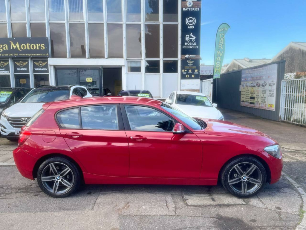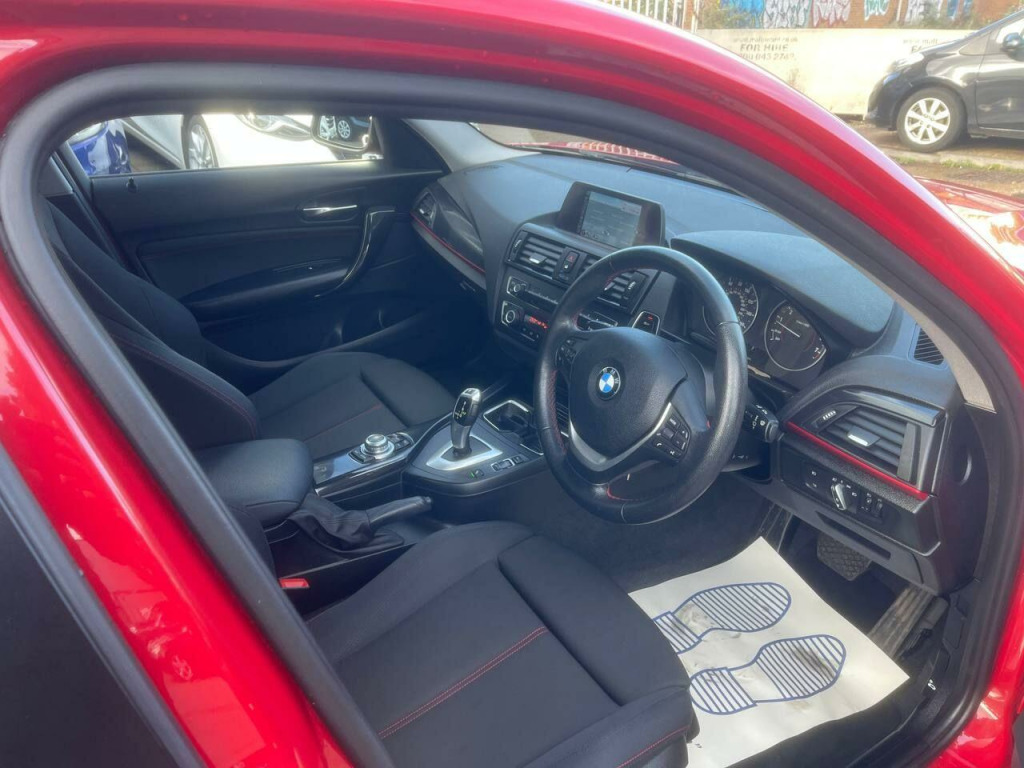 Beautiful BMW 1 Series 1.6 116i Sport Auto in excellent condition. Top Specs , Navigation ,Parking Sensors, Electric Windows, Electric Side Mirrors, Climate Control, Steering Control, Cruise Control, Bluetooth Connection, Aux Connection, Alloys, Isofix, Arm Rest and many more...., Great Mpg, cheap to Tax and Insure. ULEZ compliant, 2 Previous Owners & 2 Keys. The car has been very well looked after and comes with FULL-Service history. We had it serviced recently at 52000 miles on10/10/2025. It has also been MOTed till 12/10/2026 with no advisory. 3 Months essential warranty with Customer Protect is also included for your peace of mind. It is in very good condition and drives very smoothly with no fault whatsoever. ALL OUR CARS ARE FULLY INSPECTED BY PROFESSIONALS PRIOR TO ADVERTISEMENT & COME WITH 12 MONTHS FREE BASIC AA BREAKDOWN COVER. Finance is also available on request. DRIVE-AWAY INSURANCE IS ALSO AVAILABLE AT A COST. TO VIEW MORE STOCK PLEASE VISIT OUR WEBSITE AT: WWW.MEGAMOTORSUK.CO.UK , v power socket - centre console, 12v power socket - passenger footwell, 17in alloy wheels - light star spoke - 379, 6.5in colour display screen, abs - anti lock braking system, asc - automatic stability control, active differential brake, air conditioning - manual, air microfilter, airbags - curtain, airbags - driver, airbags - front side, airbags - passenger, airbags - passenger deactivation, alarm system thatcham 1 with remote control, ambiance lighting - switchable, ambient interior lighting, armrest - front and rear integrated into door trim, armrest - front with sliding adjustment, auxiliary input, bmw professional radio - single cd and mp3, belt force limiters - front, bluetooth hands free with usb audio interface, brake assist, brake drying, brake pad wear indicator - front and rear, bumpers - body colour, cbc - cornering brake control, central locking - remote, child proof locking system - rear doors, child seat isofix attachment - rear x2, comfort go keyless engine start, crash sensor - activating central locking-hazard warning lights-fuel cut off, cup holders, dab digital radio, dbc - dynamic brake control, dsc - dynamic stability control plus, dtc - dynamic traction control, daytime running lights, door handles - body colour, door mirrors - body coloured housing, door mirrors - electric and heated, door sill finishers - sport designation, drive performance control - eco pro - comfort - sport - sport plus, dynamic brake lights, electric windows - front and rear with open-close fingertip control, first aid kit, floor mats - velour, follow me home headlight function, front air inlet with high-gloss black finisher, front fog lights, grab handles - in roof lining x4, halogen headlights, handbrake lever - gear lever knob and gaiters in leather, head restraints - rear and folding, headlights - automatic activation, heat protection glazing with green tint, heated windscreen washer jets, high level third brake light, hill start assist, interior lighting, interior trim - black high gloss, interior trim - black high gloss with coral red finisher, interior trim finisher - coral red, kidney grille - chrome extra-wide high-gloss black vertical slats, lights-on warning, locking wheel bolts, luggage compartment - lashing eyes x2, mobility tyre sealing system, multifunction controls for steering wheel, non smokers package, obc - on-board computer, power steering - electric, pyrotechnic belt tensioners - front, rain sensor, rear window wiper, run flat tyres, seats - 60-40 split folding rear, seats - third rear, side impact protection, sport multi-function leather steering wheel - three spoke, sport seats - front, steering column with manual reach and rake adjustment, storage compartment - rear centre console, sun visors with vanity mirrors and ticket holder, tpws - tyre pressure warning system, trim designation deletion, tyres - reduced rolling resistance, interior comfort package, bmw navigation package, pdc - park distance control - front and rear, driver comfort package, enhanced bluetooth telephone preparation with usb audio interface, air conditioning - automatic with two-zone control, cruise control with brake function, door mirrors - folding - automatically dimming, servotronic steering, automatically dimming rear view mirror, extended storage, bmw emergency call, bmw teleservices, track cloth - anthracite - red highlight with black interior, pdc - park distance control - rear, navigation system - bmw professional multimedia
